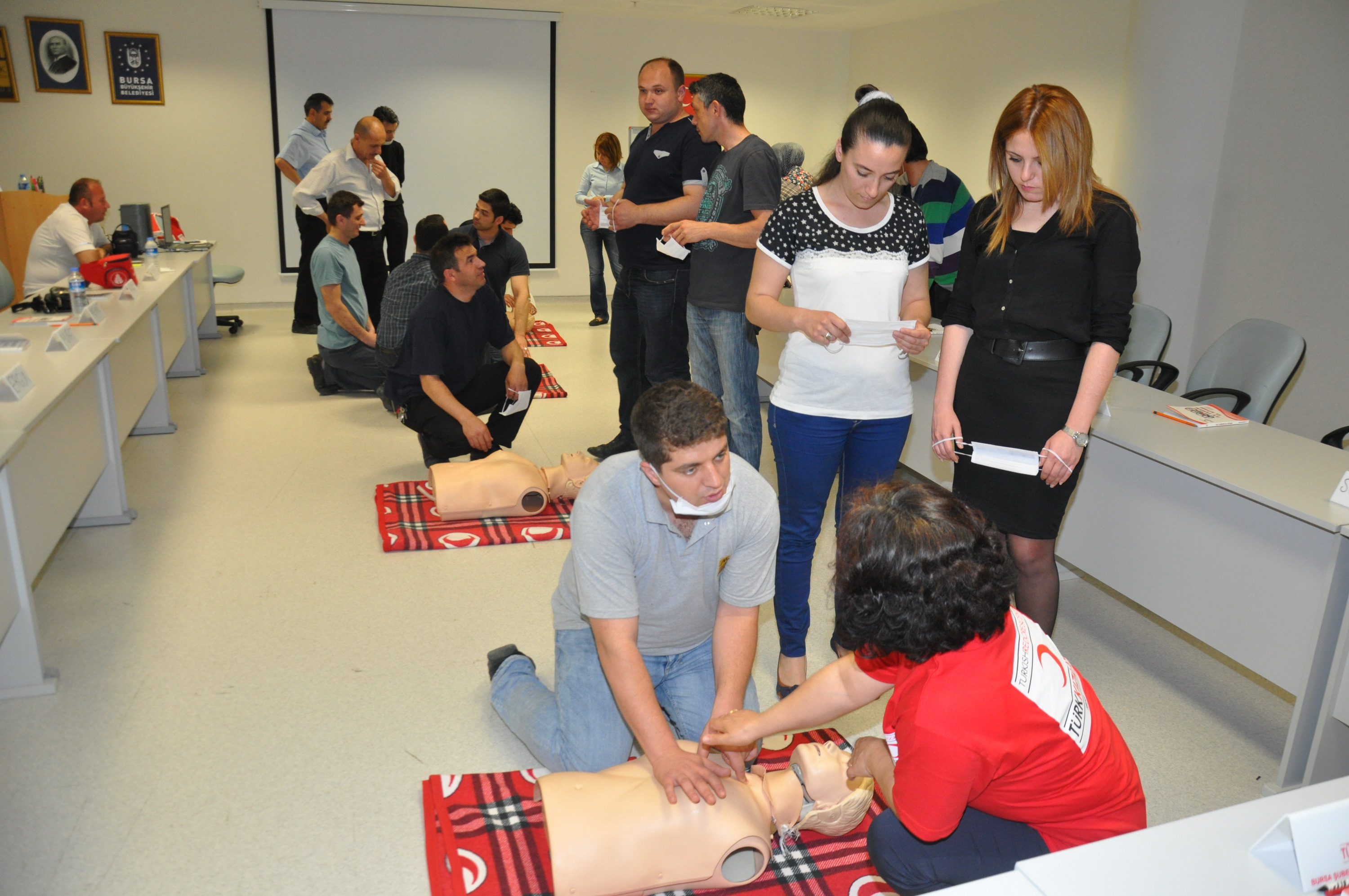 BURSA – Büyükşehir Belediyesi tarafından işletilen ve yönetilen Türkiye’nin en aktif ve yoğun kullanılan Atatürk Kongre Kültür Merkezi’nde (Merinos AKKM) görev alan personele, Kızılay işbirliğiyle ilk yardım eğitim verildi.