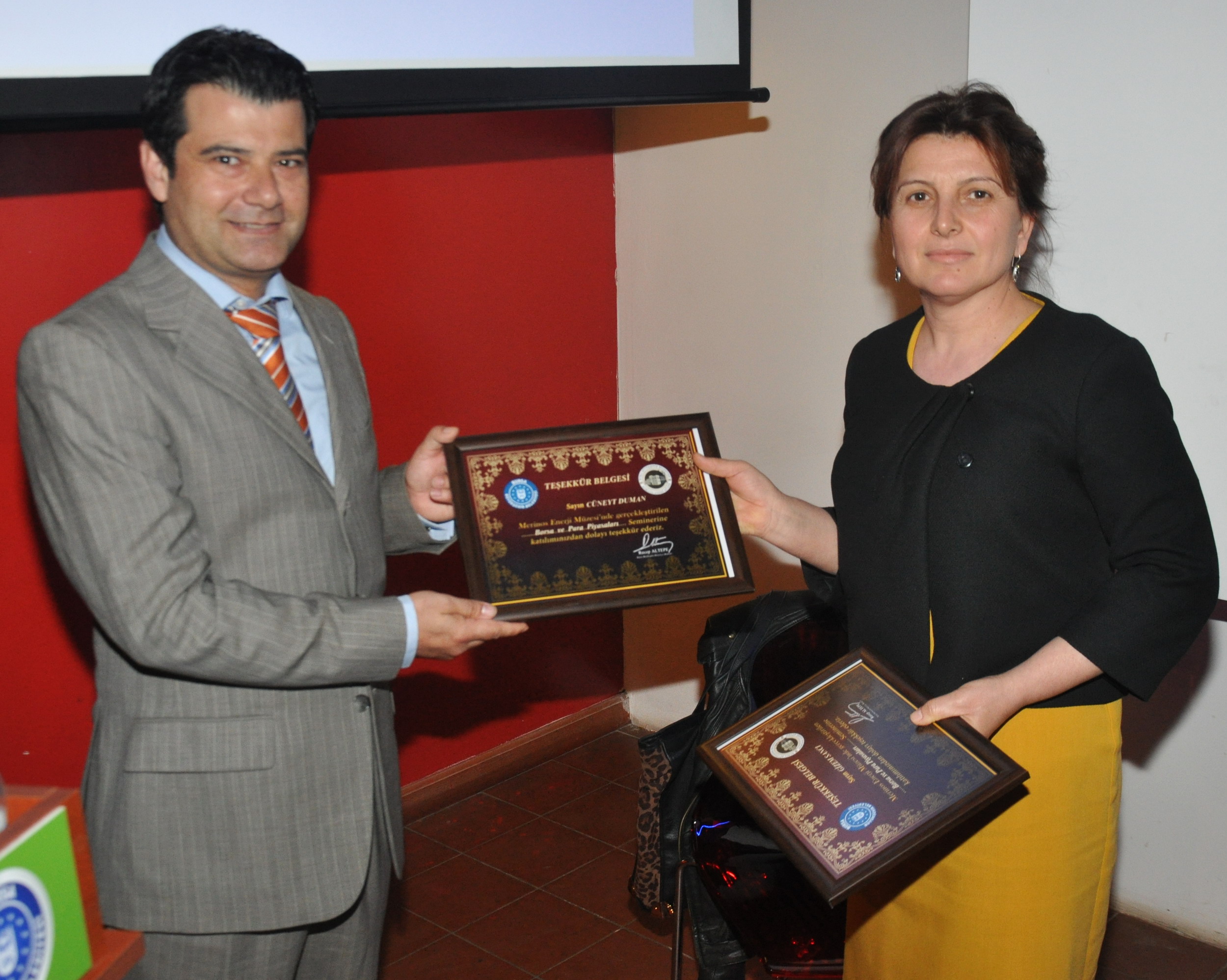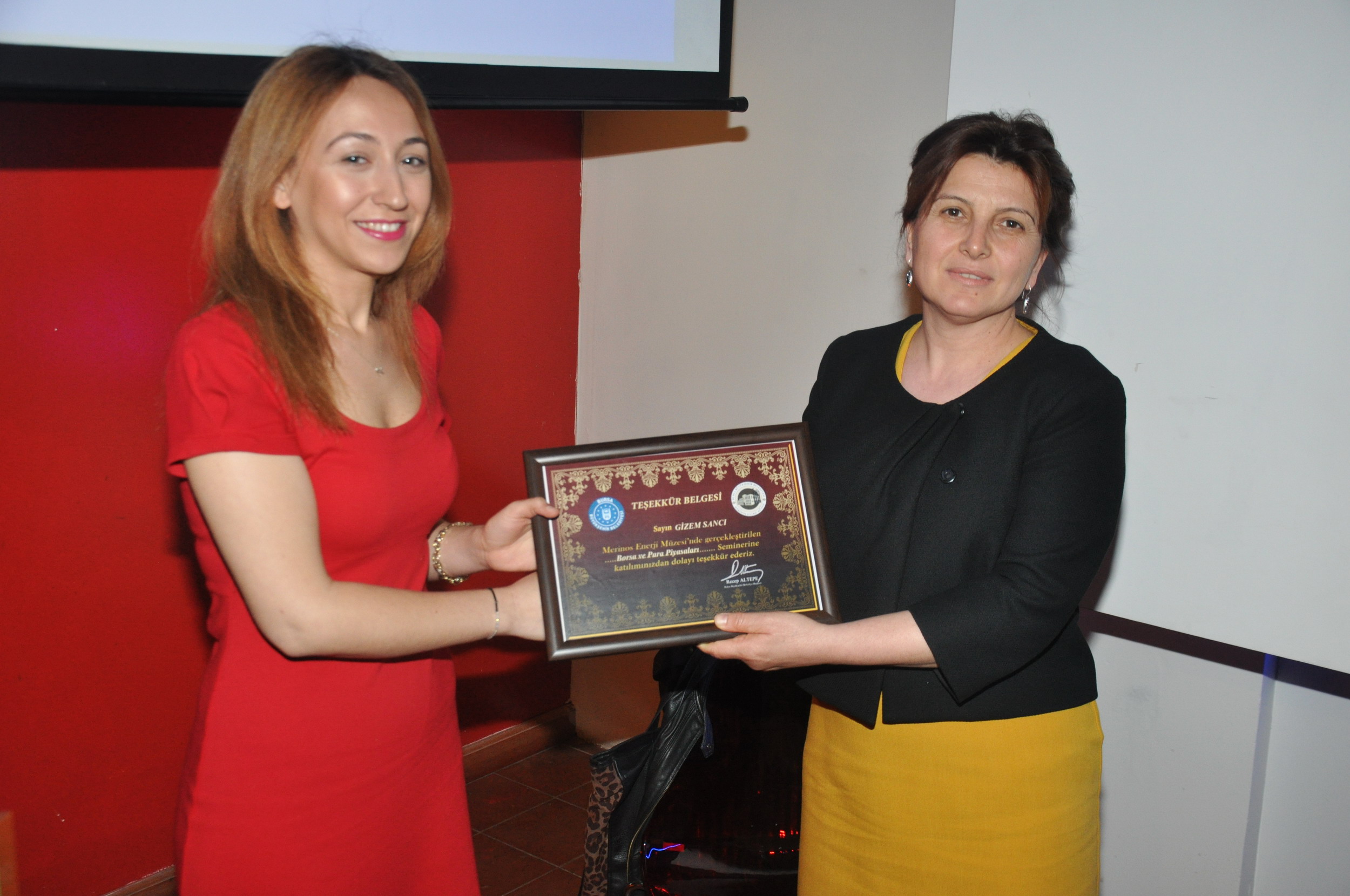 Ardından Muhterem Çevik tarafından konuşmacılar Cüneyt Duman ve Gizem Sancı’ya teşekkür belgesi takdim edildi.