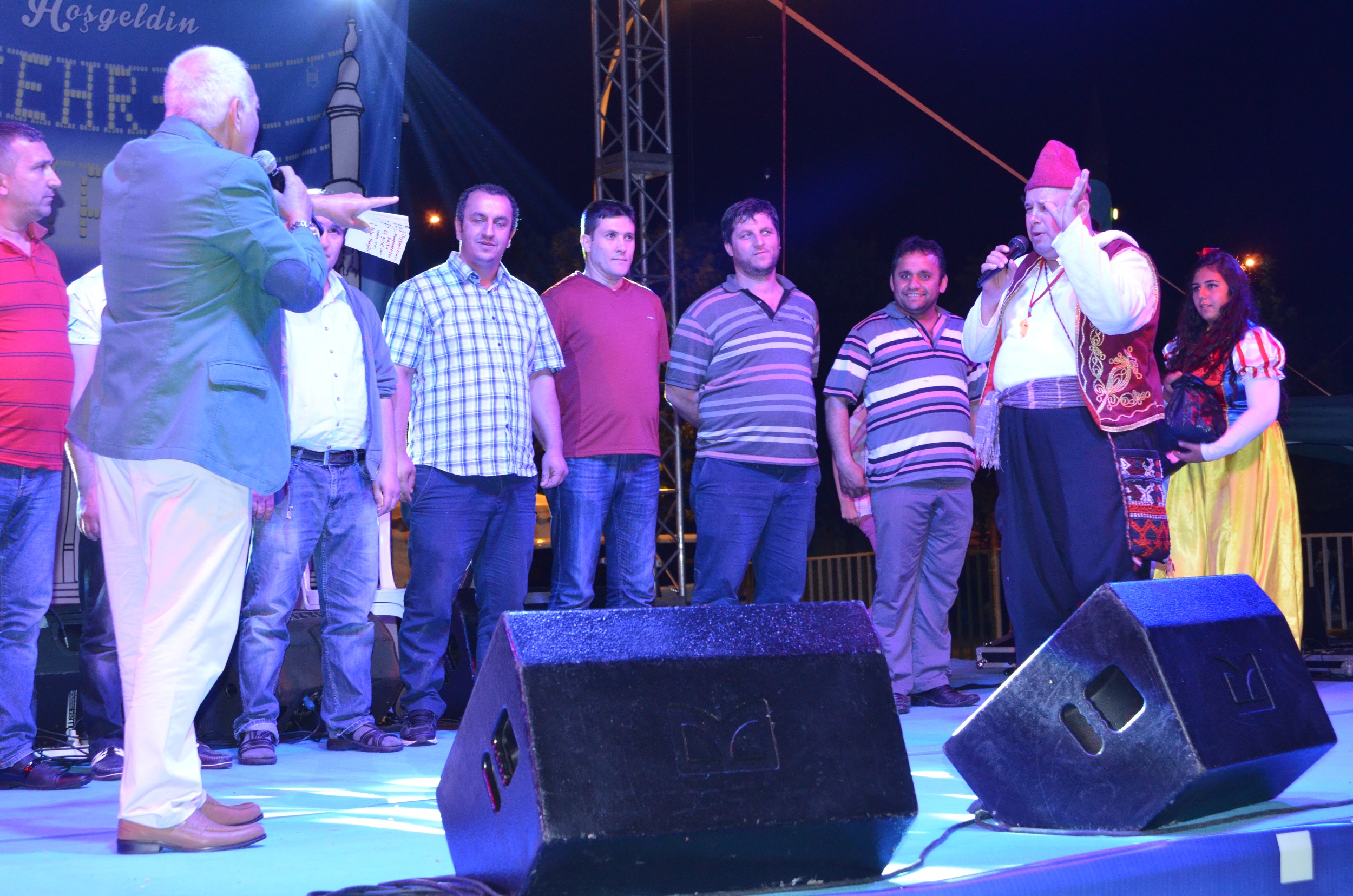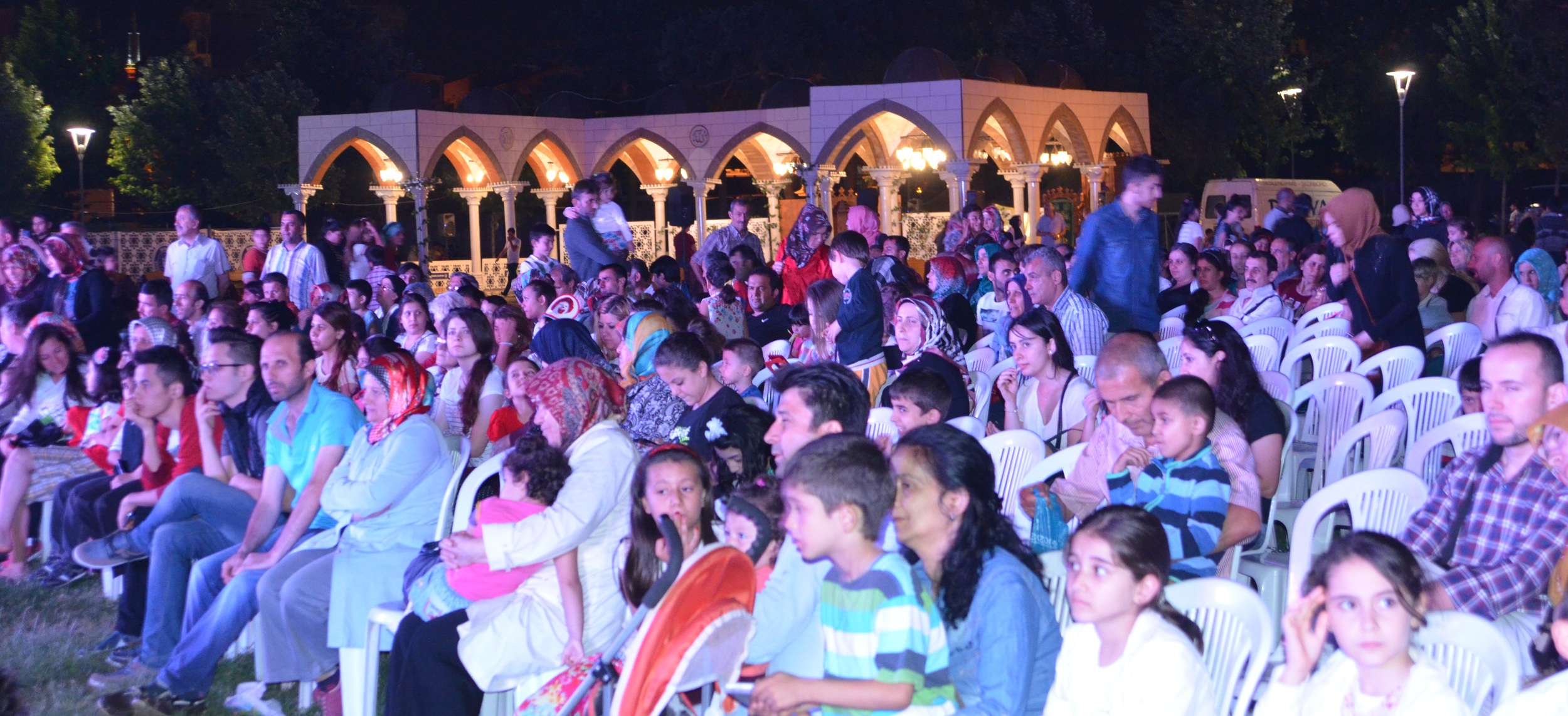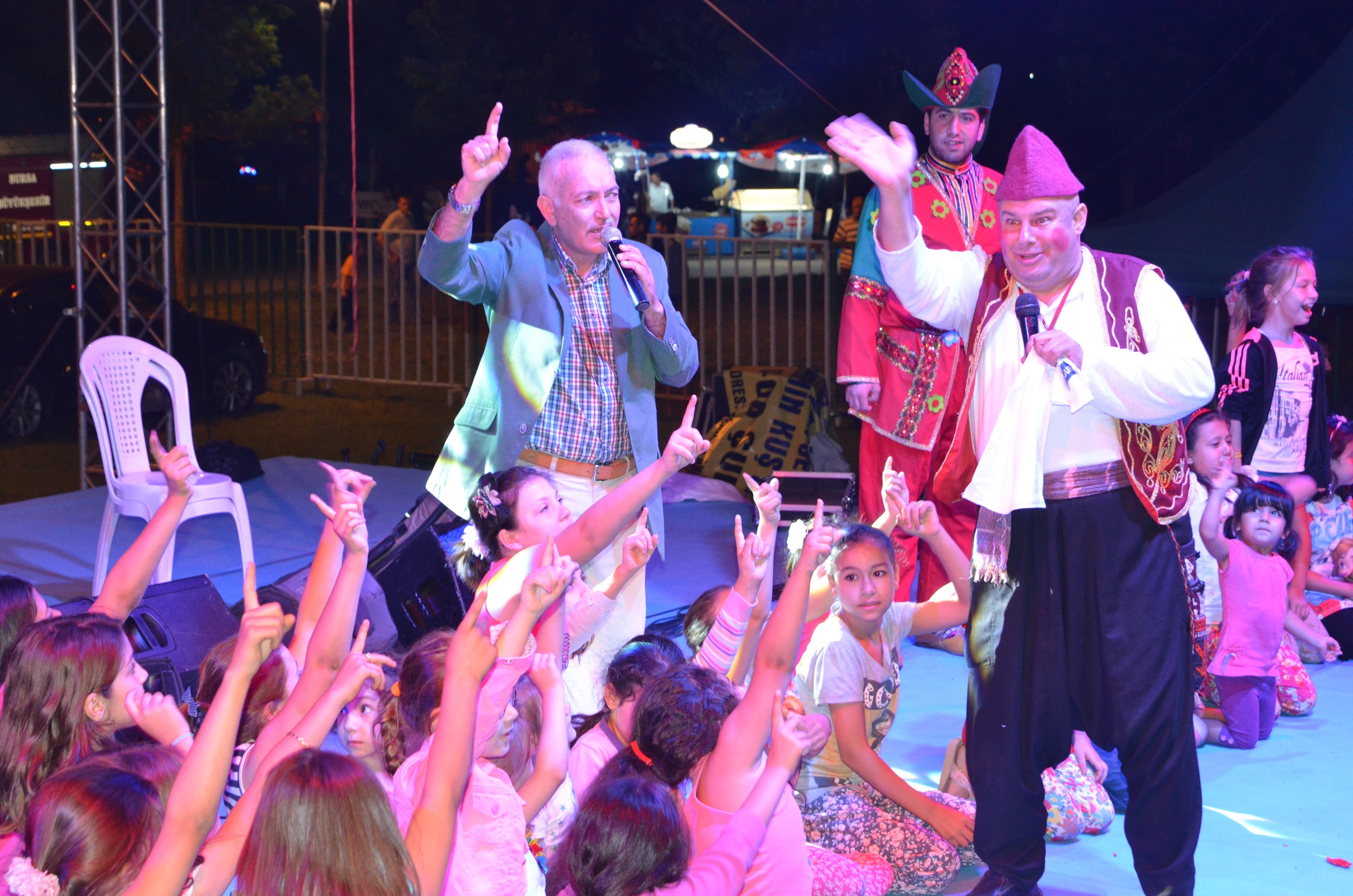 - Açık havada kılınan teravih namazı öncesi vatandaşlar orta oyunu gösterisi ile eğleniyor.