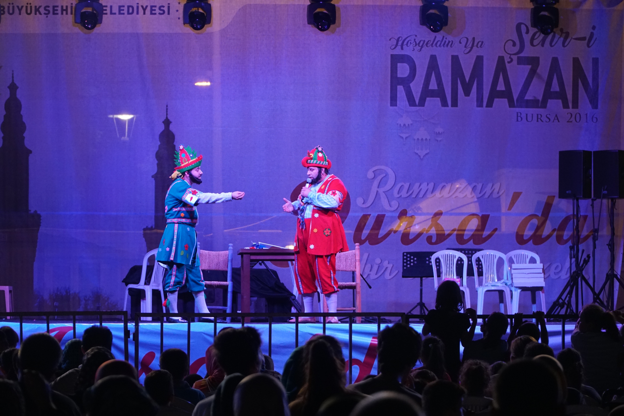 Bursa Büyükşehir Belediyesi iştiraklerinden Kültür A.Ş. tarafından düzenlenen ‘Şehr-i Ramazan’ etkinlikleri tüm hızıyla sürüyor. Vatandaşlar, Merinos Park’ta, Ramazan ayının manevi atmosferini doyasıya yaşıyor. Ramazan etkinliklerinde bu kez ana sahnede, canlı Karagöz ve Hacivat gösterisi ile Hüseyin Goncagül ve ekibi tarafından ortaoyunu ve yarışmalar gerçekleştirildi. Vatandaşlar, programları ilgiyle izlerken, gösterilerin sonunda sanatçıları alkışlarla ödüllendirdi. Çocuk çadırında ise Oyuncu Anne Merve birbirinden güzel hikayeler anlattığı çocukları oyunlarla eğlendirdi.
