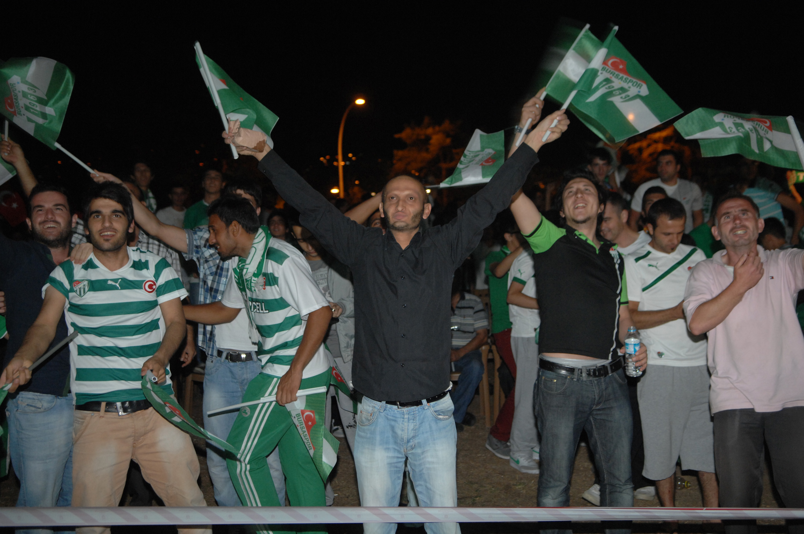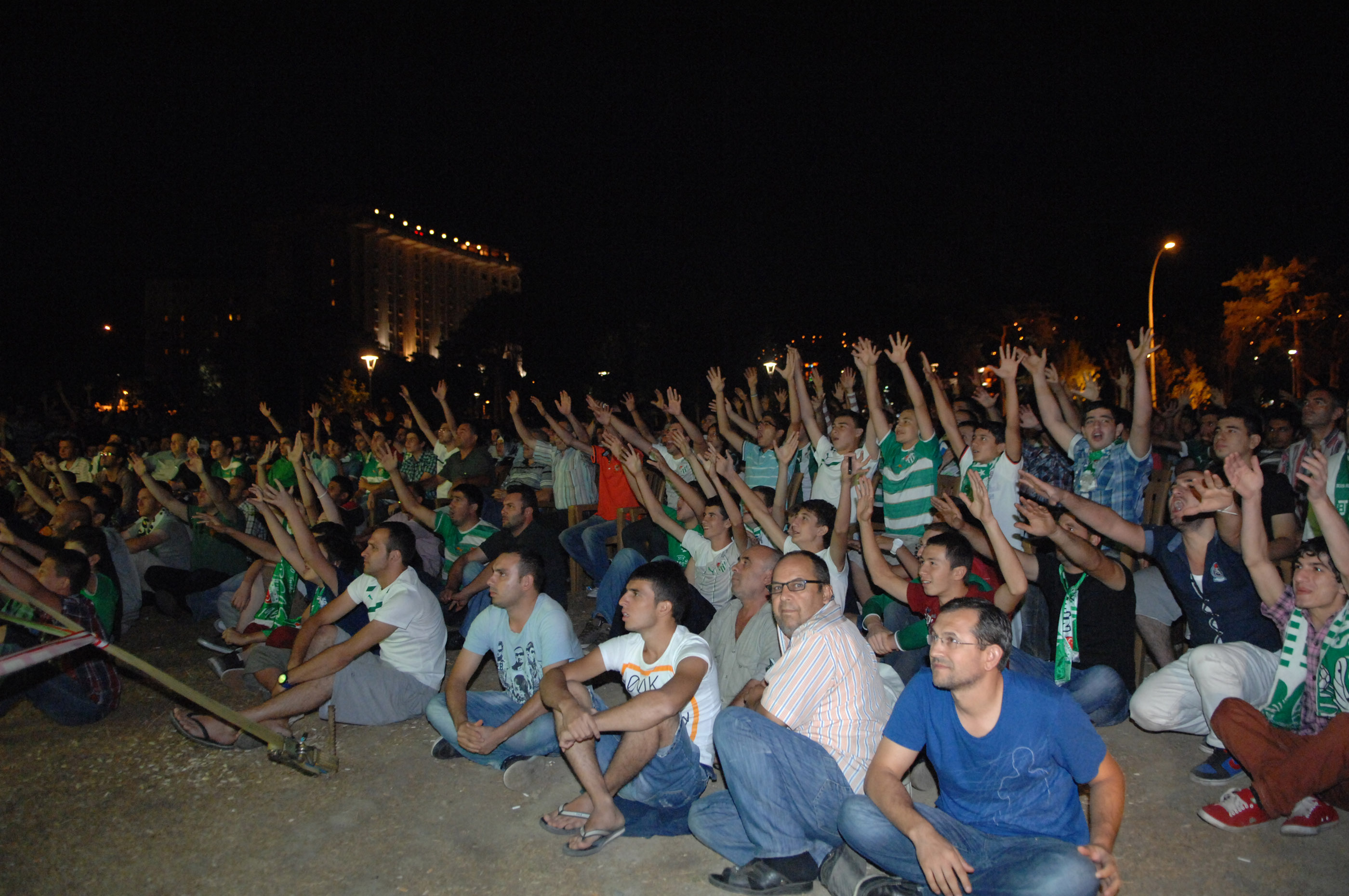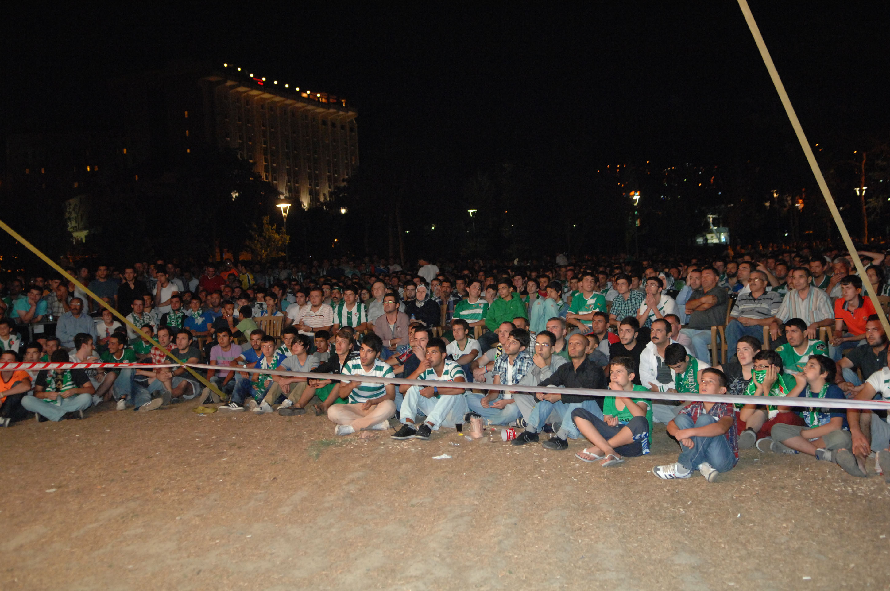 - BÜYÜKŞEHİR BELEDİYESİ´NİN BURSALILAR´A MERİNOS PARKI´NDA DEV EKRAN KURARAK İZLETTİĞİ TWENTE-BURSASPOR MAÇININ COŞKUSU, YEŞİL-BEYAZLILAR´IN ELENMESİYLE YARIM KALDI.