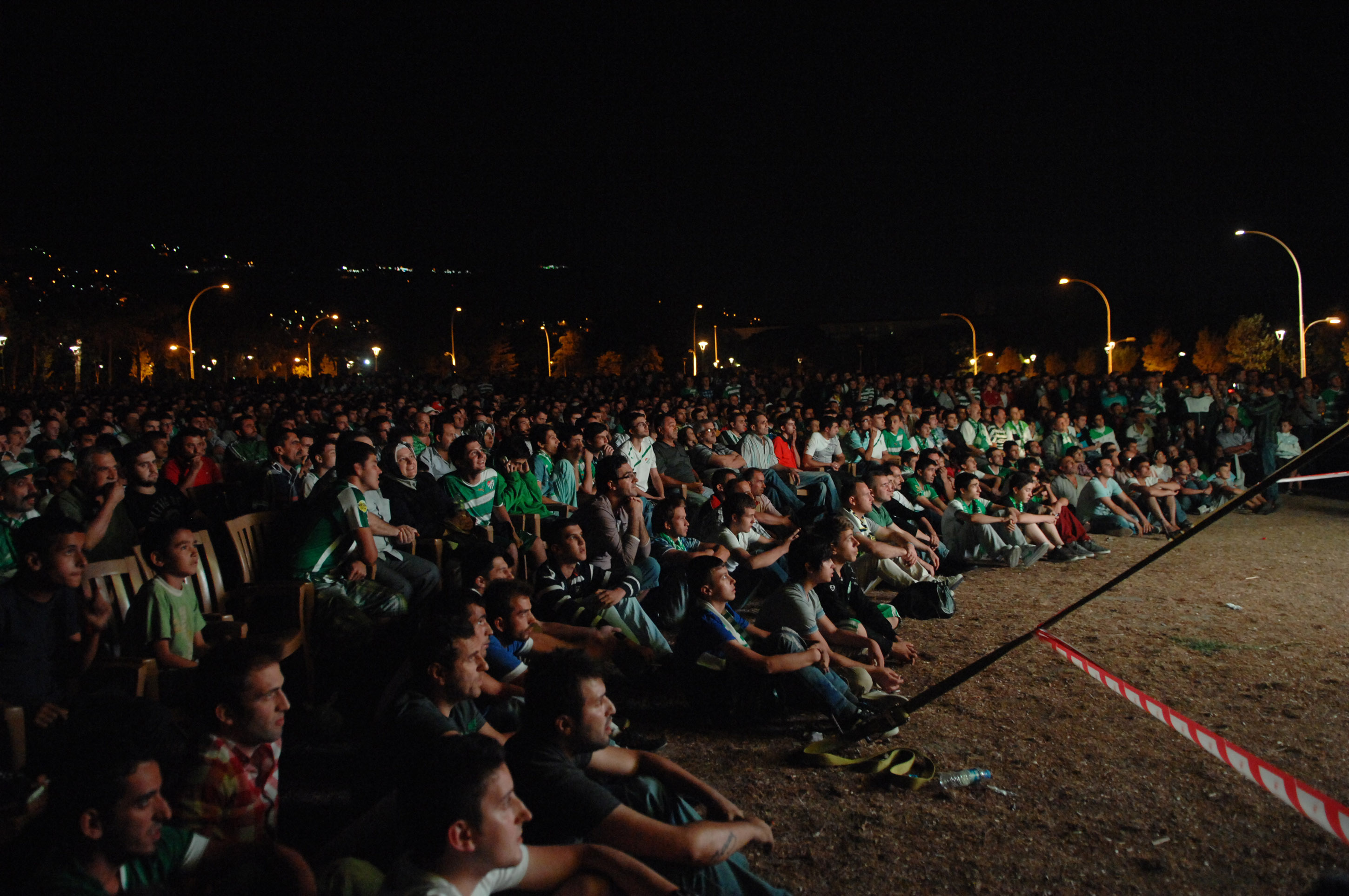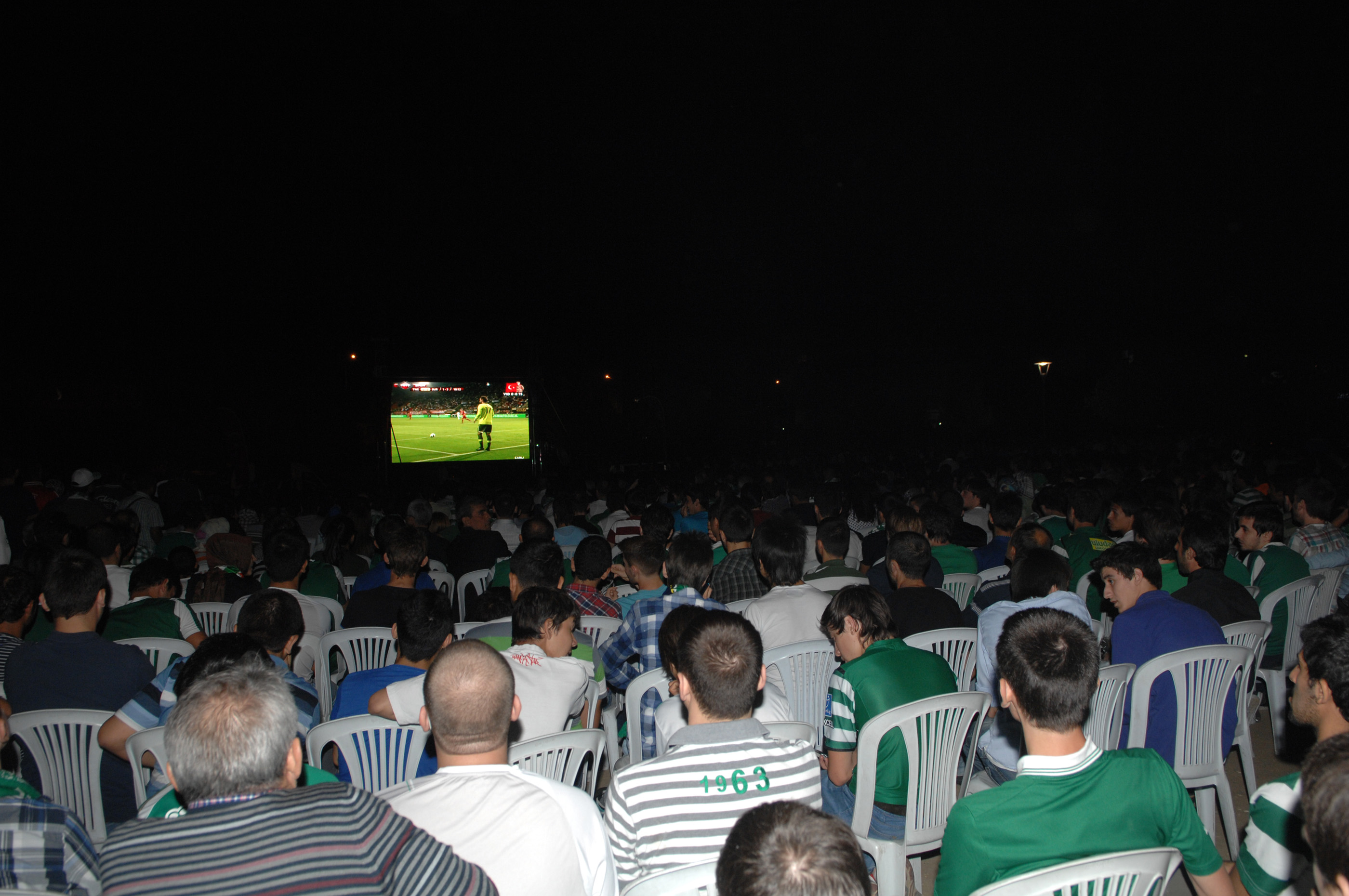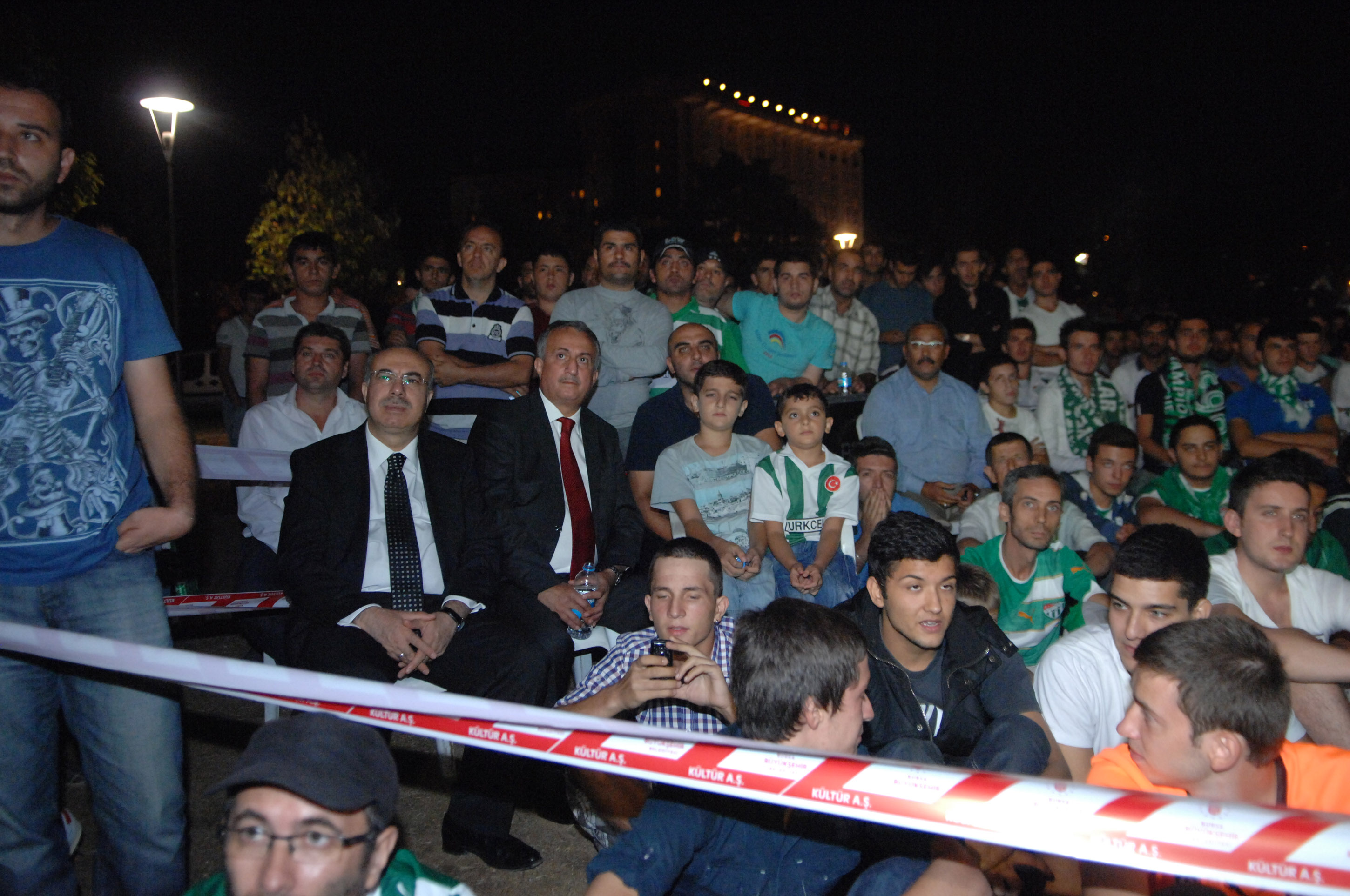 - BÜYÜKŞEHİR BELEDİYESİ´NİN BURSALILAR´A MERİNOS PARKI´NDA DEV EKRAN KURARAK İZLETTİĞİ TWENTE-BURSASPOR MAÇININ COŞKUSU, YEŞİL-BEYAZLILAR´IN ELENMESİYLE YARIM KALDI.