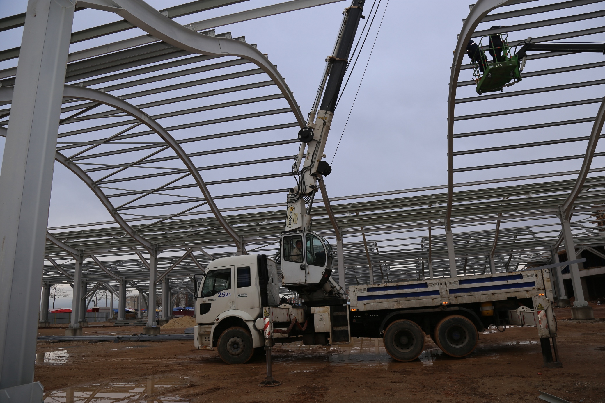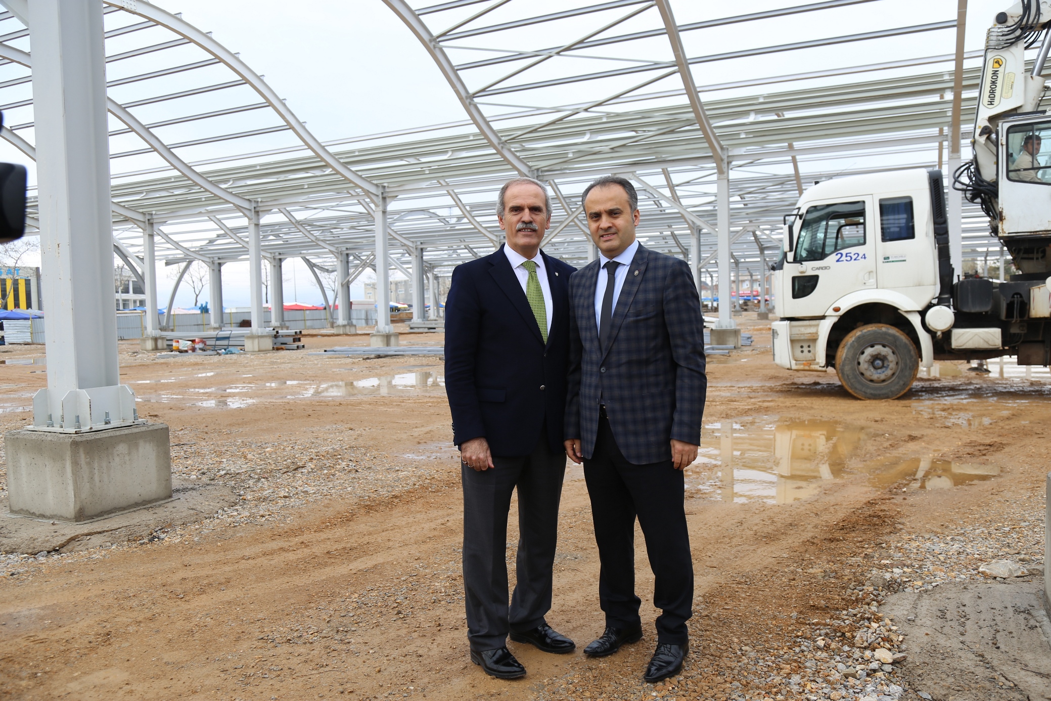 BURSA - Geçen yılın son günlerinde yoğun kar yağışı nedeniyle çatısı çöken İnegöl Kapalı Pazar Alanı’nın (MERPA) yerine Büyükşehir Belediyesi tarafından yapılan, tonoz çatı uygulamaları ve estetik mimarisiyle dikkat çeken projede inşaat hızla ilerliyor. Çalışmaları yerinde inceleyen Büyükşehir Belediye Başkanı Recep Altepe, mart ayında çatısı örtülecek, yaz ayları başında da hizmete açılacak yeni pazar yerinin ilçeye değer katacağını söyledi.