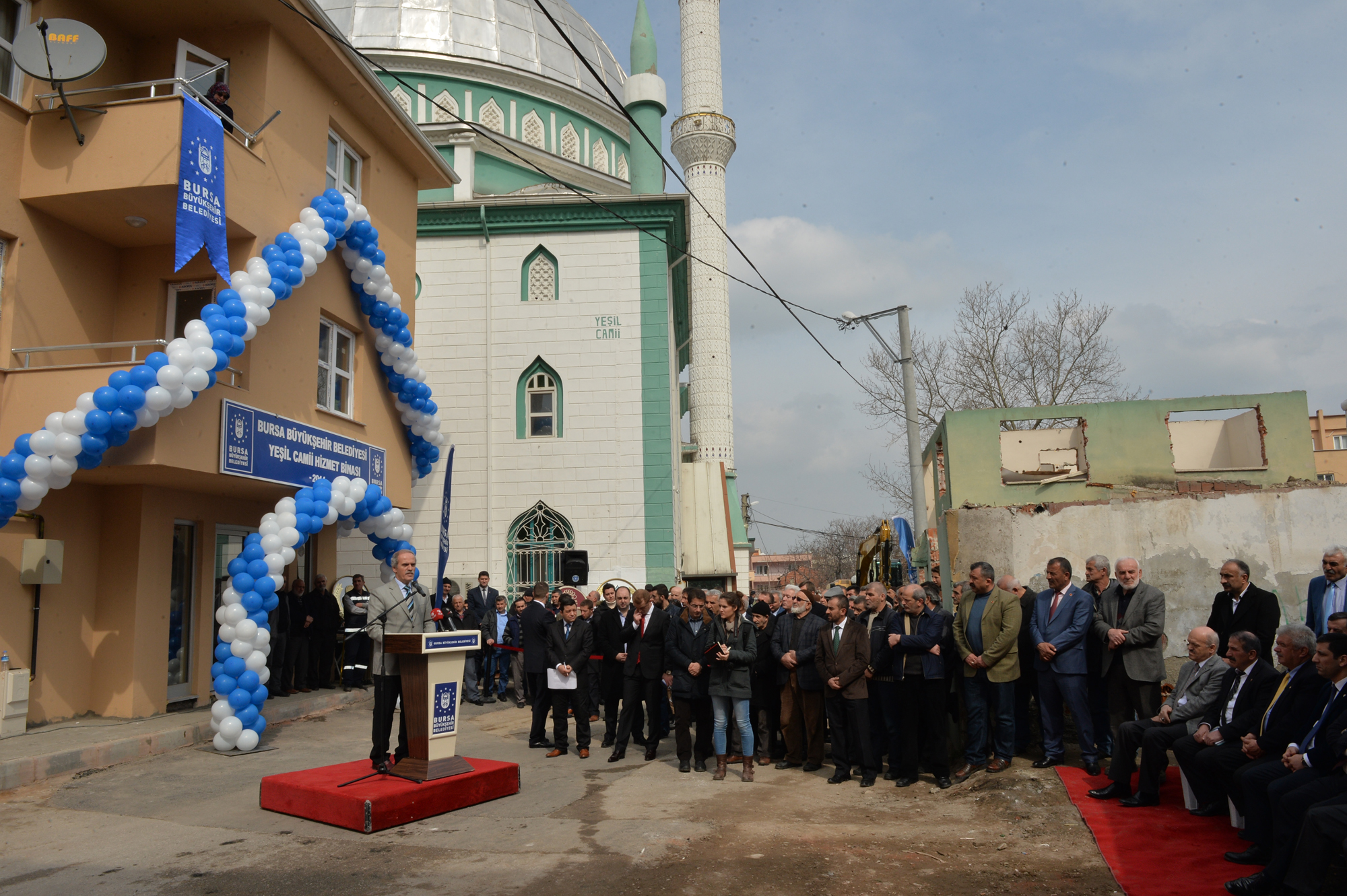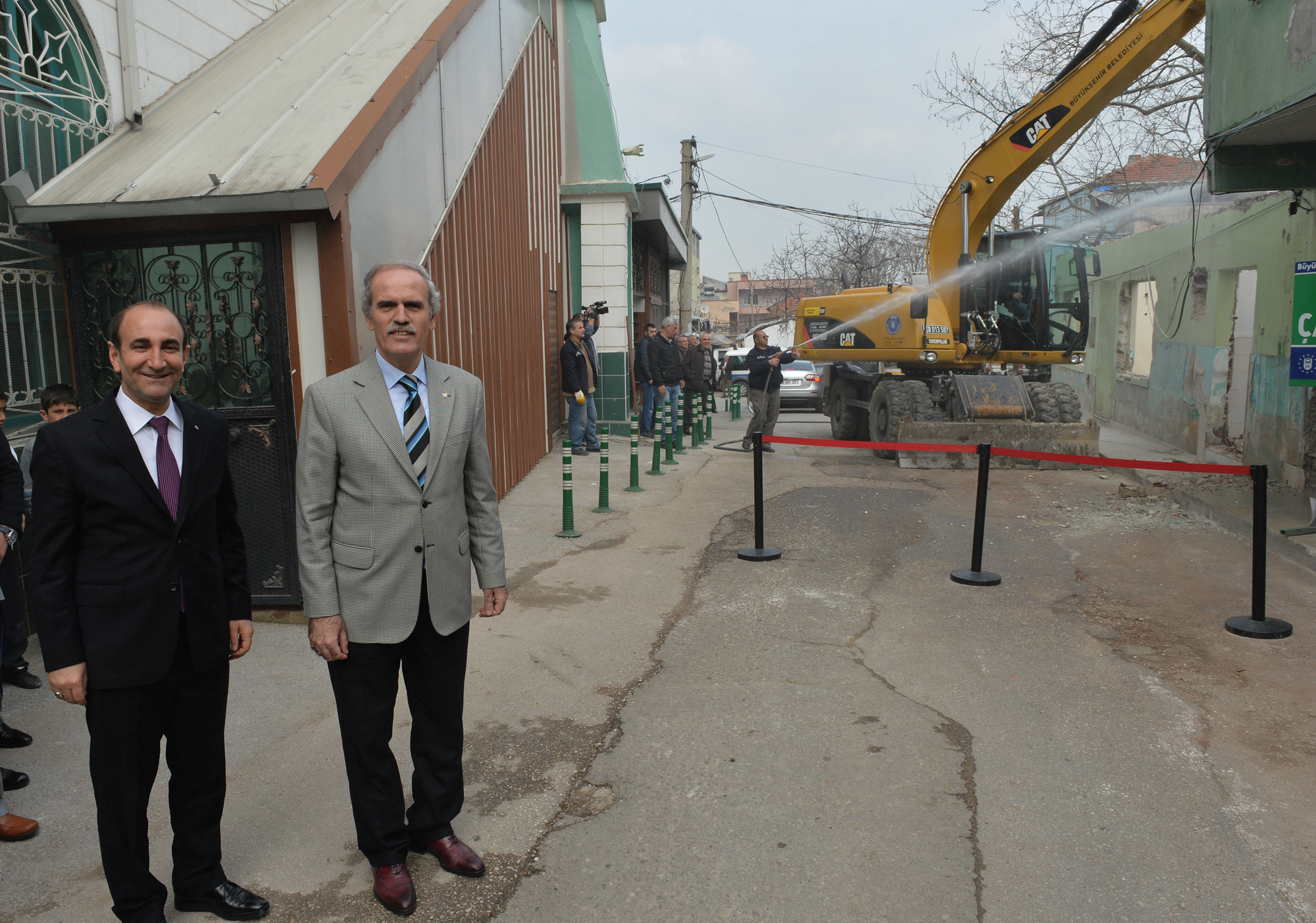 Yıldırım İlçe Müftüsü Osman Şen’in okuduğu duanın ardından ek hizmet binasını hizmete açan Başkan Altepe ve protokol üyeleri daha sonra proje alanı üzerinde kalan binaların yıkımını başlattı.