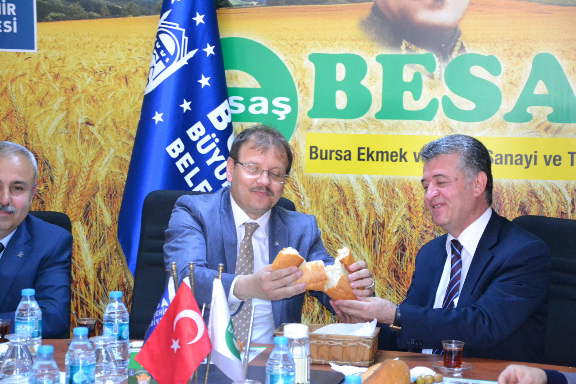 BESAŞ Genel Müdürü Mustafa Bektaş tarafından karşılanan Hakan Çavuşoğlu ve ekibine BESAŞ tesisi gezdirilerek ekmek üretimi hakkında bilgiler verildi. Şirket hakkında konuk heyete bilgi veren BESAŞ Genel Müdürü Mustafa Bektaş, 5 bant sistemi ve 3 vardiya ile çalışmakta olan fabrikanın günlük üretim kapasitesinin 300 bin civarında olduğunu söyledi. Her yıl Bursa halkına 95 milyon civarında ekmek üretildiğini dile getiren Bektaş, “BESAŞ olarak son bir yılda kalite politikamız çerçevesinde müşteri istekleri doğrultusunda ürün çeşidini arttırma ile ilgili çalışmalar yapmaktayız. Francala, Kepekli ekmek, Çavdar Ekmeği, Ay Çekirdekli Ekmek, Tam Buğdaylı Ekmeği olmak üzere 5 olan ürün çeşidini, 2015 yılı itibariyle 23’e çıkardık” dedi.