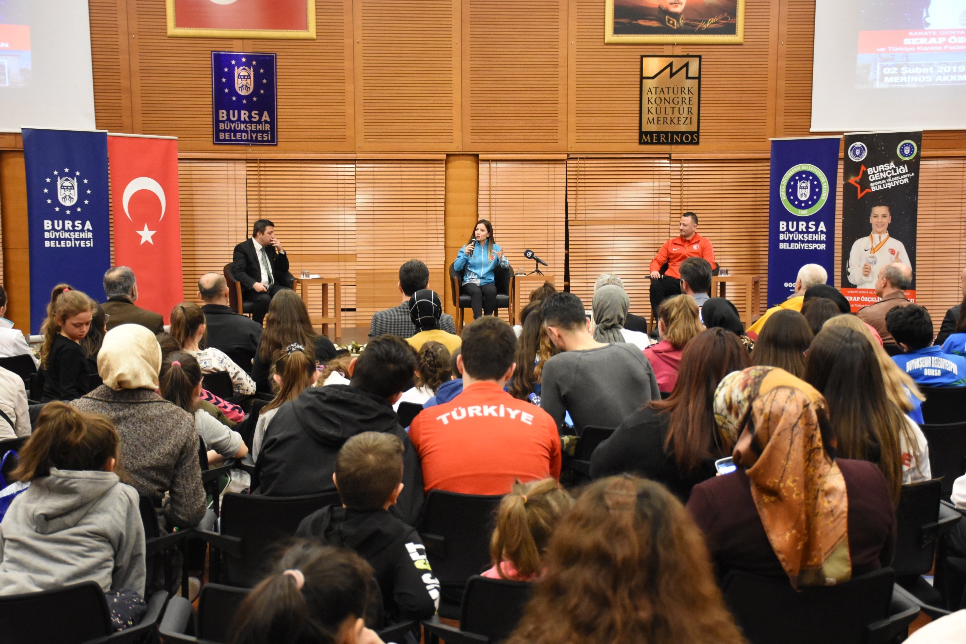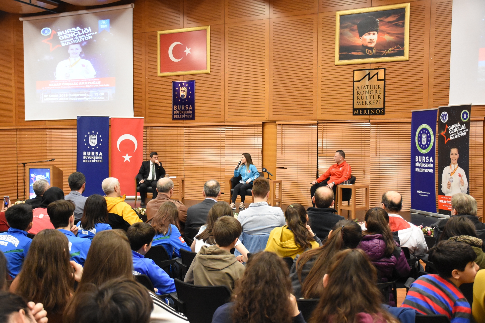 Büyükşehir Belediyesi Gençlik ve Spor Hizmetleri Şube Müdürlüğünce organize edilen ‘Bursa'nın gençleri, sporun yıldızlarıyla buluşuyor’ isimli program, Merinos Atatürk Kongre ve Kültür Merkezi’nde gerçekleştirildi. Muradiye Salonu’ndaki organizasyona, Bursa’da spor yapan yüzlerce genç ‘aileleriyle birlikte’ katıldı.