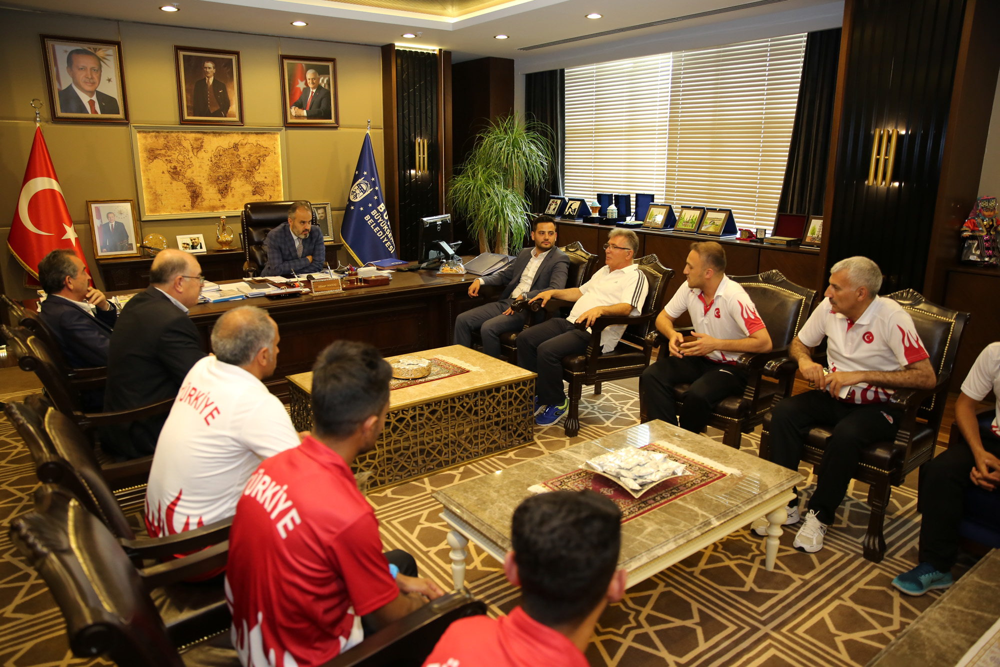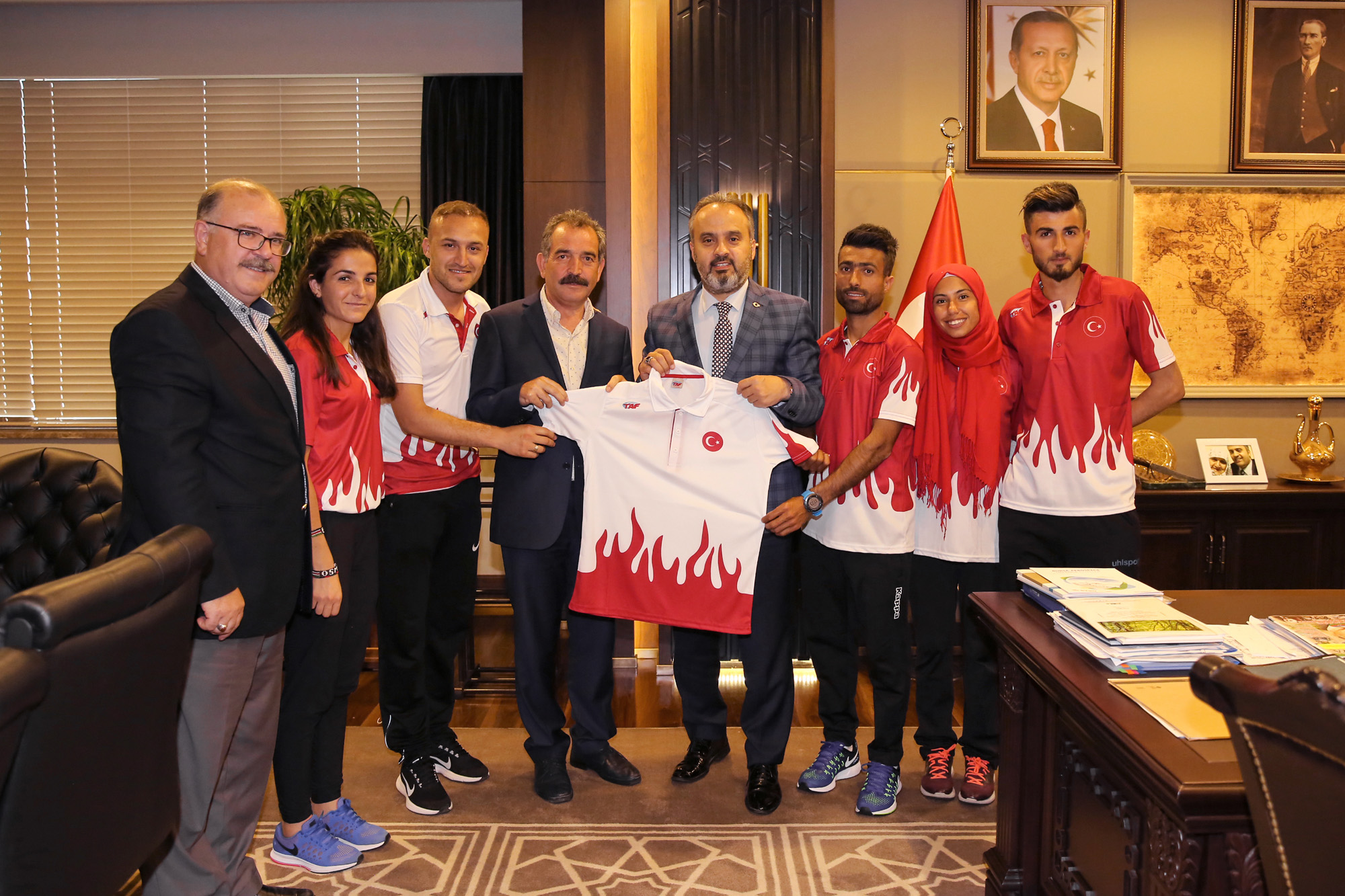BURSA - Hazırlık kampını Bursa'da yapan ve Makedonya'da gerçekleştirilecek Avrupa Dağ Koşusu Şampiyonası’na katılmaya hazırlanan Atletizm Milli Takımı sporcuları, Büyükşehir Belediye Başkanı Alinur Aktaş'ı ziyaret etti.
