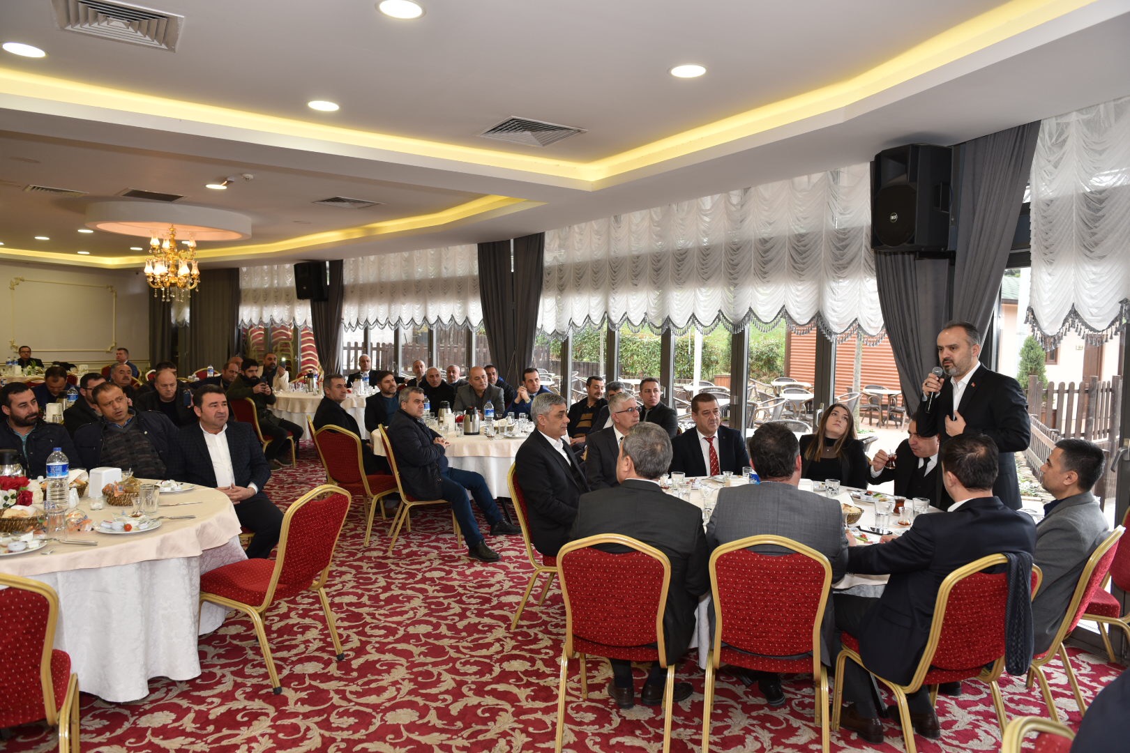 Bursa Minibüsçüler Odası Rafet Burgaz da Başkan Aktaş’a esnafın sorunlarını dinlediği ve çözüm üretmek için çabaladığından dolayı teşekkür etti. Burgaz, Kent Meydanı’nda yapılan raylı sistem hattı üzerinde, trafiğe açılması halinde, sağ ve solda kalan ve atıl durumda olan köprülerden bir tanesinin minibüs indirme bindirme noktası olması için düzenleme yapılacağına dair söz aldı.