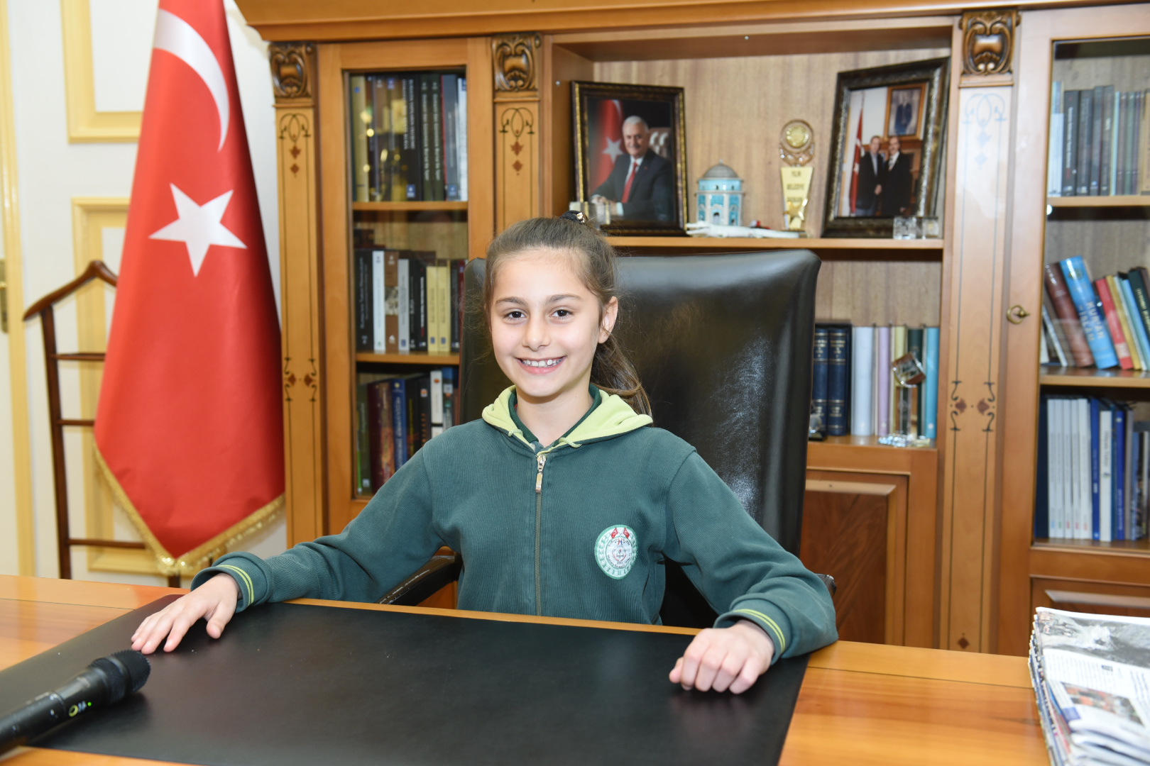 BURSA - Bursa Büyükşehir Belediye Başkanı Recep Altepe, 23 Nisan Ulusal Egemenlik ve Çocuk Bayramı nedeniyle makamını 4. sınıf öğrencisi Elif Ceyda Çolak’a devretti. Başkan Altepe’den yetkiyi alan Minik Başkan Elif Ceyda Çolak, bürokratlara verdiği talimatla okudukları okulun yanındaki boş arsaya amfi tiyatro yapılmasını istedi.