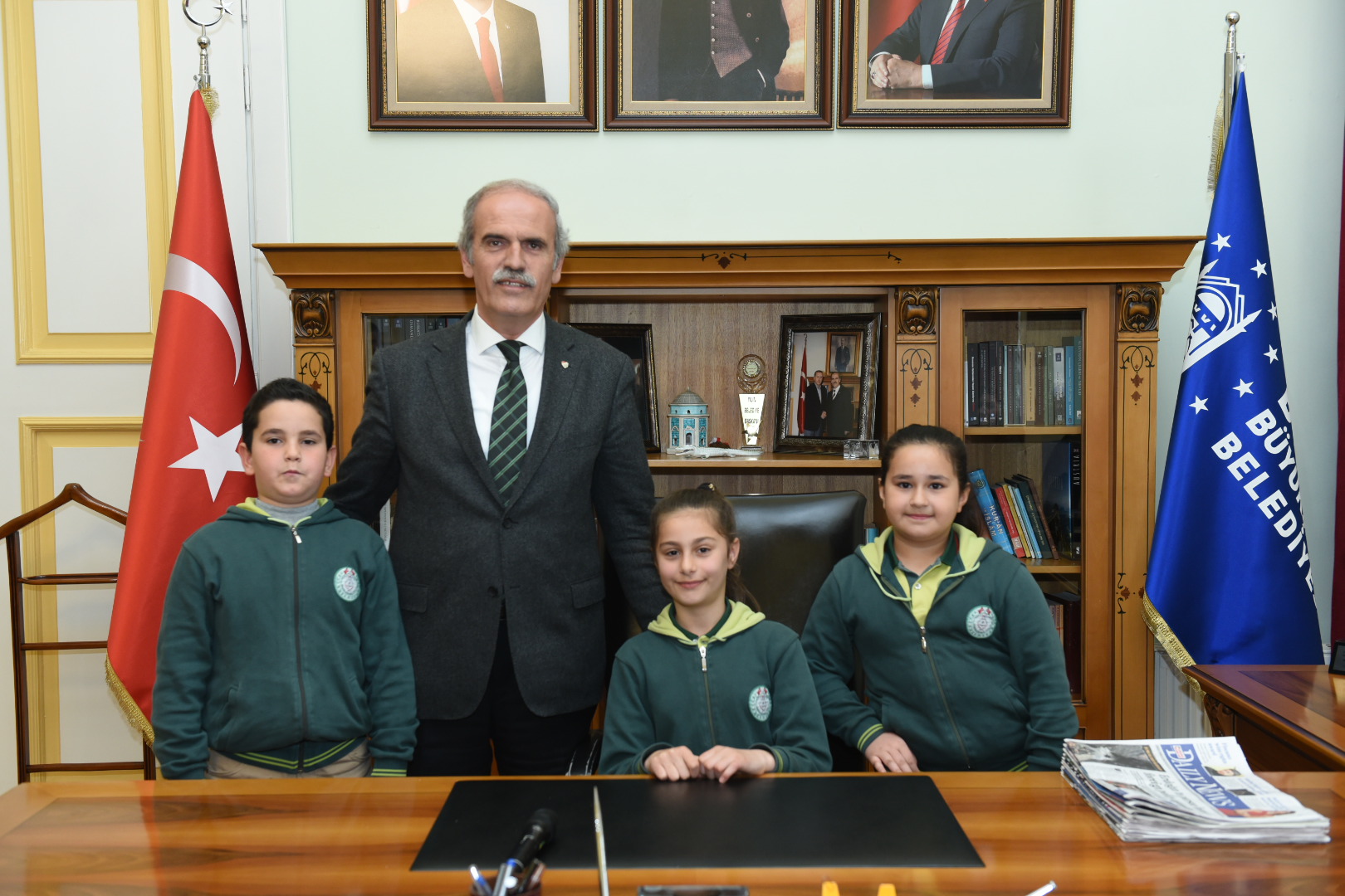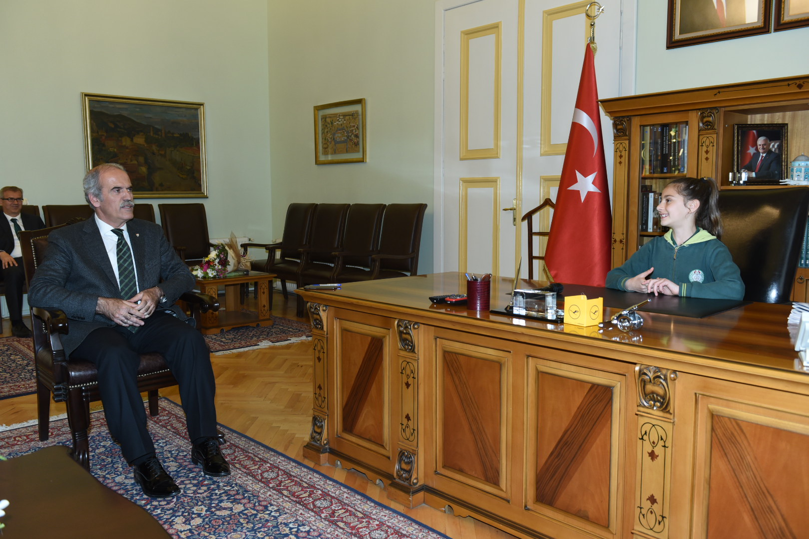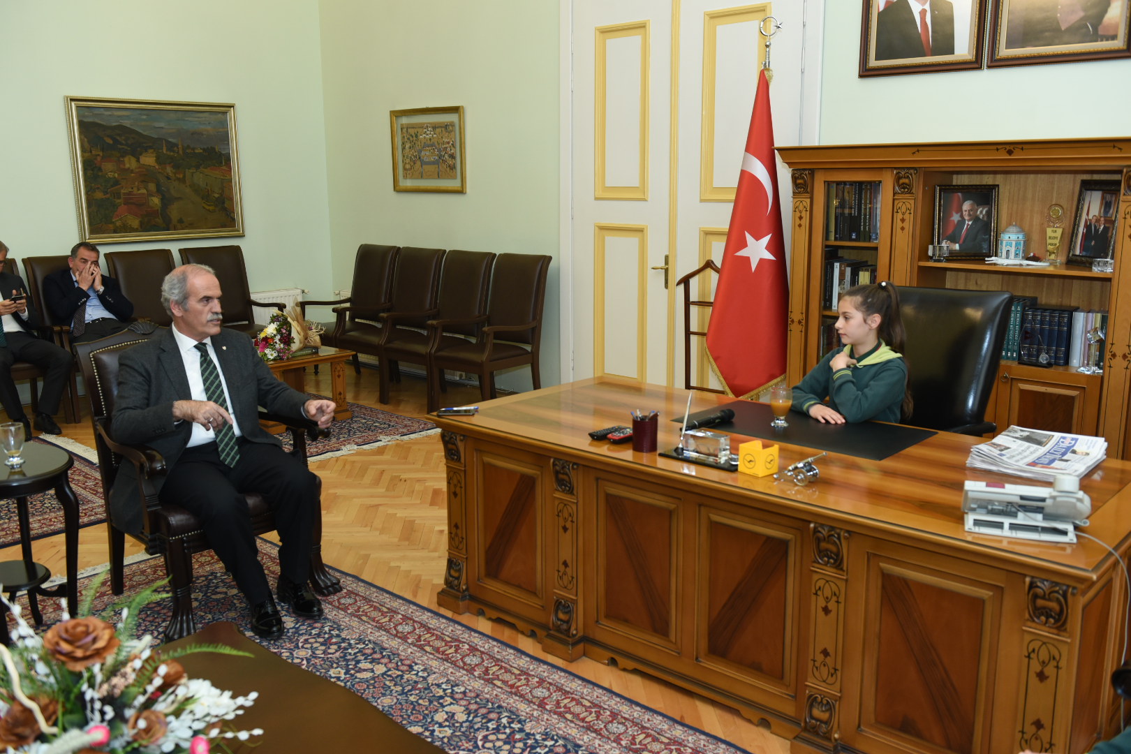 Büyükşehir Belediye Başkanı Recep Altepe, ‘çocuk bayramı nedeniyle temsili olarak’ başkanlığı Mustafa Dörtçelik İlkokulu’nda okuyan 4-D öğrencisi Elif Ceyda Çolak’a devretti. Heykel’deki tarihi başkanlık binasında gerçekleşen devirde, Okul Müdürü Harun Kızık ile öğretmenler de hazır bulundu.