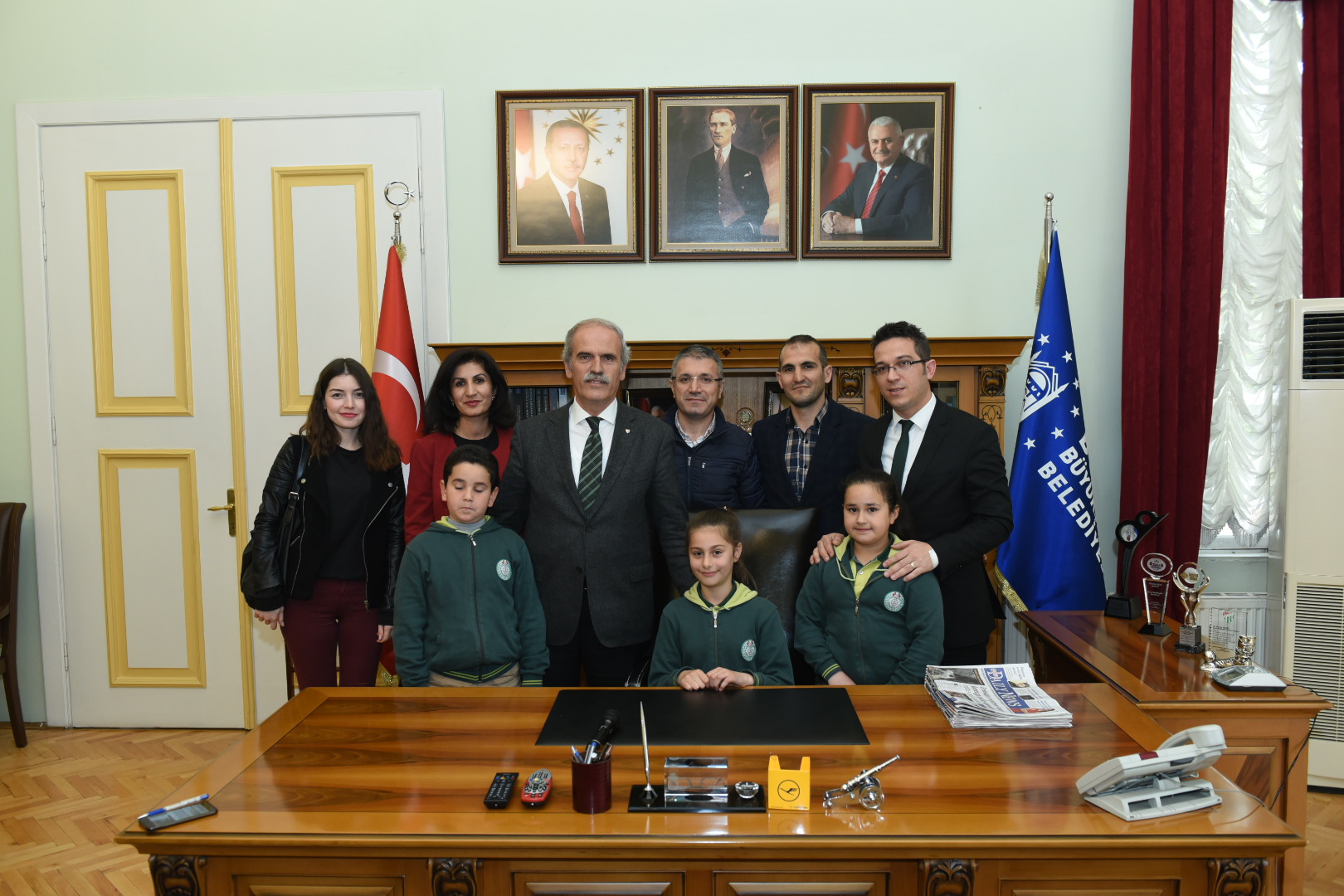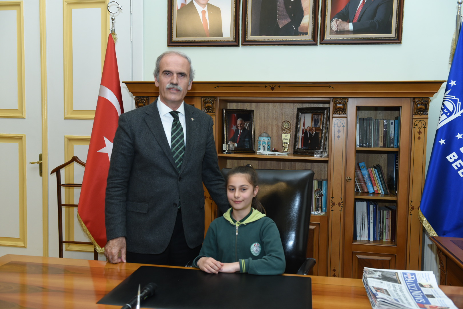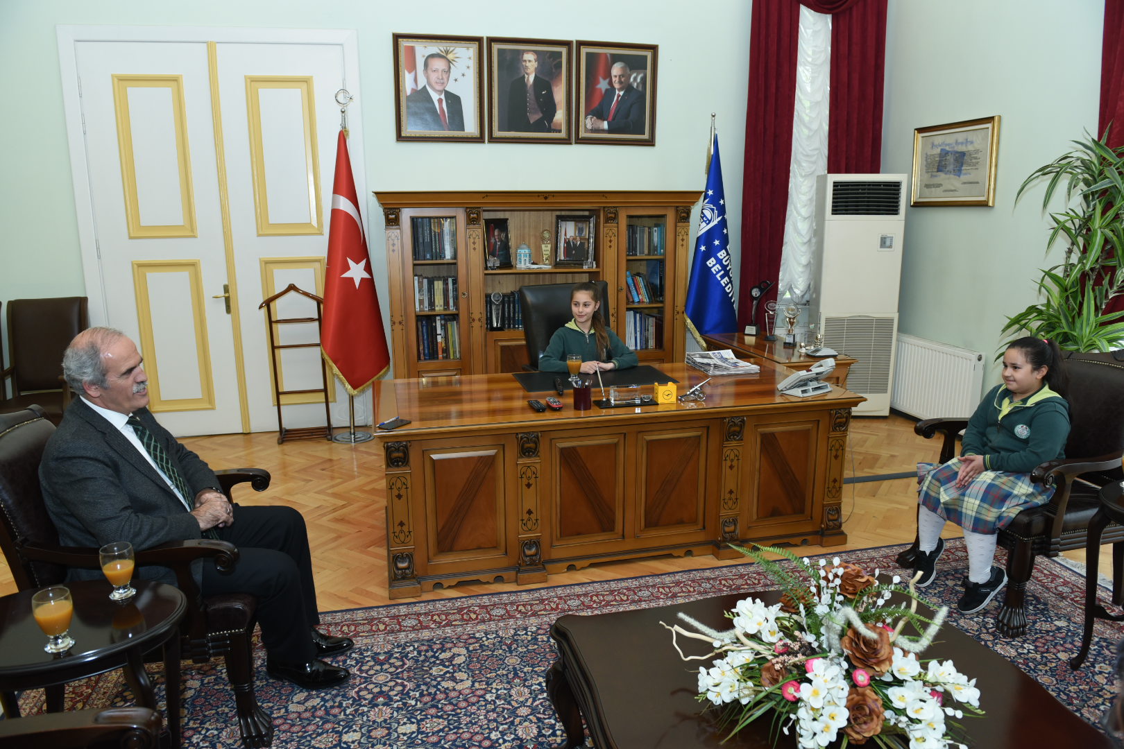 - BURSA BÜYÜKŞEHİR BELEDİYE BAŞKANI RECEP ALTEPE, 23 NİSAN ULUSAL EGEMENLİK VE ÇOCUK BAYRAMI NEDENİYLE MAKAMINI 4. SINIF ÖĞRENCİSİ ELİF CEYDA ÇOLAK’A DEVRETTİ.