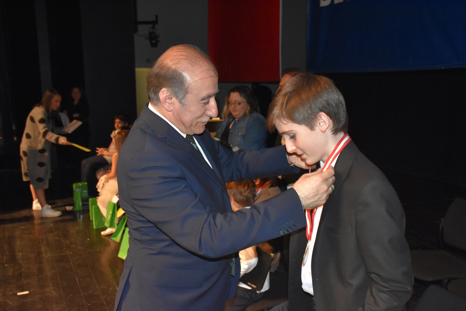 Konuşmalarından ardından performans gösteren çocuklara teşekkür belgesi ve madalya takdim edildi.