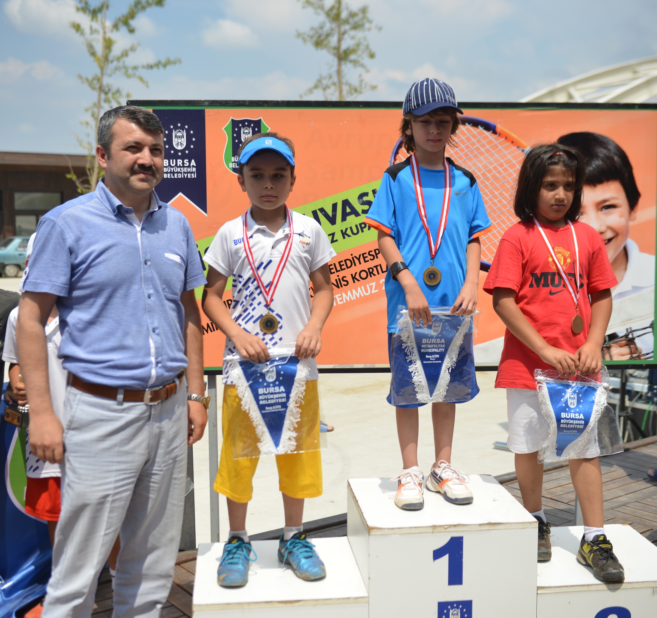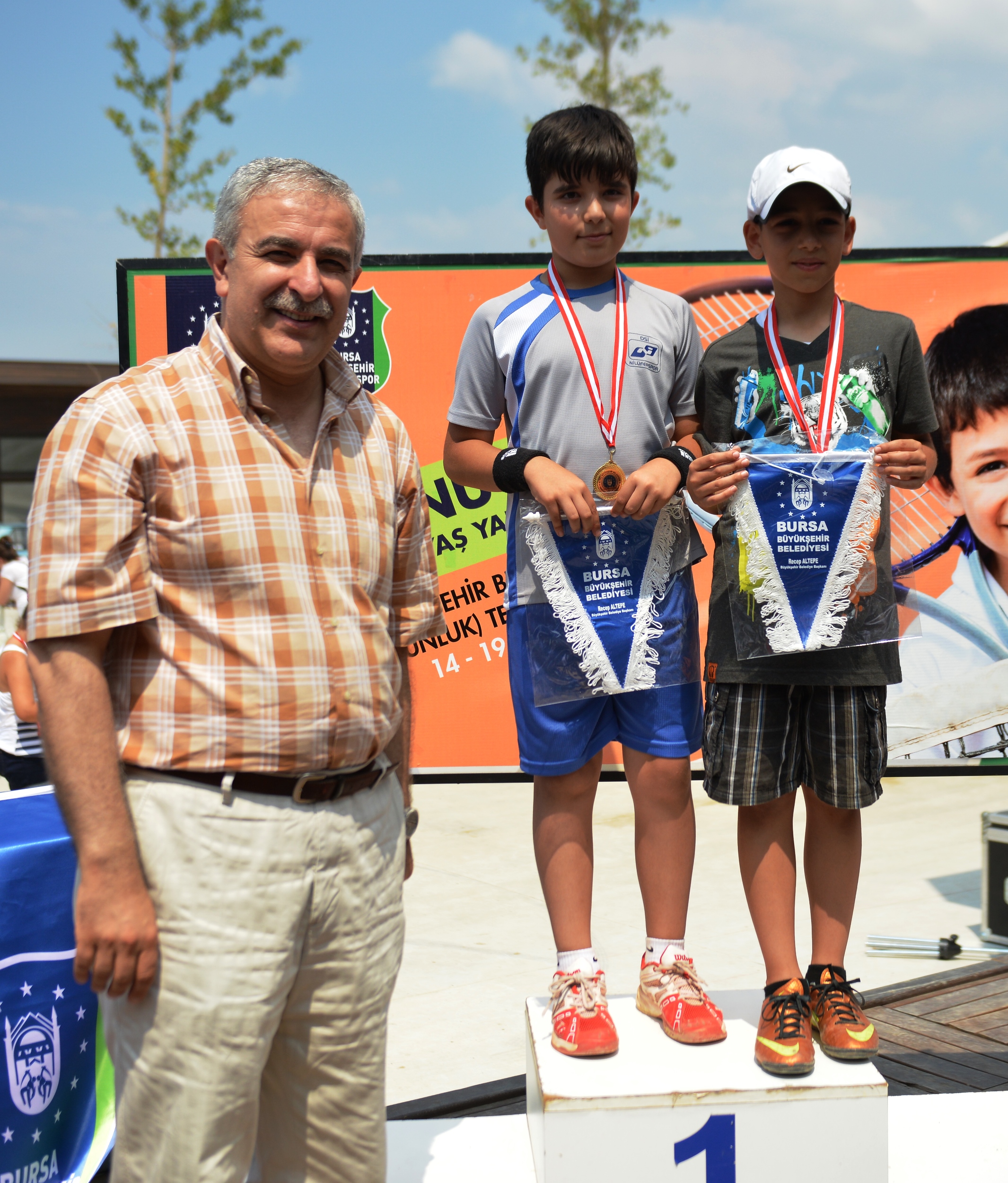 Bursa’da 5 gün süren turnuvada yaklaşık 200 ferdi sporcu başarı için kıyasıya mücadele etti. Hüdavendigar Parkı’na yapılan yaklaşık 18 kortun hizmete girmesinin ardından ‘8-9-10 Yaş Ulusal Tenis Yaz Kupası’, Bursa’da gerçekleştirildi. Bursa’nın yanı sıra İstanbul, İzmir, Ankara, Yalova ve Uşak’tan gelen sporcular, başarı için ter döktü. Dereceye giren başarılı sporculara ödüllerini Büyükşehir Belediyesi Başkanvekili Atilla Ödünç, Büyükşehir Belediyespor Kulübü Başkan Yardımcısı İlhan Satık, Büyükşehir Belediyespor Kulübü Tenis Branşı Sorumlu Yönetim Kurulu Üyesi Mustafa Uysal ve Büyükşehir Belediyespor Kulübü Müdürü Taha Başparmak takdim etti. Turnuva boyunca birincilik için yoğun emek veren ve başarının haklı gururunu yaşayan minik sporcuların ödül sevinci ve heyecanı ise yüzlerine yansıdı. Sporcuların başarısına aileleri de ortak oldu.