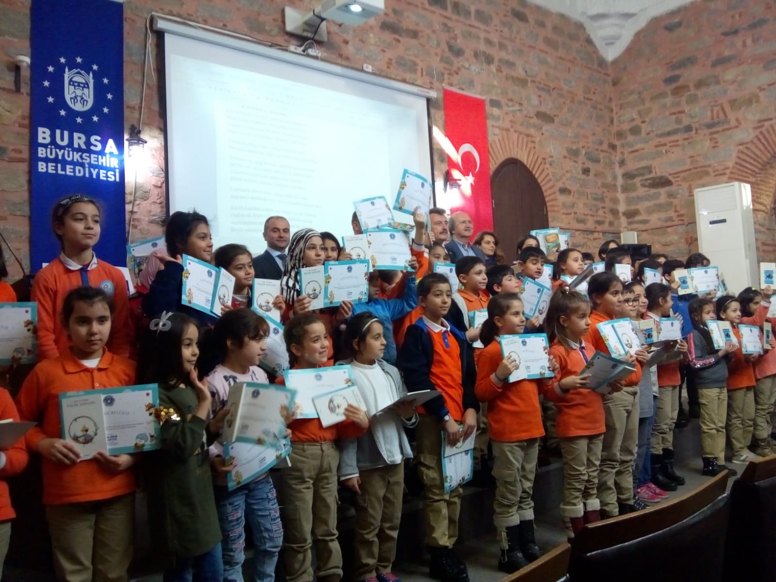 Başarılı olan minik yeteneklere ve projeye katkısı olan öğretmen ve Uludağ üniversitesi eğitim fakültesi sınıf öğretmenliği öğrencilerine de belgeleri verildi.