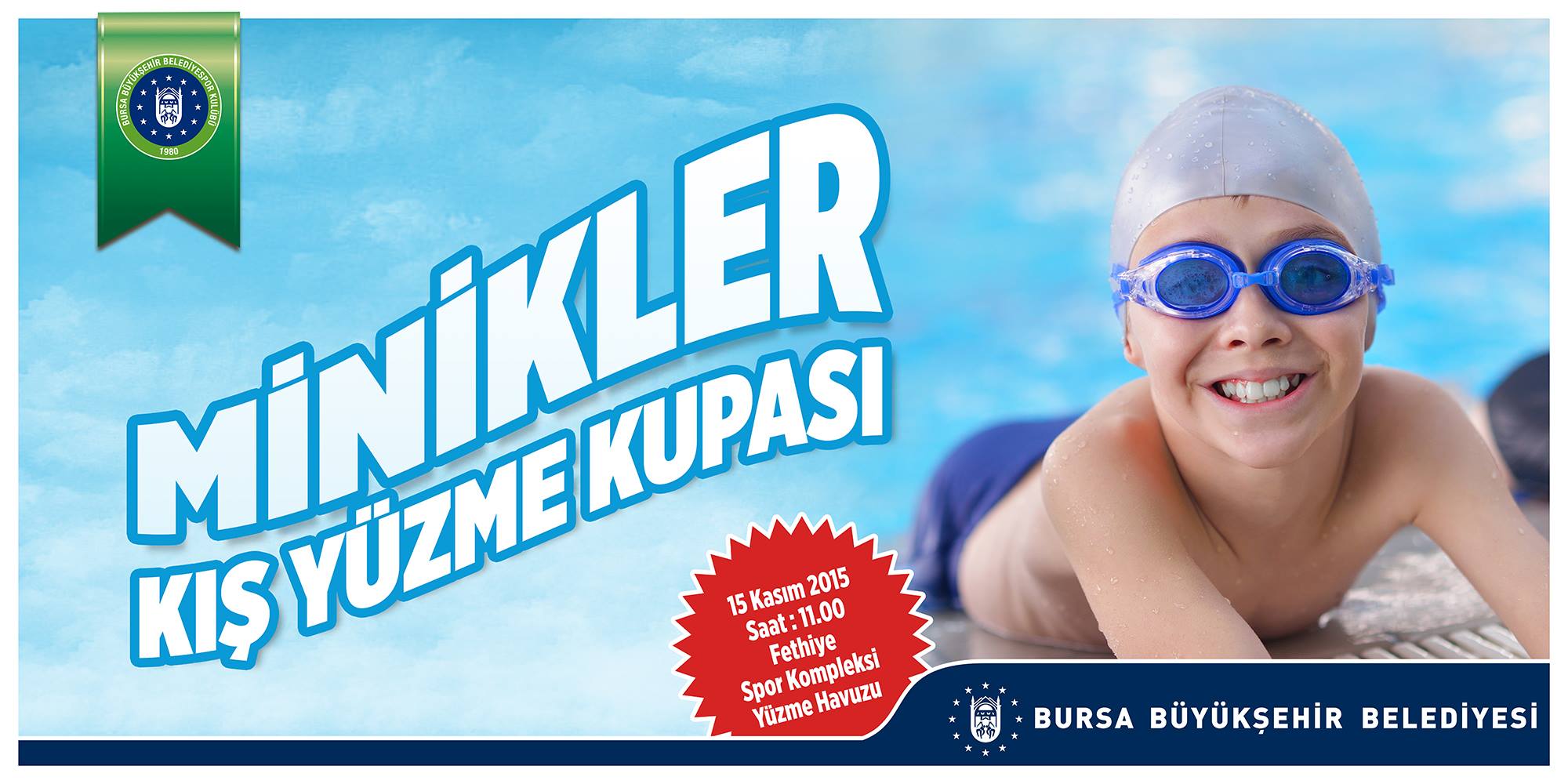- BURSA BÜYÜKŞEHİR BELEDİYESİ´NİN EV SAHİPLİĞİNDE DÜZENLENEN VE BU YIL İKİNCİSİ YAPILACAK OLAN MİNİKLER YÜZME KIŞ KUPASI, ARALARINDA BURSA BÜYÜKŞEHİR BELEDİYESPOR KULÜBÜ´NÜN DE OLDUĞU BEŞ TAKIMIN KATILIMIYLA 15 KASIM 2015 PAZAR GÜNÜ BURSA BÜYÜKŞEHİR BELEDİYESİ FETHİYE SPOR KOMPLEKSİ´NDE BAŞLIYOR.