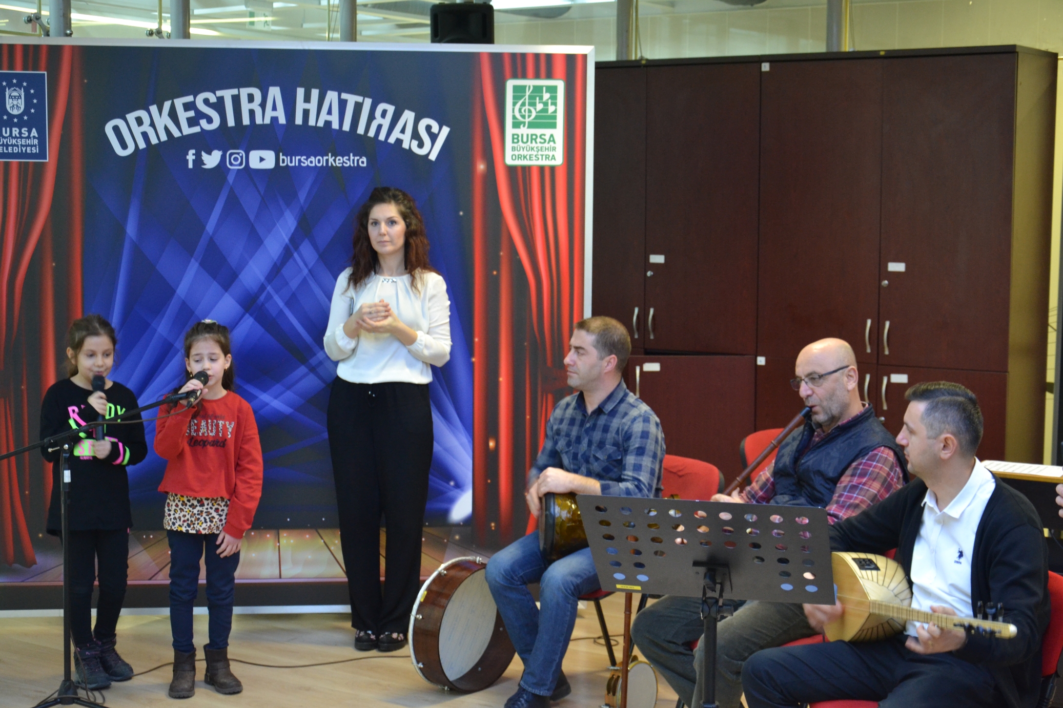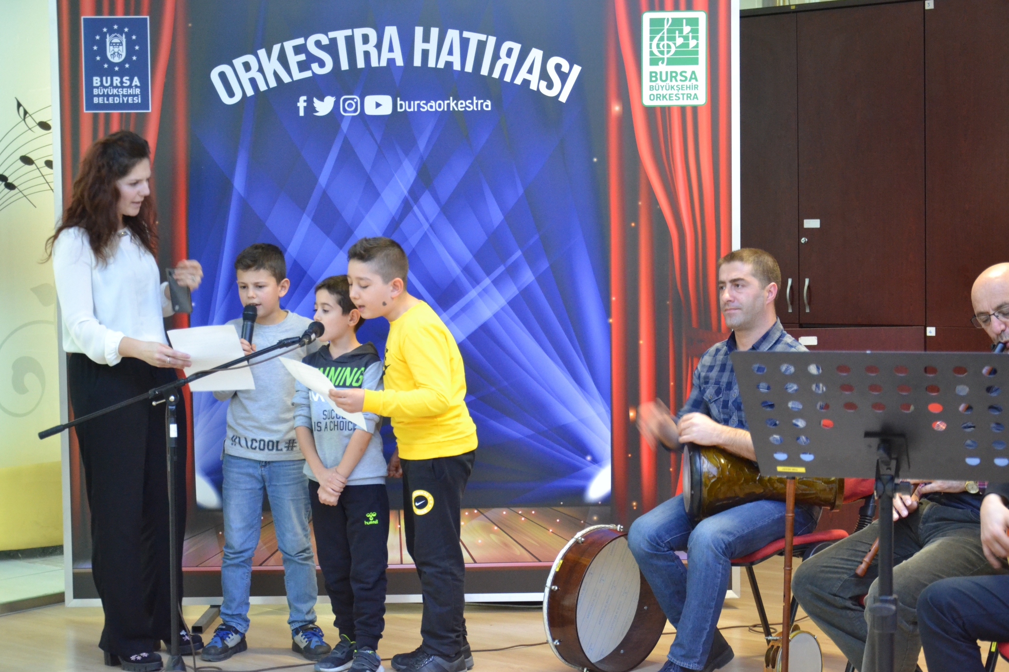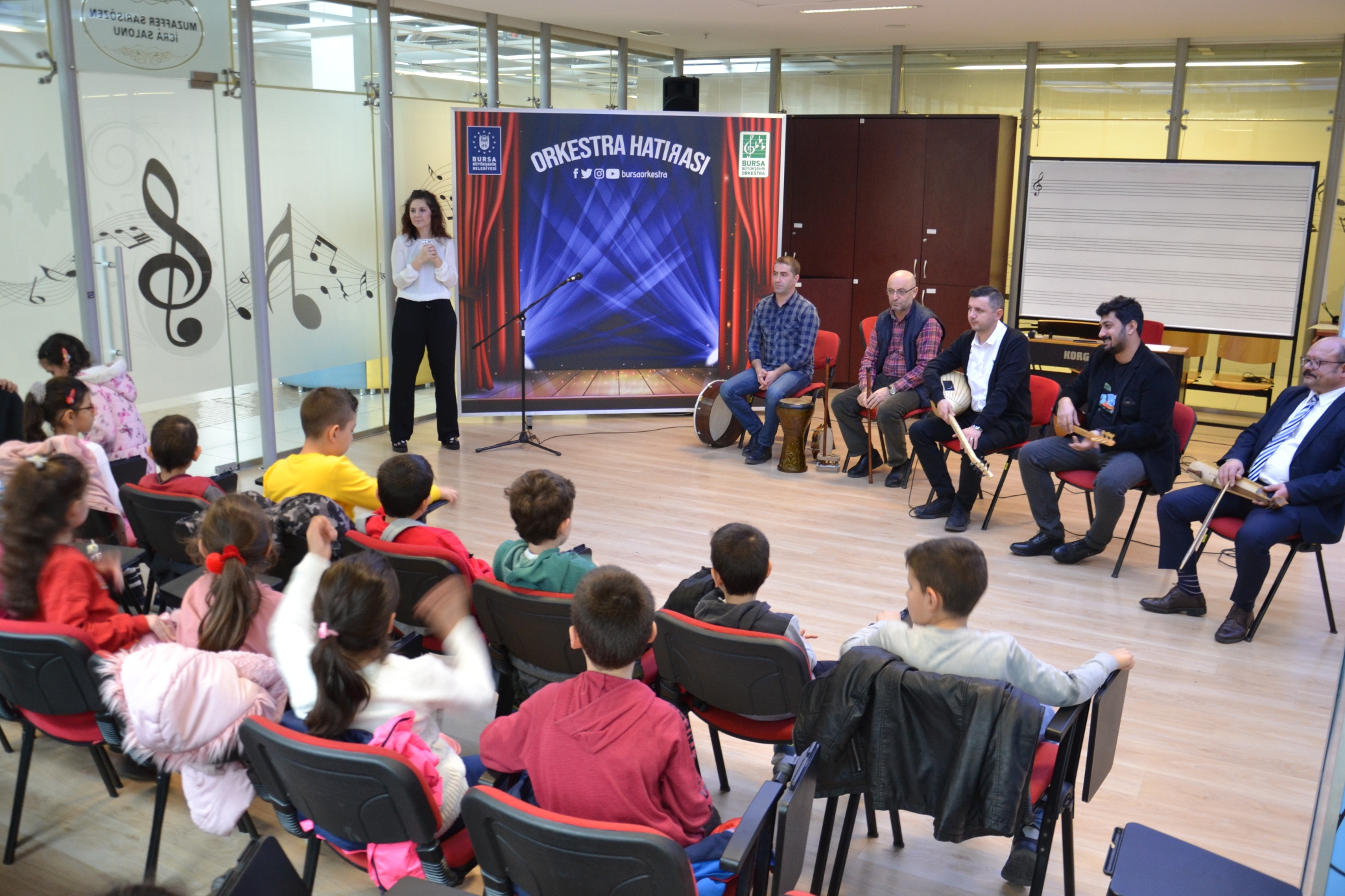 BURSA - Bursa Büyükşehir Belediyesi Orkestra Şube Müdürlüğü Türk Halk Müziği Bölümü “Müzik Atölyesi Projesi”ni çocuklar çok sevdi. Atölye kapsamında mikrofonla tanışan ve Orkestra Şube Müdürlüğü Türk Halk ve Türk Sanat Müziği hocalarından ders alan öğrenciler, ilk deneyim performanslarıyla müzisyenlerle taş çıkardı. Büyükşehir Belediyesi Orkestra Şube Müdürlüğü’nün sanatı topluma yaymak ve geleneksel müziği gençlere sevdirmek adına ilköğretim öğrencilerine yönelik yürüttüğü ‘Müzik Atölyesi’ eğitim programına bu kez Osmangazi İlçe Milli Eğitim Müdürlüğü’ne bağlı Davut Çalışkan İlkokulu 3-E Sınıfı konuk oldu. Öğrencilere önce halk müziği enstrümanları tanıtıldı. Ardından mikrofona başına geçen minikler, dillerden düşmeyen türküleri saz sanatçıları ile birlikte seslendirdi. Atölye çalışmasından büyük keyif alan öğrencilerin solo performansları görülmeye değerdi. Hayli neşeli geçen etkinlikte öğrencilerin başarılı performansları alkış aldı. Sınıf öğretmeni Elif Durmaz, kendilerine bu imanı tanıyan ve öğrencilerin müzikle buluşmasına zemin hazırlayan Bursa Büyükşehir Belediye Başkanı Alinur Aktaş, Orkestra Şube Müdürü Muhterem Çakır ve Türk Halk Müziği Bölüm Başkanı Züleyha Savaş ile çocuklara eşlik eden sanatçılara teşekkür etti.