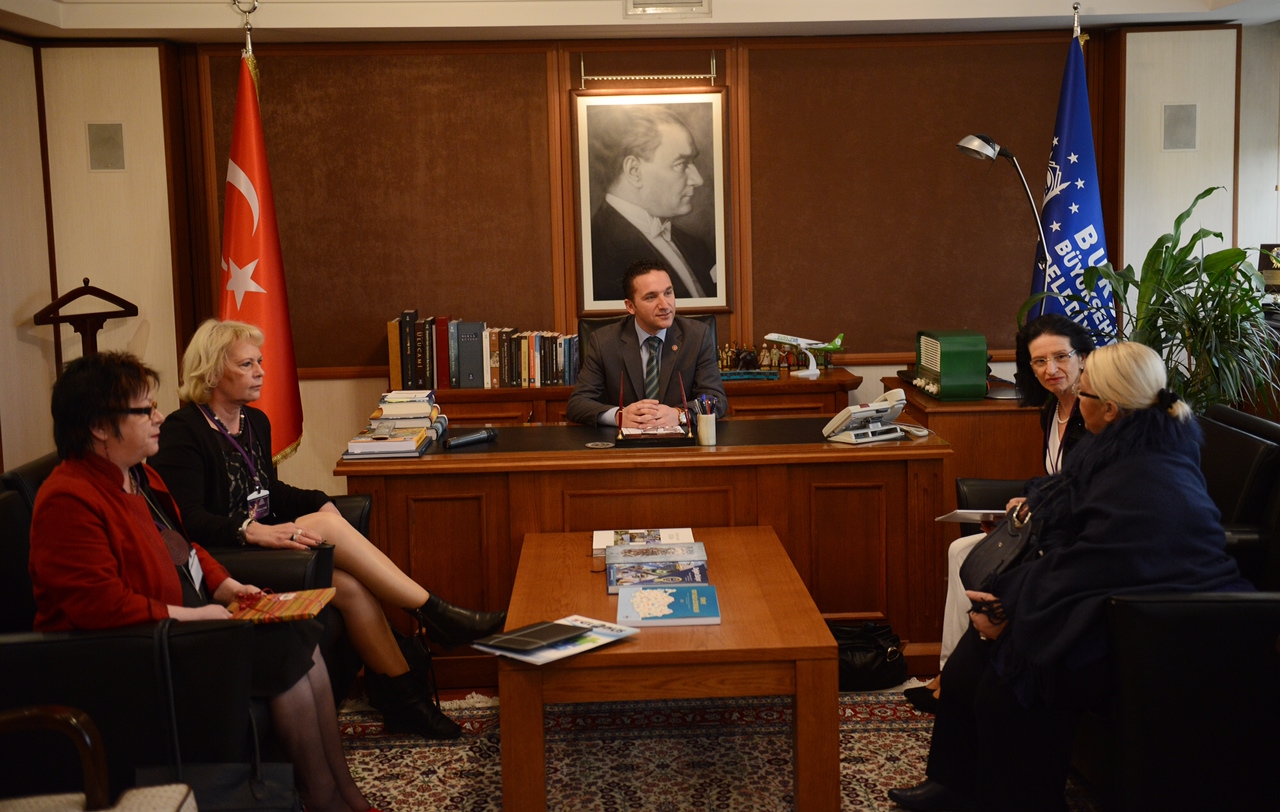 Merkezi Bursa’da bulunan ve kadın haklarının uygulanması ve suistimal edilmemesi yönünde faaliyet gösteren Mor Salkım Kadın Dayanışma Derneği’nin yönetim kurulu üyeleri, kadınlara yönelik pozitif ayrımcılık içeren projelerinden dolayı Büyükşehir Belediyesi’ne teşekkür ziyaretinde bulundu. BUSKİ’deki başkanlık makamında gerçekleşen ziyarette, Mor Salkım Kadın Dayanışma Derneği üyelerini, Büyükşehir Belediye Başkanı Recep Altepe adına Başkanvekili Atilla Ödünç ağırladı. Ziyarete Mor Salkım Kadın Dayanışma Derneği Başkanı Dilek Üzümcüler ile yönetim kurulu üyeleri Hatice Aygün, Suzan Künbi, Dr. Sosyolog Pelin Feymi ve Burcu Üzümcüler ile Almanya’nın Hessen Eyaleti Violet Kadın Dayanışma Derneği üyeleri katıldı.
