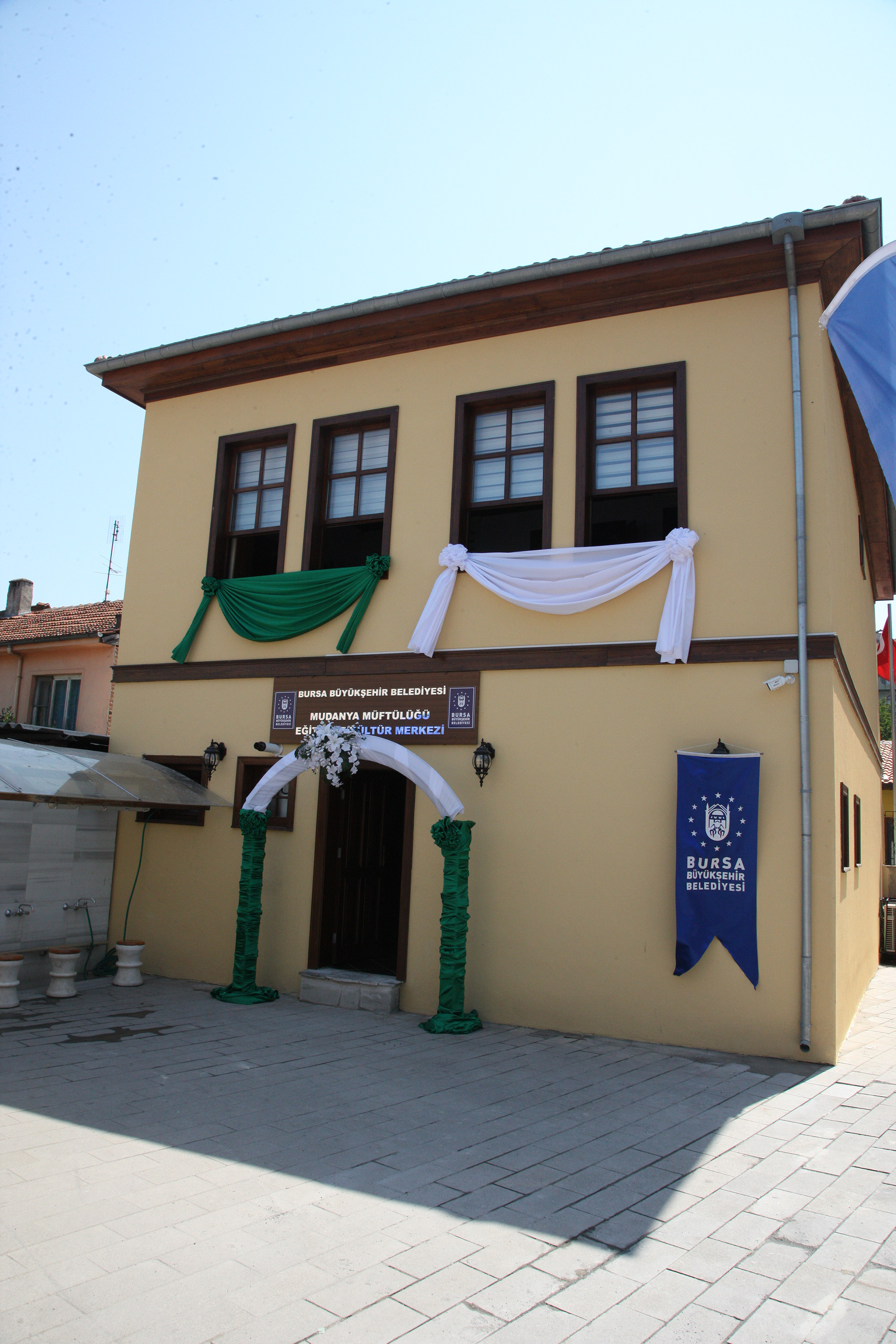 - BURSA BÜYÜKŞEHİR BELEDİYESİ TARAFINDAN RESTORASYONU TAMAMLANAN MUDANYA TEKKE-İ CEDİD CAMİİ YANINDAKİ İKİ KATLI SİVİL MİMARİ ÖRNEĞİ YAPI, MUDANYA MÜFTÜLÜĞÜ EĞİTİM VE KÜLTÜR MERKEZİ OLARAK HİZMETE AÇILDI.