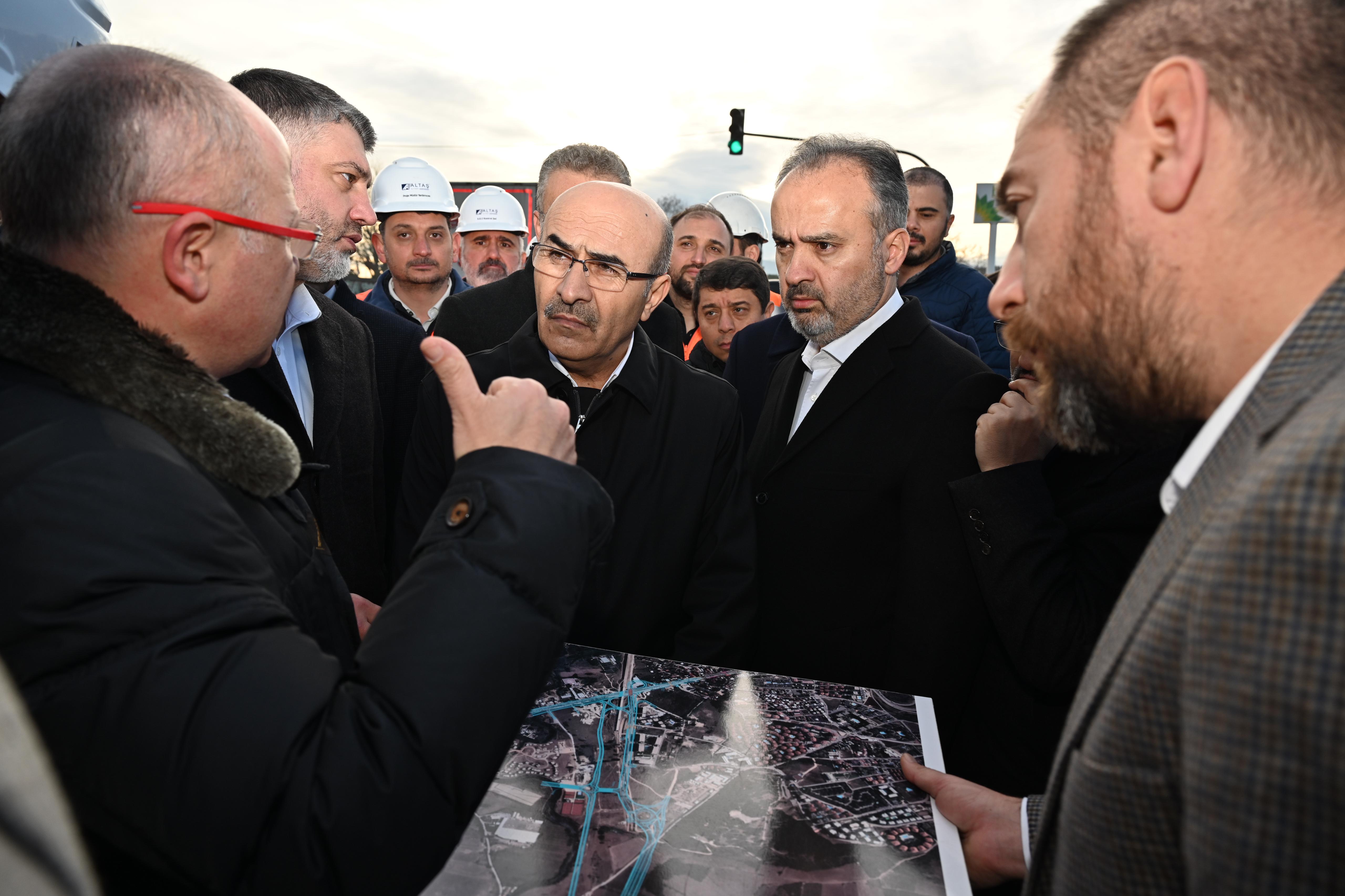 Şehir Hastanesi'ne kesintisiz ulaşım için Bursalıların merakla beklediği projeyi, kentin zirvesi de yakından takip ediyor. Bursa Valisi Mahmut Demirtaş, Büyükşehir Belediye Başkanı Alinur Aktaş, Bursa Milletvekilleri Refik Özen ve Muhammet Müfit Aydın, Ulaştırma ve Altyapı Bakanlığı Altyapı Yatırımları Genel Müdürü Yalçın Eyigün ve AK Parti İl Başkanı Davut Gürkan, 3'er şerit olarak normal seyrine dönen yolda inceleme yapıp, devam eden raylı sistem çalışmasıyla ilgili yüklenici firma yetkililerinden bilgi aldı.