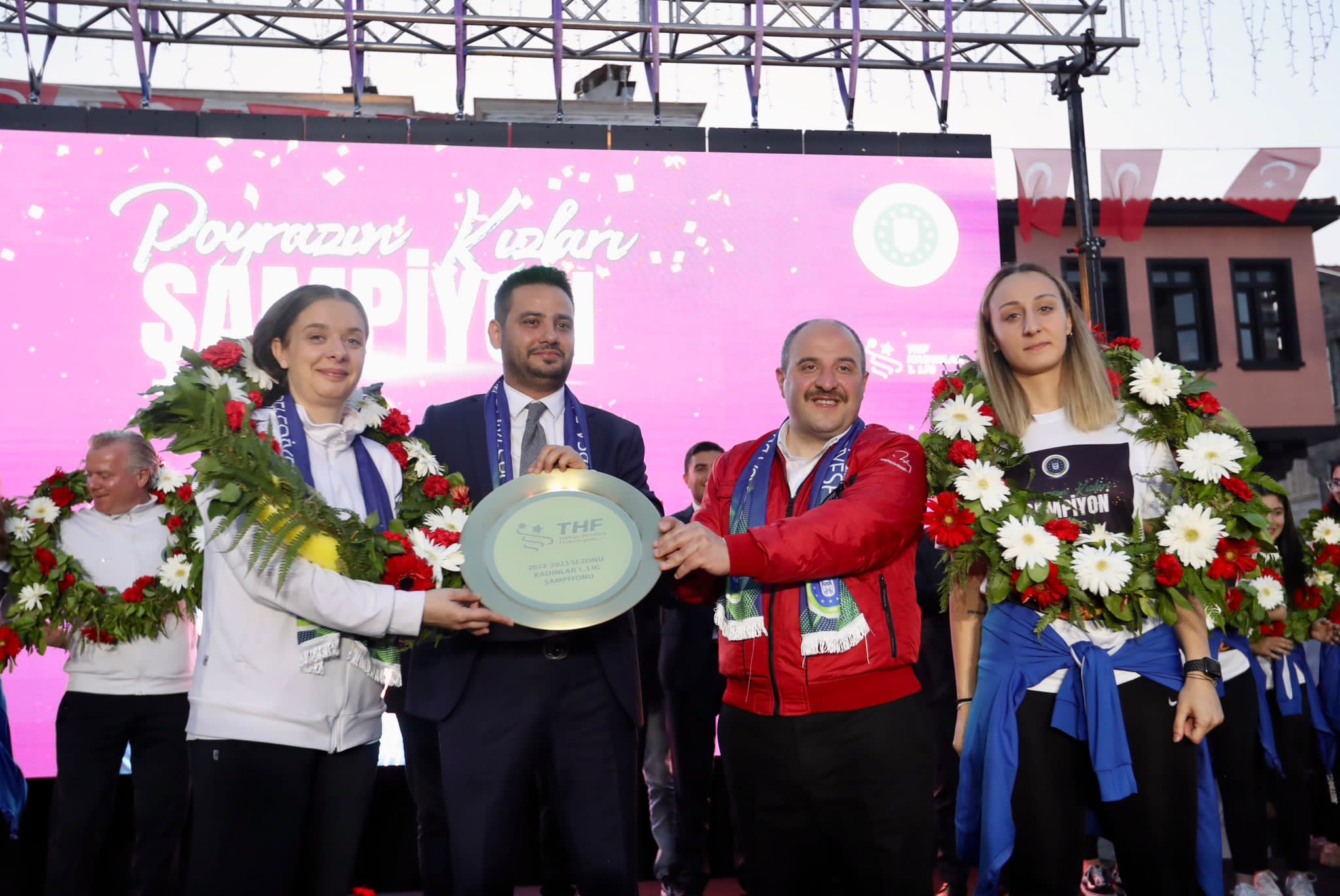 Sanayi ve Teknoloji Bakanı Mustafa Varank da sözlerine şampiyon takımın oyuncularını tebrik ederek başladı. 'Poyrazın Kızları'nı ilk duyduğu andan itibaren yakından takip etmeye başladığını belirten Bakan Varank, "Bu işler yüreğini ortaya koyarak olur. Bu kızlarımızın her biri yüreğini ortaya koydu. Hocamız yüreğini ortaya koydu. Hamdolsun bu neticeyi elde ettik. Ne diyoruz? 'Mudanya'nın poyrazı sert eser' diyoruz. Poyrazın Kızları da sert oynar ama neticeyi alır. Şampiyonluğunuz kutlu olsun. Hayırlı uğurlu olsun. İnşallah sizlerin Süper Lig'deki başarılarını da hep birlikte takip edeceğiz" dedi.