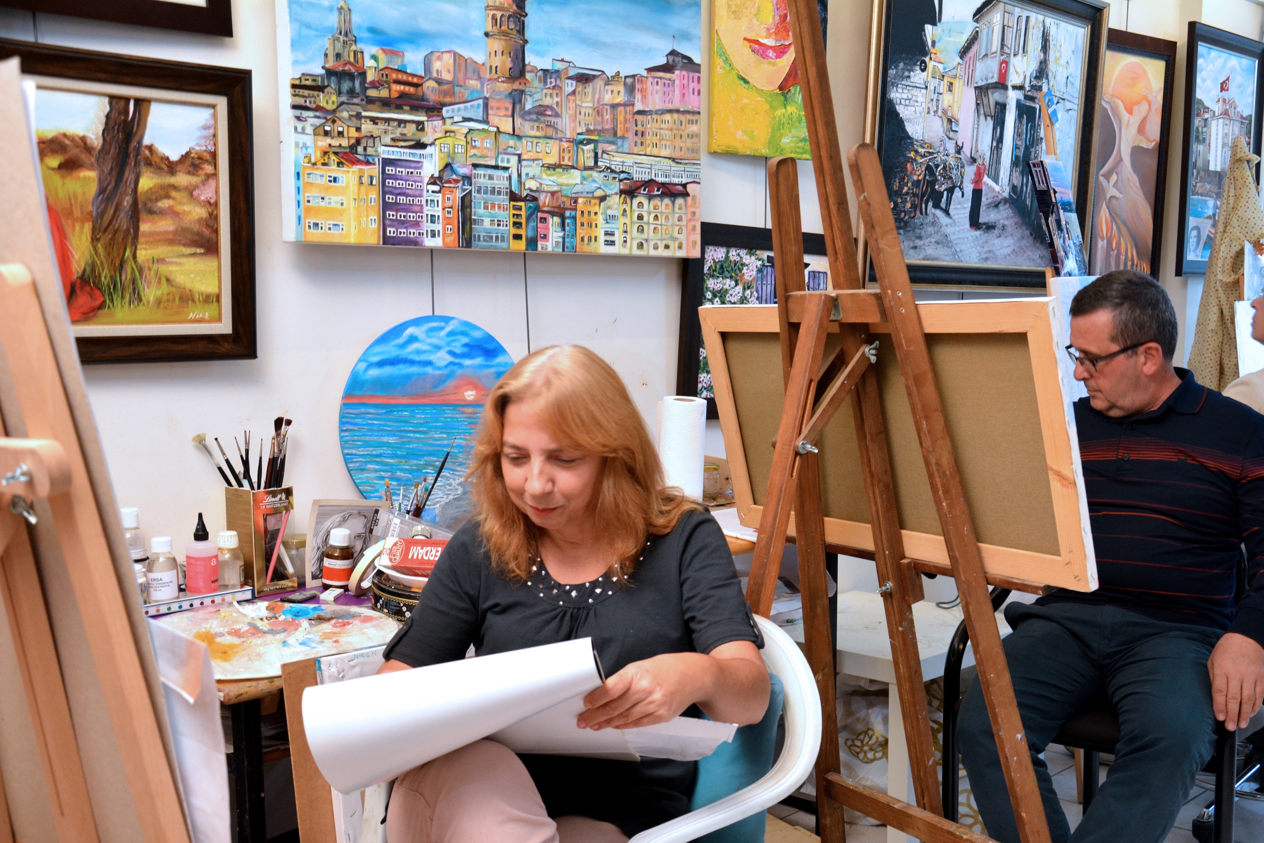 BURSA – Mudanya BUSMEK kursiyerlerinin kurslarda başlayan dostluğu, Mudanya Resim Atölyesi’nde devam ediyor.