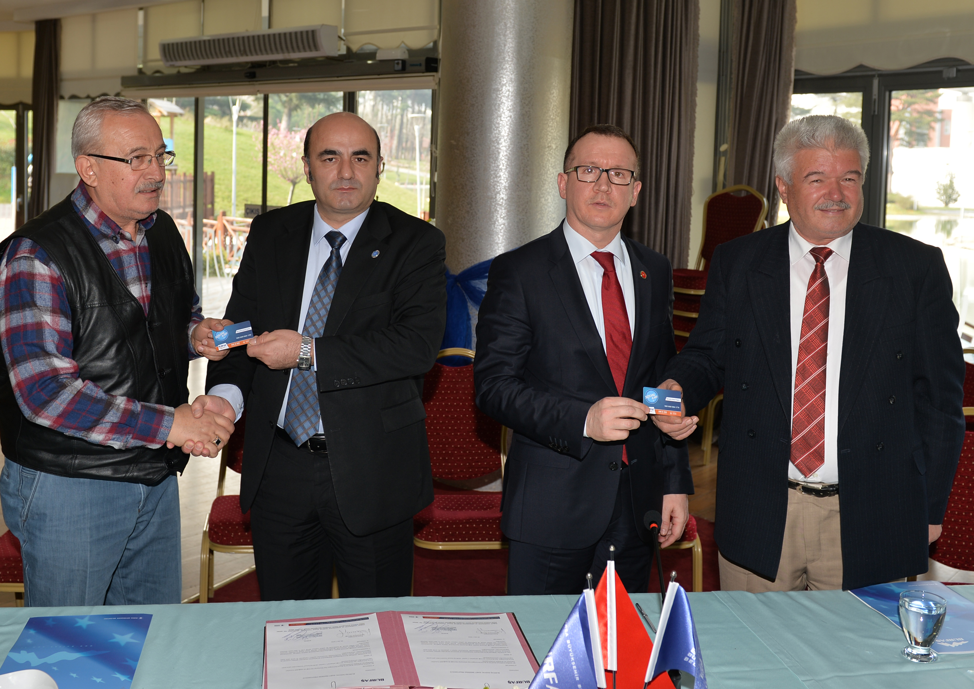 BURFAŞ Gölpark Sosyal Tesisleri’nde yapılan protokole; Büyükşehir Belediyesi adına Başkanvekili Abdülkadir Karlık, BURFAŞ adına Genel Müdür Muhammet Gümüşsoy, Osmangazi Muhtarlar Derneği adına Başkan Ferruh Sevimgil, Yıldırım Muhtarlar Derneği adına da Başkan İsmail Eroğlu imza koydu. Varılan mutabakat çerçevesinde, Osmangazi ve Yıldırım’da faaliyet gösteren muhtarlar da sosyal tesislerde sosyal kartın sunduğu imkanlardan yararlanma şansını yakaladı. Büyükşehir Belediye Başkanvekili Abdülkadir Karlık ile BURFAŞ Genel Müdürü Muhammet Gümüşsoy, tüm muhtarlar adına temsili kartları dernek başkanlarına teslim etti.