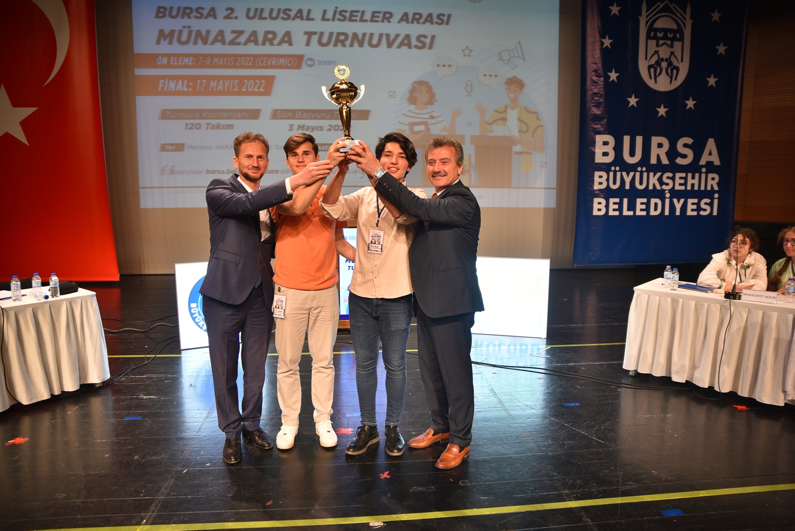 BURSA – Bursa Büyükşehir Belediyesi’nin İl Milli Eğitim Müdürlüğü işbirliğiyle ikincisini düzenlediği Liselerarası Ulusal Münazara Turnuvası’nın şampiyonu, BTSO Ali Osman Sönmez Sosyal Bilimler Lisesi’nden Alper Akman ile Efe Dönmez’den oluşan Mimoza takımı oldu.