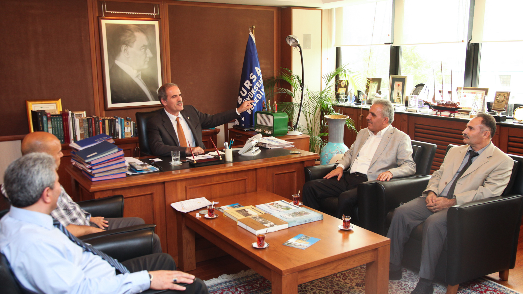 Büyükşehir Belediye Başkanı Recep Altepe, Bursa Muşlular Derneği Başkanı İhsan Akın ve yönetim kurulu üyelerini Acemler’deki makamında ağırladı. Başkan Altepe, 2 ay önce yapılan genel kurulda güven tazeleyen Dernek Başkanı İhsan Akın ile yeni yönetim kuruluna başarılar dileyerek, yeni hizmet döneminde de daha önce olduğu gibi başarılı çalışmalara imza atılacağına inandığını söyledi.