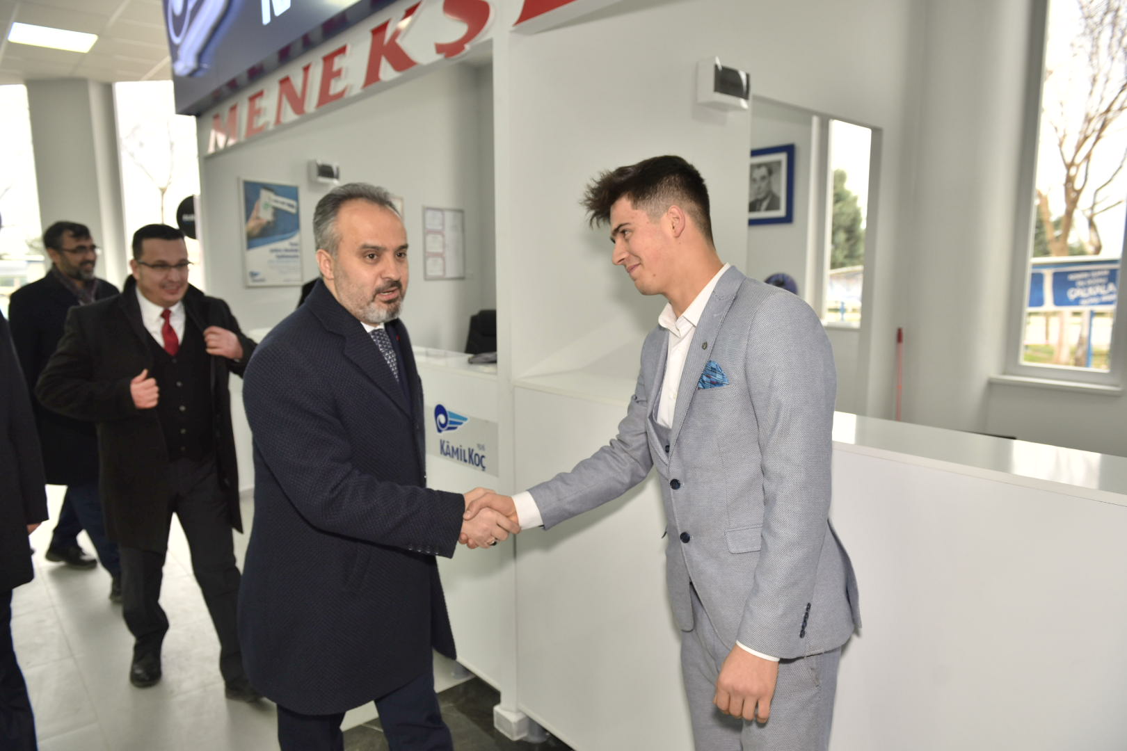 Bursa Büyükşehir Belediye Başkanı Alinur Aktaş, beraberindeki Mustafakemalpaşa Belediye Başkanı Sadi Kurtulan ve Mustafakemalpaşa Belediye Başkan Adayı Mehmet Kanar ile birlikte yenilenen terminal binasını gezdi. Terminalde faaliyet gösteren firma temsilcileriyle sohbet eden Başkan Aktaş, terminal esnafı ve otobüs bekleyen yolcuları da selamladı. İl ve ilçelerin en önemli buluşma noktalarından birinin de terminaller olduğunu hatırlatan Başkan Aktaş, Mustafakemalpaşa terminalinin de 1990'lı yıllardan beri hizmet verdiğini ve şartların pek uygun olmadığını vurguladı. Gerek Mustafakemalpaşa Belediye Başkanı Sadi Kurtulan, gerekse terminal esnafının iyileştirme veya değiştirme yönünde talepleri olduğunu dile getiren Başkan Aktaş, "Burulaş marifetiyle işlettiğimiz için burada çok kapsamlı revizyon ve tadilat çalışması yaptık. Yaklaşık 450 bin TL harcadık ve pırıl pırıl güzel bir mekan ortaya çıktı. Gün ışığından daha çok yararlanmak için büyük camlar oluşturuldu. Su yalıtımları, cephe mantolama, kısaca tabanından tavanına tüm alanlar elden geçirildi ve güzel bir mekan ortaya çıktı. Burası şuan ihtiyacı yeterince karşılıyor ama Mustafakemalpaşa'nın gelişimine paralel olarak yeni bir terminal çalışması düşünüyoruz. Şuan itibariyle gelinen noktada, Mustafakemalpaşa'dan başka şehirlere gidecek olanlar veya buraya gelecek olanlar terminali rahatlıkla kullanacaklar. İlçemize hayırlı olsun" diye konuştu.