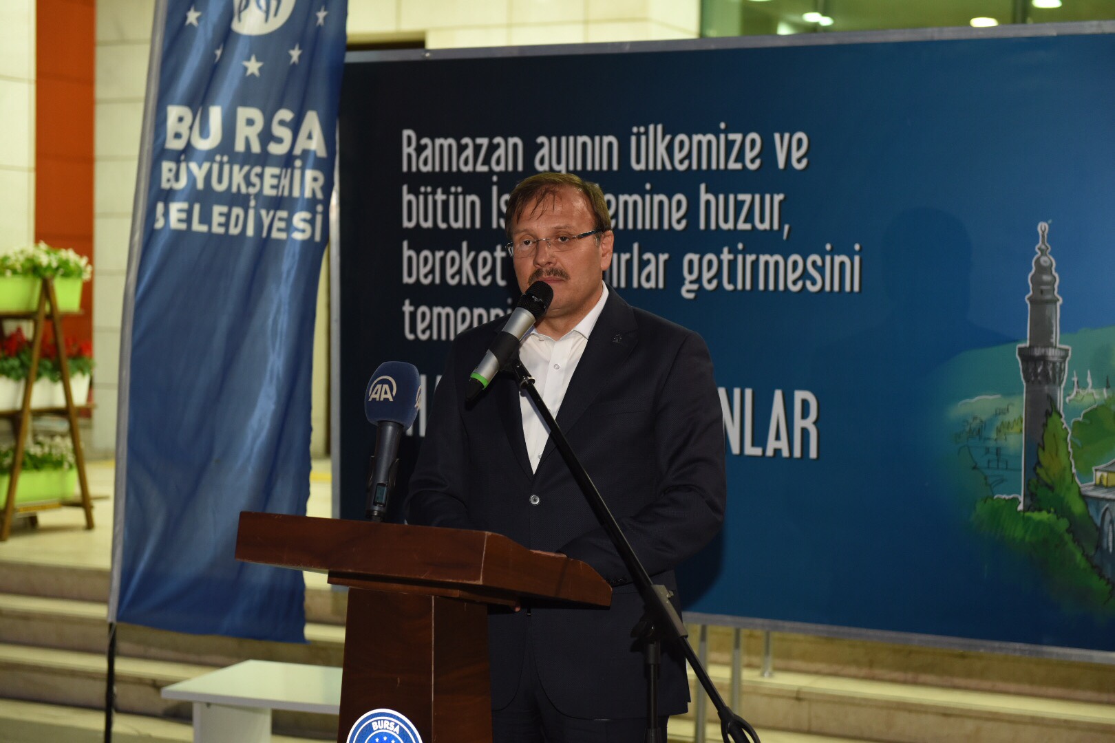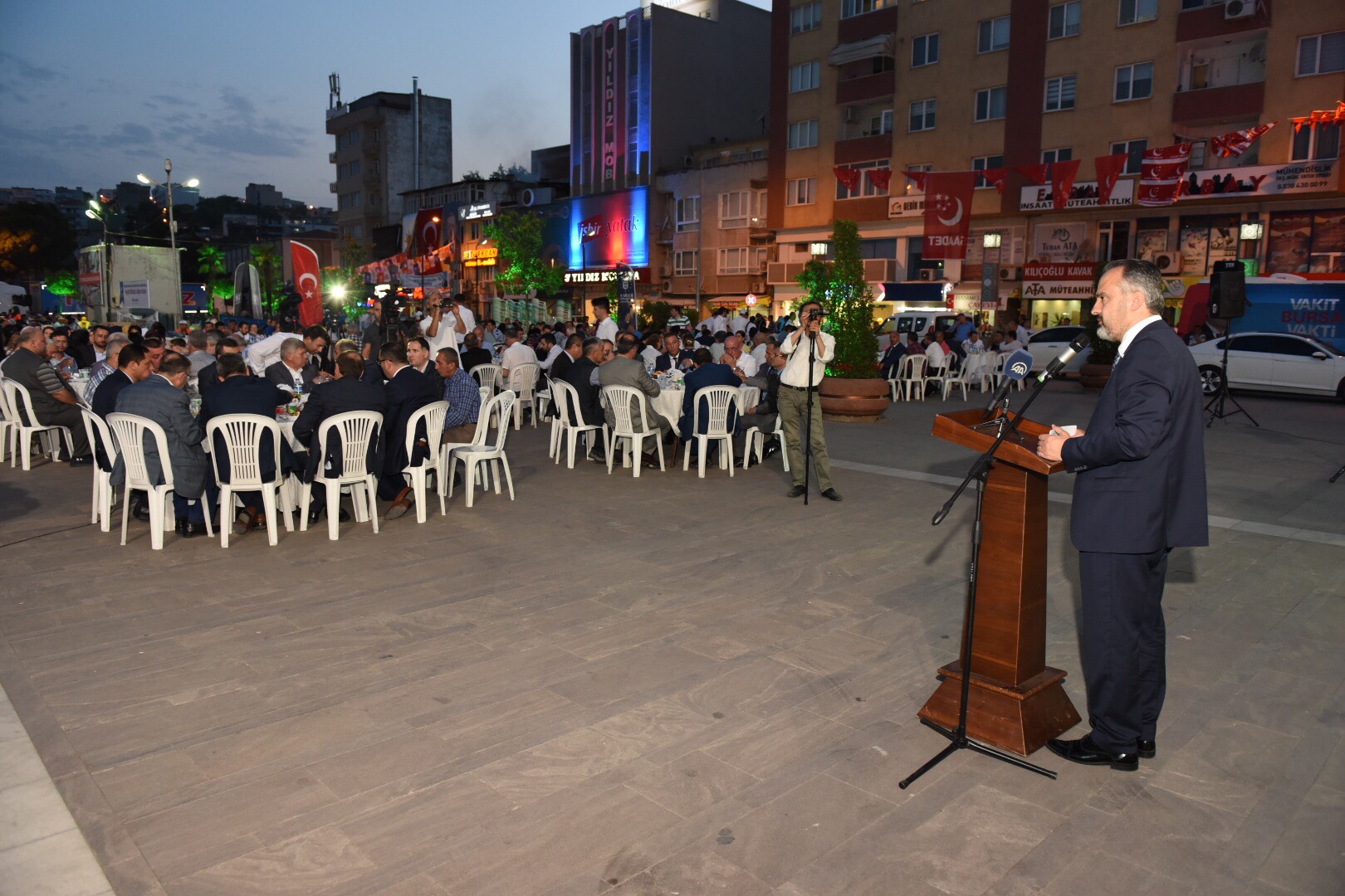 Başbakan Yardımcısı Hakan Çavuşoğlu ise yaptığı konuşmada, Büyükşehir’in ilçe belediyesiyle birlikte düzenlediği program nedeniyle Mustafakemalpaşalılarla bir arada olmaktan duyduğu memnuniyeti dile getirdi. Bursa’da yapılan iftar organizasyonlarıyla her akşam farklı bir ilçede oruç açtıklarını, vatandaşlarla buluştuklarını kaydeden Başbakan Yardımcısı Çavuşoğlu, Cumhurbaşkanı Recep Tayyip Erdoğan liderliğinde Türkiye’ye hizmet etmeye devam ettiklerini vurguladı. Konuşmasında Bursa’nın hayali olan hizmetlerin son 16 yılda gerçekleştirildiğine, kentin sürekli artan bir ivme ile değişip, dönüşüp geliştiğine değinen Başbakan Yardımcısı Çavuşoğlu, “Bizler bu milletin bağrından çıkmış, onunla aynı hassasiyeti taşıyan kadrolarız. Yola çıkarken, ‘Milletimizin hizmetkarı olacağız, vatandaşımıza efendilik taslamayacağız, insanı yaşat ki devlet yaşasın, 3Y ile mücadele edeceğiz’ dedik. Elhamdülillah, bunda da başarılı olduk. Görevi devraldığımızdan itibaren taş üstüne taş koymaya, eser üstüne eser inşa etmeye devam ettik. Türkiye son 16 yılda değişti, dönüştü, gelişti ve kalkındı. 16 yıl önce ‘Yapılamaz’ denilen ne varsa yapıldı” diye konuştu.