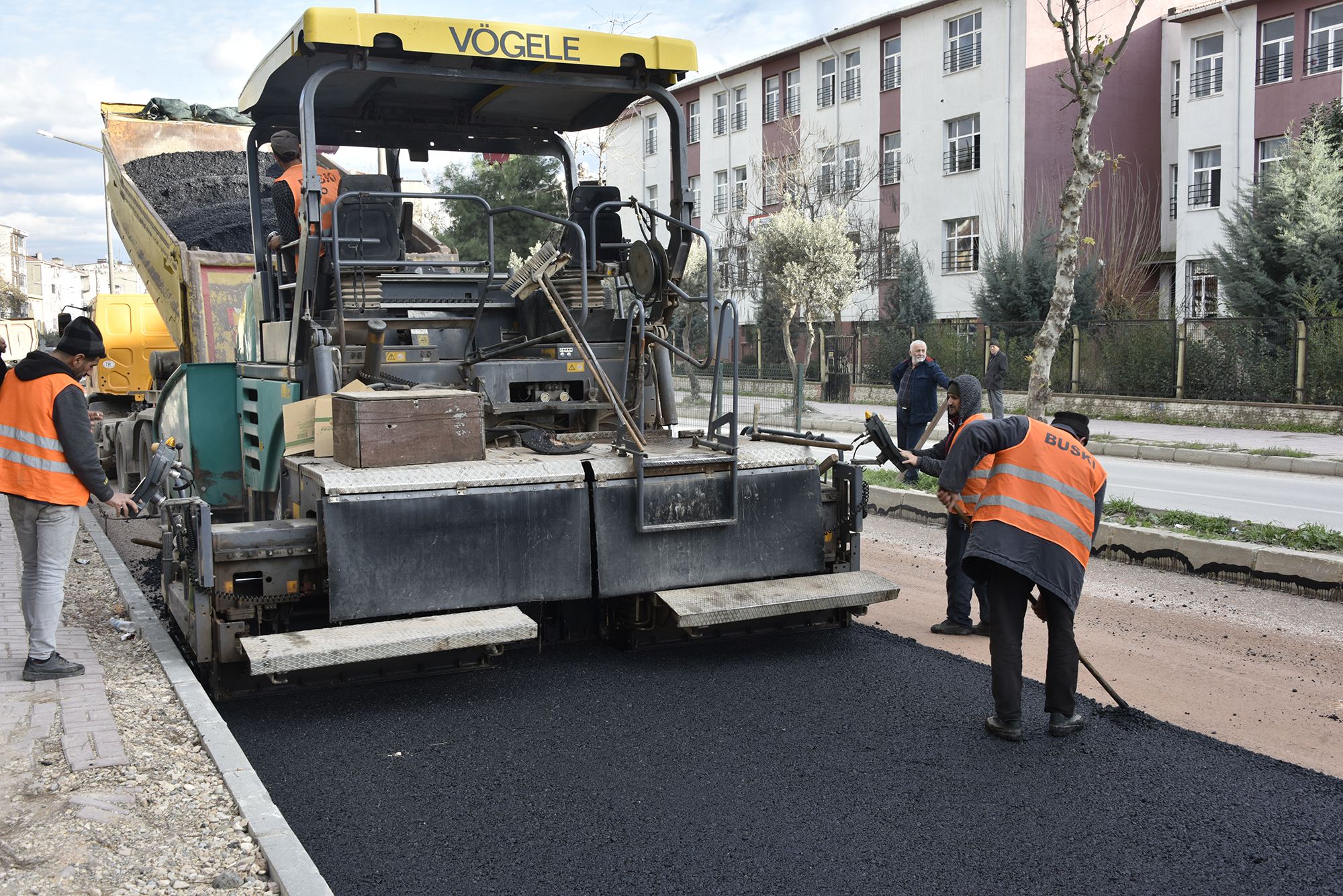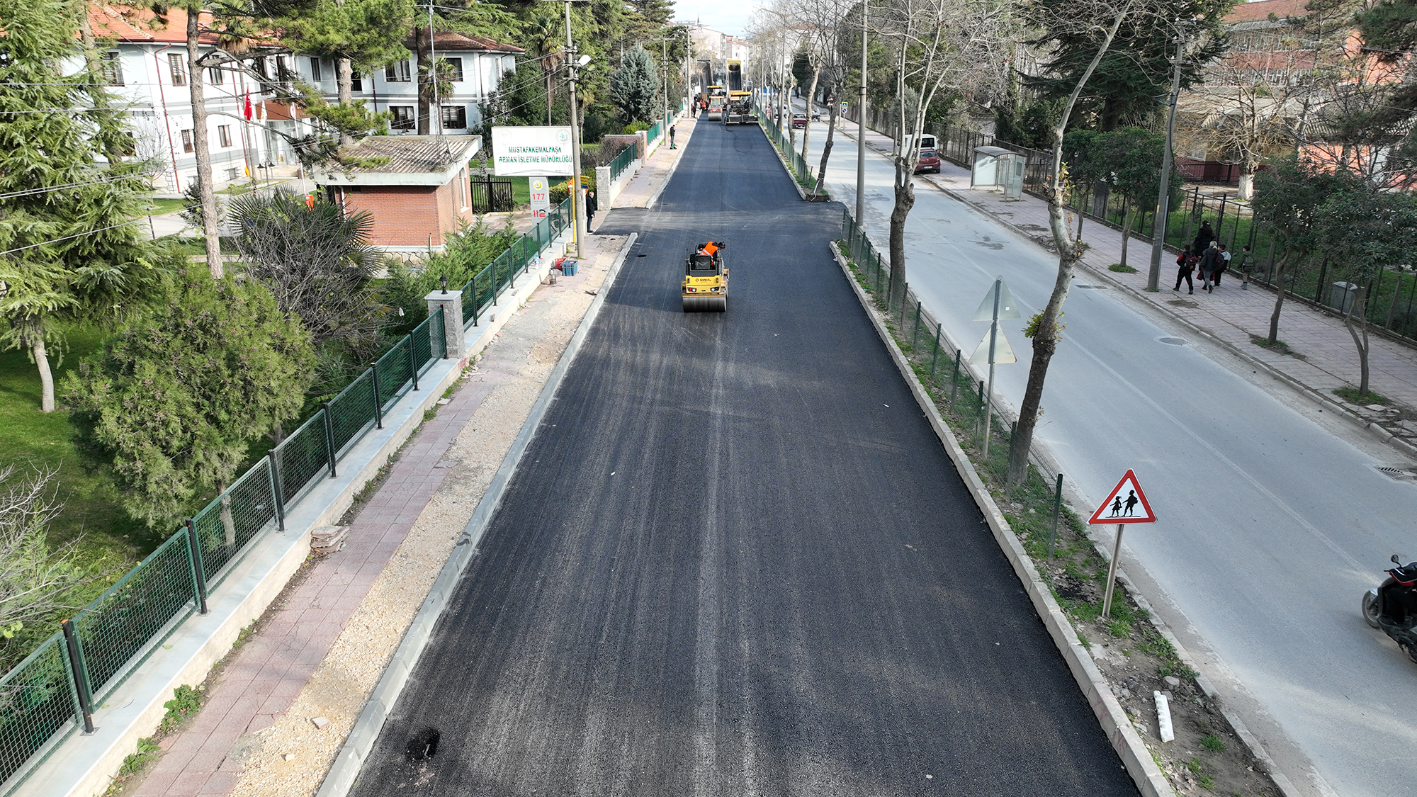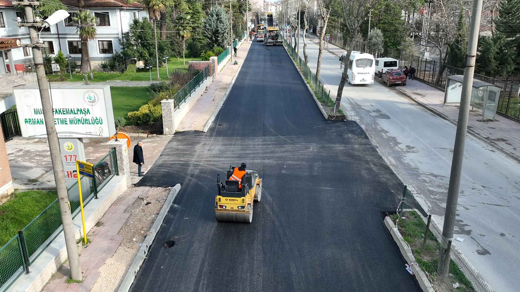 BURSA - Bursa Büyükşehir Belediyesi, İnegöl, Karacabey ve Mustafakemalpaşa ilçelerinde altyapı sil baştan yenileyen çalışmalar kapsamında Mustafakemalpaşa’da altyapının tamamlandığı bölgelerde asfaltlama çalışmalarına hız verdi. Çalışma kapsamında Mustafakemalpaşa’nın Fevzipaşa Mahallesi’nde kanalizasyon ve yağmur suyu hattı çalışmasını bitiren BUSKİ ekipleri, toplam 1.300 tonluk asfalt kaplama ile yaklaşık 800 metre uzunluğundaki Fevzipaşa Caddesi’nin tamamını asfaltladı.
