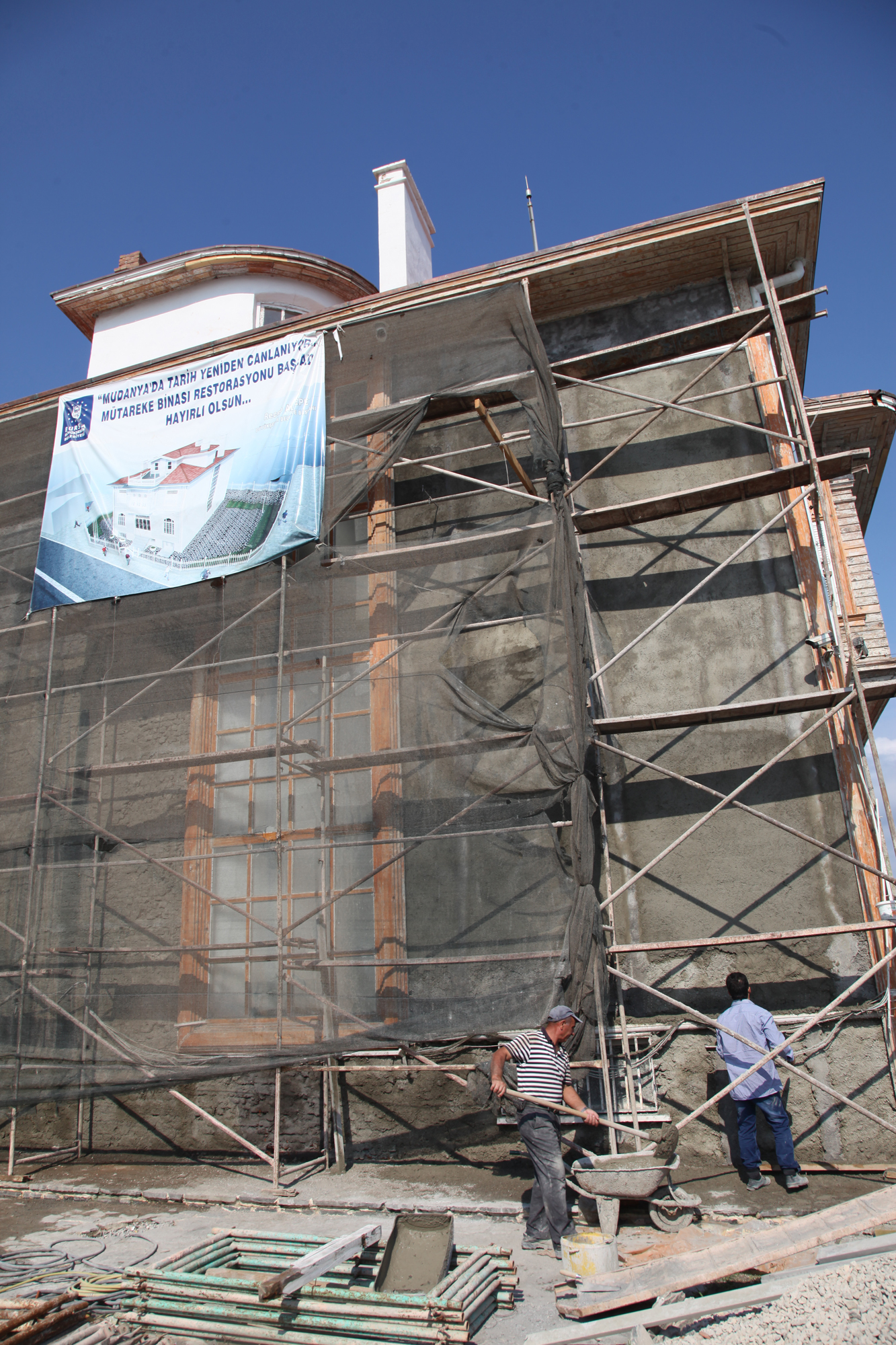 - BURSA BÜYÜKŞEHİR BELEDİYESİ’NİN TARİHİ VE KÜLTÜREL MİRASI YAŞATMA PROJELERİNE YENİ BİR HALKA OLARAK EKLENEN MUDANYA MÜTAREKE EVİ’NDEKİ RESTORASYON ÇALIŞMALARI HIZLA SÜRÜYOR.