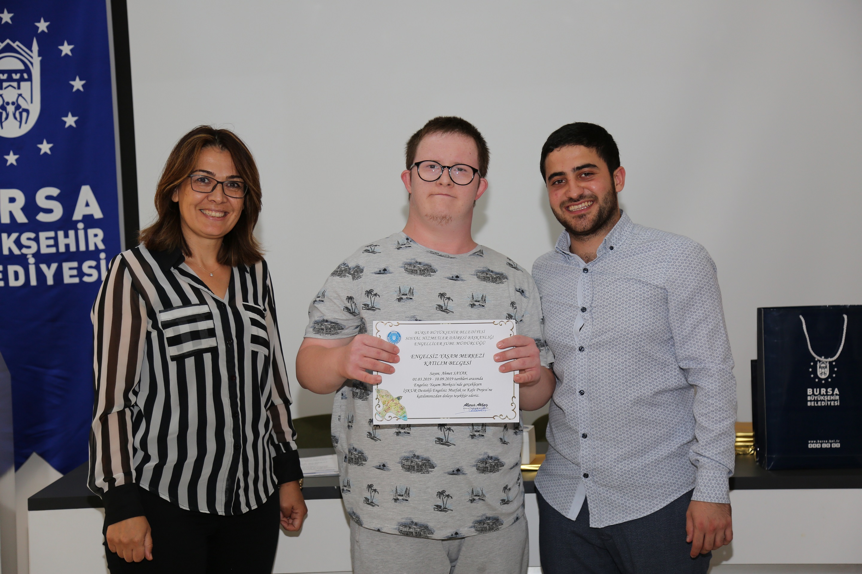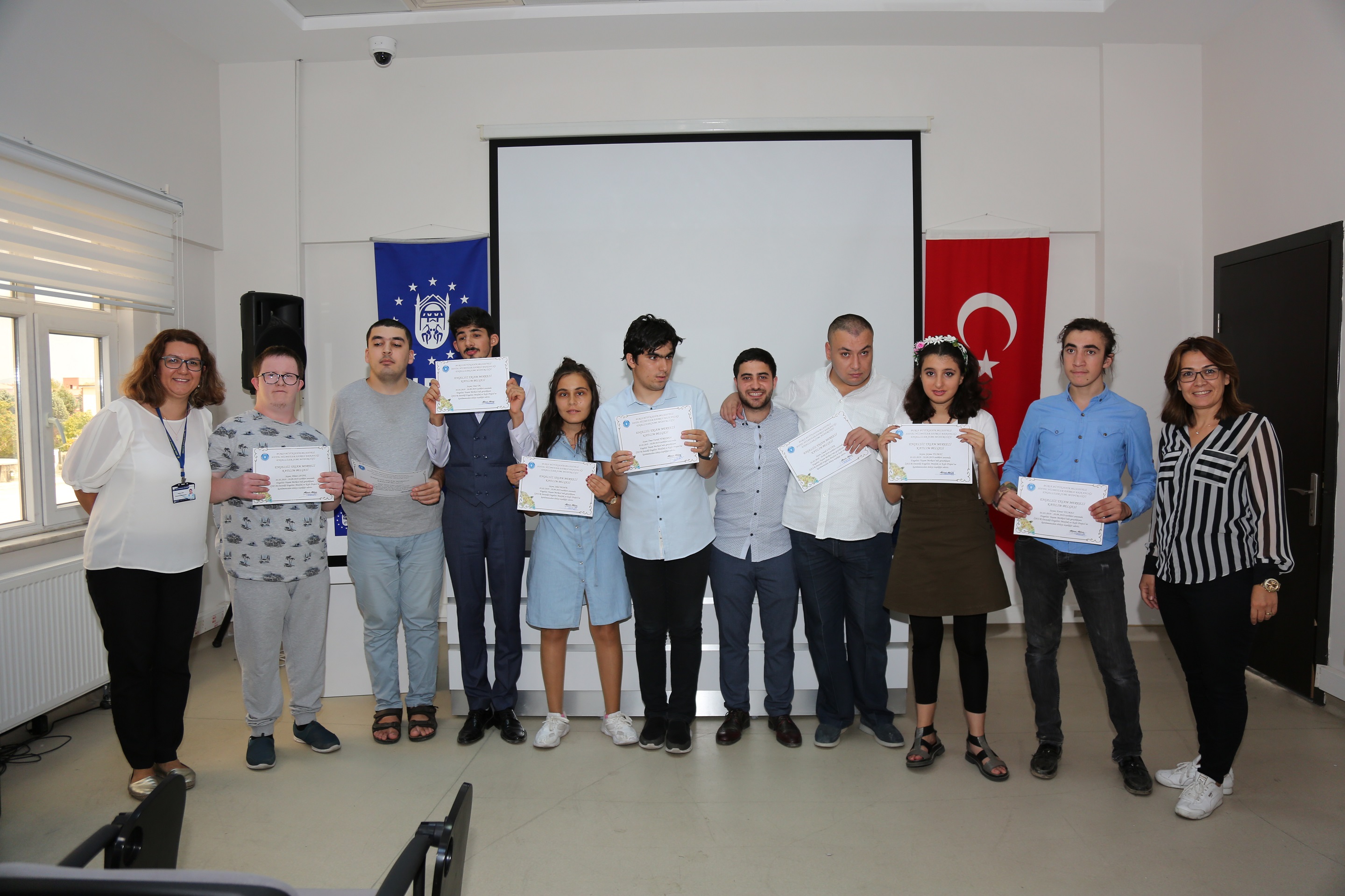 Engelsiz Yaşam Merkezi’nde sertifika töreni için bir araya gelen öğrenciler ve aileleri doyasıya eğlendiler. Engelliler Şube Müdürü Yasemin Şavşatlı tüm öğrencilere sertifikalarını ve hediyelerini takdim etti.