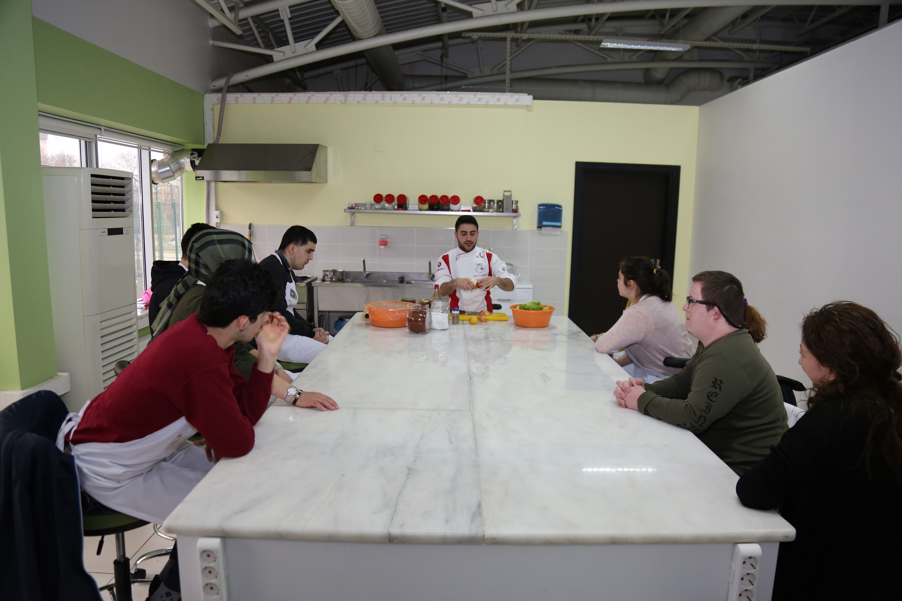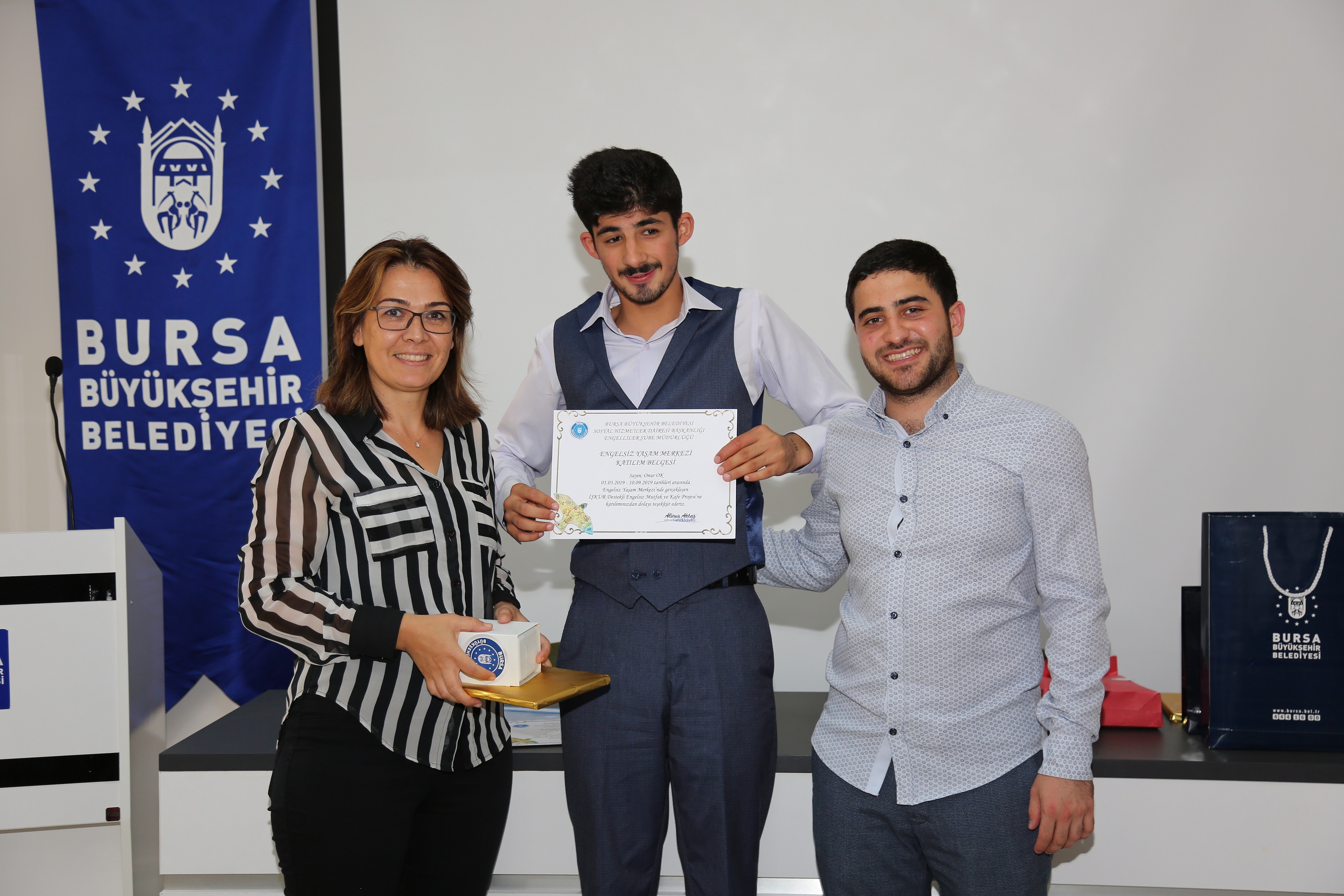 Bursa Büyükşehir Belediyesi Sosyal Hizmetler Daire Başkanlığı Engelliler Şube Müdürlüğü Engelsiz Yaşam Merkezi’nde engelli istihdamı kapsamında gerçekleştirilen İŞKUR Destekli Engelsiz Mutfak ve Kafe Projesi sona erdi. 6 ay boyunca mutfakta hünerlerini sergileyen 10 öğrenci katılım belgelerini almaya hak kazandı. Toplamda 640 saat süren eğitimler boyunca pastacılık ve aşçılık alanlarında teorik ve pratik eğitimler alan kursiyerler, birbirinden lezzetli tarifleri uygulayarak mutfaktaki engelleri de kaldırdı.