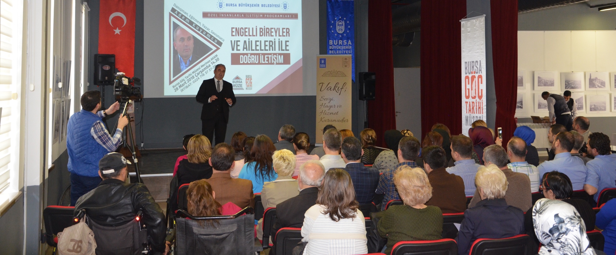 ‘Engelsiz müze ‘ sloganıyla çeşitli projeler geliştiren Büyükşehir Belediyesi Müzeler Şube Müdürlüğü, çalışmalarına bir yenisi daha ekledi. Belediye desteğiyle hazırlanan ‘Engelli Bireyler ve Aileleri İle Doğru İletişim Konferansı’, Bursa Göç Müzesi’nde yapıldı. Büyükşehir’e bağlı müzelerde görevli rehberlerin katıldığı ve Eğitmen Adem Kuyumcu tarafından verilen derste katılımcılar, işaret dili eğitimi alarak, Beril Alfabesi ve sesli rehber sistemi hakkında detay bilgilere sahip oldu.