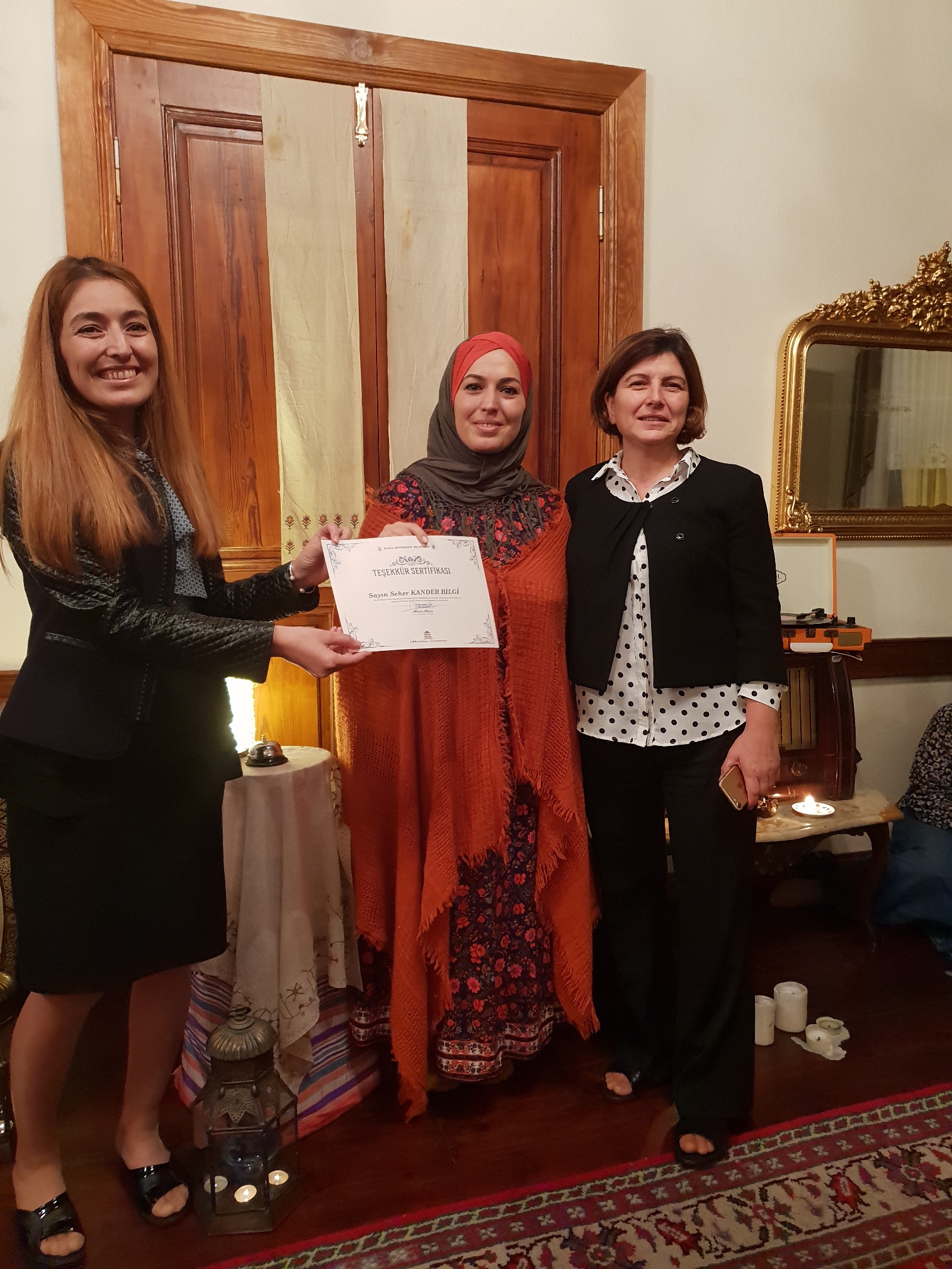 Müzenin, Bursa’nın zengin ve köklü kültürünü ziyaretçilerine göstermenin ötesinde bu kültürü uygulama ve yaşatma olanağı verdiğine dikkat çeken Sönmez, birçok farklı atölye çalışmasının yanı sıra çok sayıda etkinliğin Büyükşehir Belediyesi bünyesinde ziyaretçi kabul eden tüm müzelerde devam ettiğini söyledi. Bursa Büyükşehir Belediye Başkanı Alinur Aktaş’ın müzelere ayrı bir önem verdiğini ifade eden Sönmez, “Kentin müze kültürünü yaygınlaştırarak somut ve somut olmayan kültürel mirasın gelecek nesillere aktarılmasını hedefliyoruz” diye konuştu. Katılımcılarını Anka kuşunun kanatlarında Kaf Dağının ardında mistik bir yolculuğa çıkaran etkinlik sonrası, Başkanvekili Sönmez ve Müzeler Şube Müdürü Çevik, geceyi masalları ile renklendiren Seher Kander Bilgi’ye teşekkür belgesi verdi.