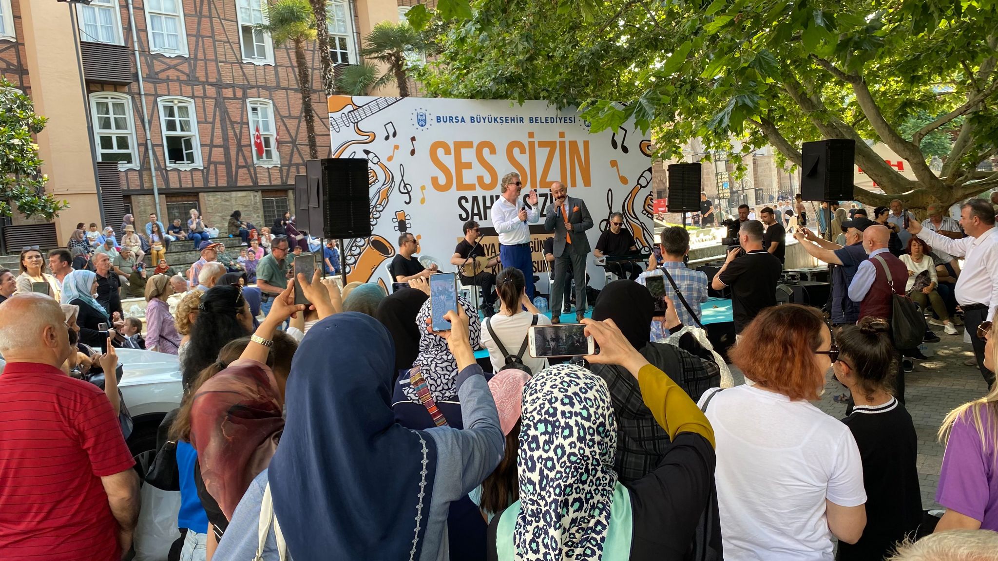 Tarihi Belediye Binası yanındaki etkinlik alanını ziyaret eden Bursa Büyükşehir Belediyesi Başkanvekili Fethi Yıldız, “Bursa Büyükşehir Belediyesi olarak Dünya Müzik Günü dolayısıyla ‘Ses Sizin, Sahne Sizin’ programı düzenledik. Dinleyerek veya şarkılara eşlik ederek vatandaşlarımızın programa büyük ilgi gösterdiğini görüyorum. Özgüvenli vatandaşlarımızın söyledikleri şarkıları, türküleri dinlemek çok keyifli. Ben bu organizasyonda emeği geçen herkese çok teşekkür ediyorum” diye konuştu.