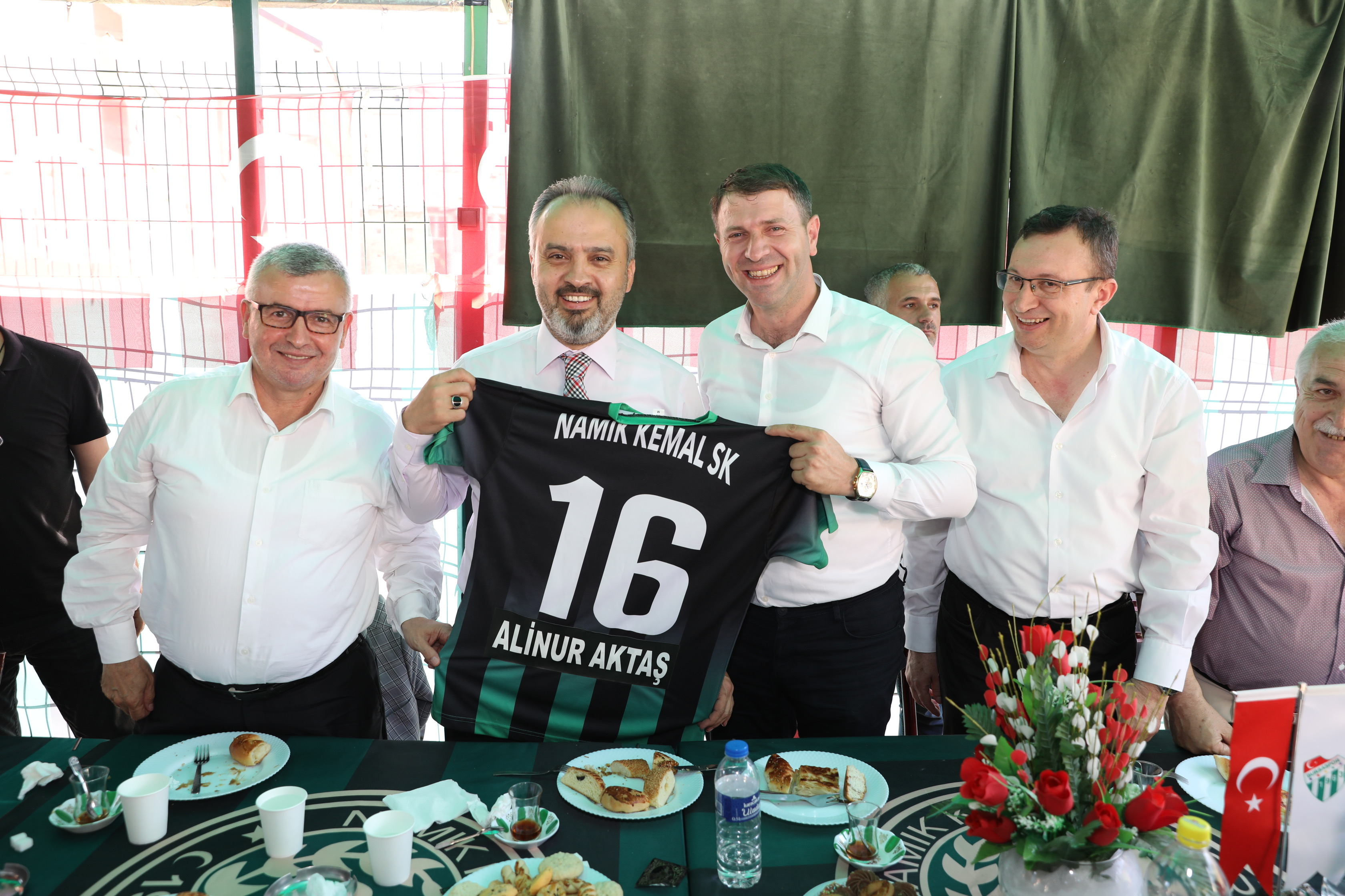 Ziyaretin sonunda Başkan Aktaş’a, Namık Kemal Spor Kulübü Başkanı Sedat Yedikardeş tarafından plaket ve üzerinde isminin yazdığı takım forması hediye edildi.
