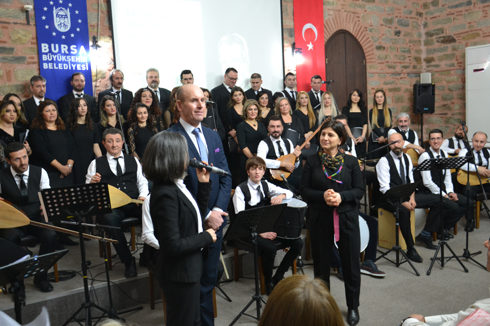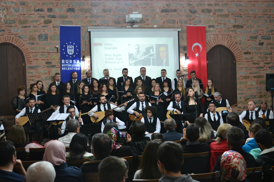 BURSA - Büyükşehir Belediyesi Orkestra Şube Müdürlüğü Türk Halk Müziği Bölümü öğrenci korosu, İncirli Kültür Merkezi’nde Nida Tüfekçi derlemeleri ile sahne aldı.