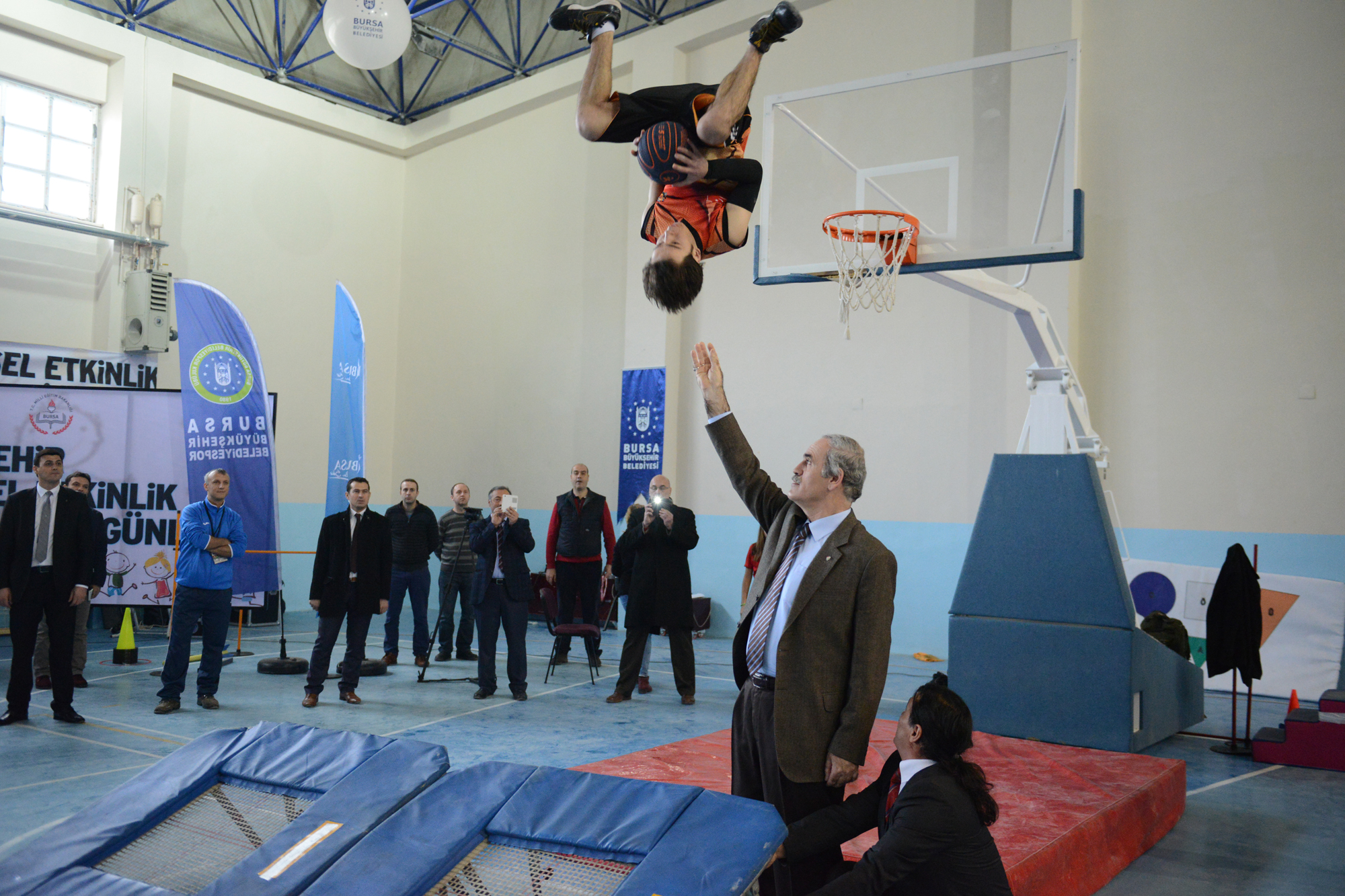 Etkinliğin açılışında konuşan İl Milli Eğitim Müdür Vekili Mustafa Bilici ise, eğitime sağladığı katkılar nedeniyle Başkan Altepe’ye teşekkür etti. Bursa’nın Başkan Altepe sayesinde sporda çağ atladığını belirten Bilici, okullar başta olmak üzere mahallelere yürüme mesafesinde spor salonları yapıldığını hatırlattı. Büyükşehir Belediyesi’nin sadece spor salonu yapmakla kalmadığını, yapılan salonları üretilen etkinliklerle işlevsel, çekici hale getirdiğini ifade eden Bilici, “Bu organizasyon çerçevesinde de sadece etkinlik yapılmakla kalmıyor, öğrencilere malzeme yardımı da sağlanıyor. Ben tüm bu desteklerinden, eğitime gösterdiği hassasiyetten dolayı Başkan Altepe’ye şükranlarımı arz ediyorum” şeklinde konuştu.