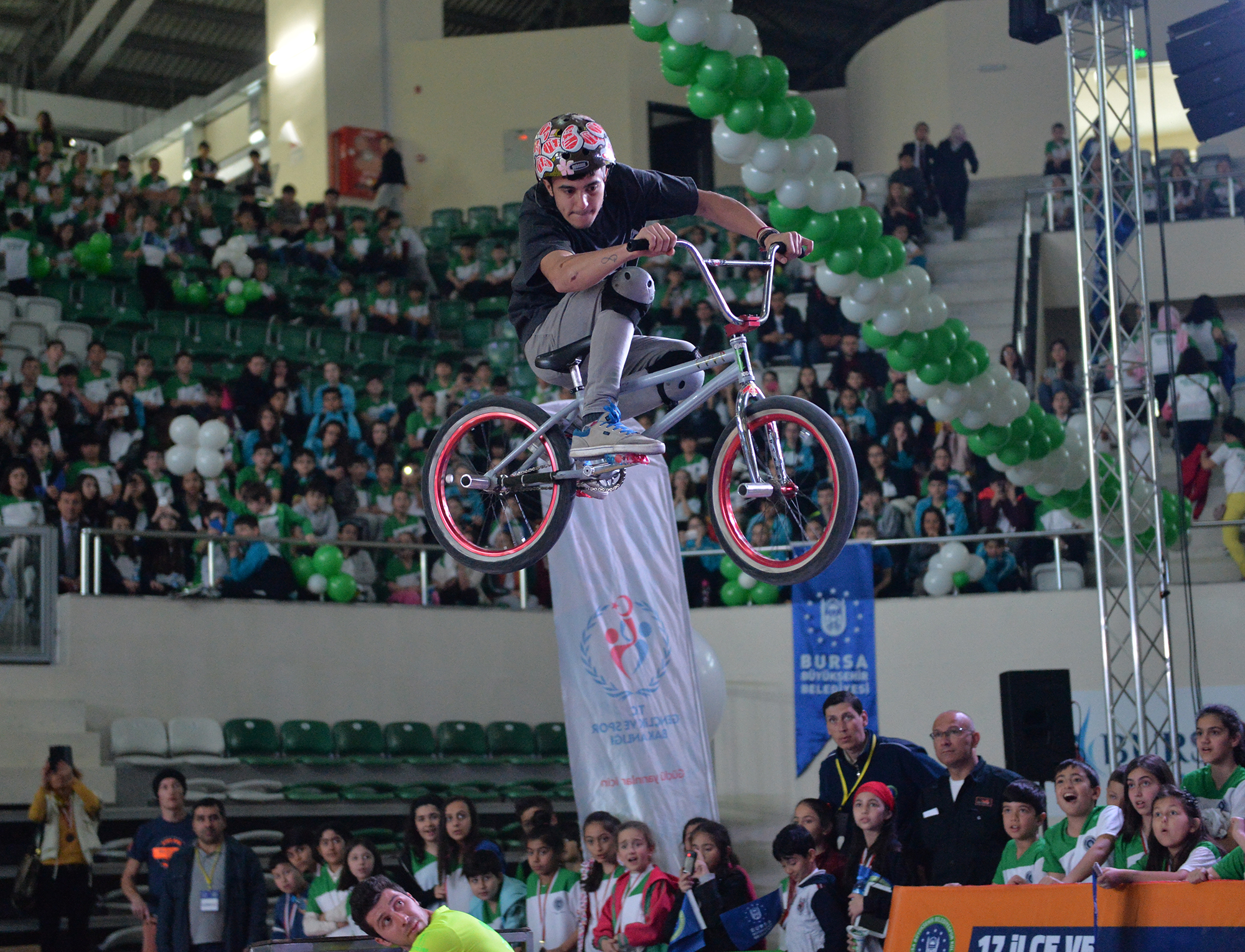 Programda öğrenciler adına konuşan Koç Ortaokulu öğrencisi Ayça Neğiş, eğitime, spora ve geleceğe yaptığı katkılar nedeniyle Başkan Altepe’ye teşekkür etti. Nilüferli öğrencilerin Başkan Altepe ve protokol üyelerine çiçek verdiği program, şampiyonluk havasında coşkulu görüntülerin yaşanmasına sahne oldu. Şenlikler çerçevesinde Büyükşehir Belediyespor Jimnastik, Kay Kay ve Bisiklet Akrobasi ve Karizma gösteri grupları sergiledikleri birbirinden zor akrobasi hareketleriyle öğrencileri coşturdu. Şenlikler çerçevesinde ‘Yeşil Timsahlar’ ile ‘İpekböceği’ grupları arasında fizik ve zeka oyunları da yapıldı. Program, yarışmalara katılan öğrencilere madalyalarının verilmesiyle sona erdi.