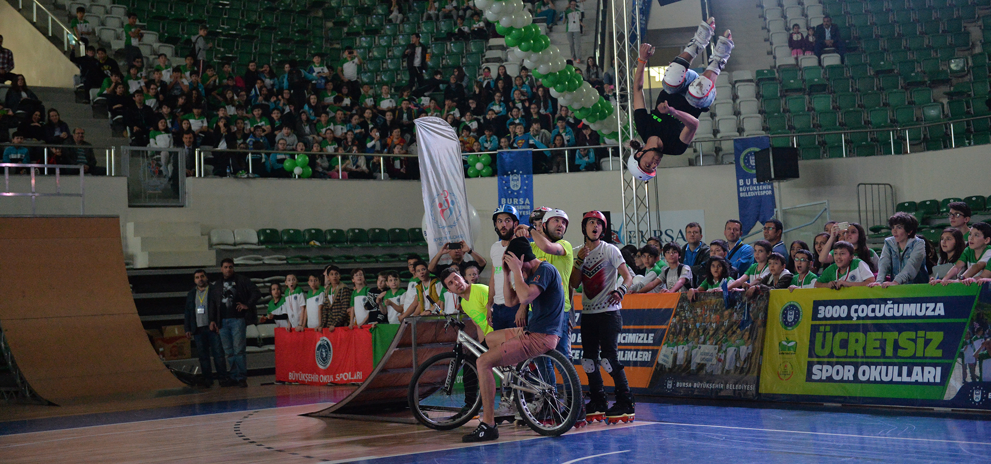 - ŞENLİKLER ÇERÇEVESİNDE BÜYÜKŞEHİR BELEDİYESPOR JİMNASTİK, KAY KAY VE BİSİKLET AKROBASİ VE KARİZMA GÖSTERİ GRUPLARI SERGİLEDİKLERİ BİRBİRİNDEN ZOR HAREKETLERLE ÖĞRENCİLERİ COŞTURDU.