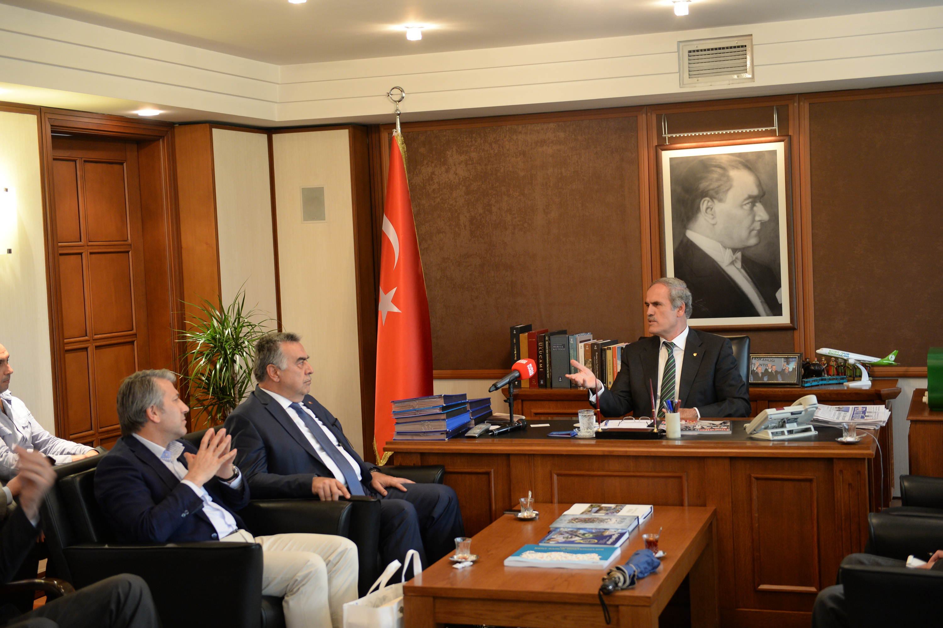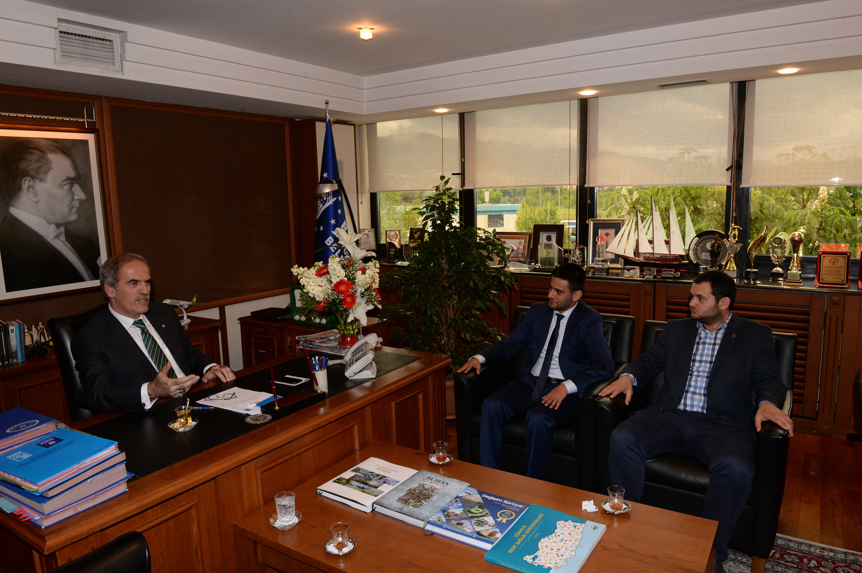 Başkan Altepe’nin Bursa tarihinde bir ilk olarak ikinci defa Büyükşehir Belediye Başkanlığı’na seçilmesiyle başlayan tebrik ziyaretleri sürüyor. Başkan Altepe’yi bu kez de Bingöl Belediye Başkanı Yücel Barakazi, Işıklar Hava Askeri Lisesi Komutanı Hv.Plt.Kur.Albay İshak Dayıoğlu, İl Emniyet Müdürü Sabri Durmuşlar, AK Parti Bursa milletvekilleri Mustafa Öztürk ve Hüseyin Şahin, Bursa Haber Gazetesi Yönetim Kurulu Başkanı Cüneyt Dizdar, AK Parti Nilüfer İlçe Gençlik Kolları Başkanı Gökhan Dinçer ve AK Parti İzmir İl Başkanı Ömer Cihat Akay ziyaret etti.