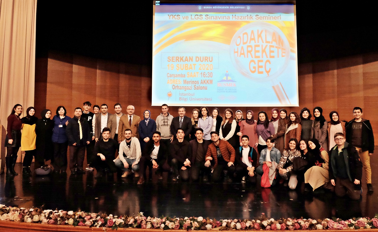 BURSA - İstanbul Bilgi Üniversitesi’nden Bursa Bölge Sorumlusu, Eğitmen ve Yazar Serkan Duru, BUSMEK YKS ve LGS kursu öğrencilerine, “Odaklan, Harekete Geç!” konulu bir seminer verdi.