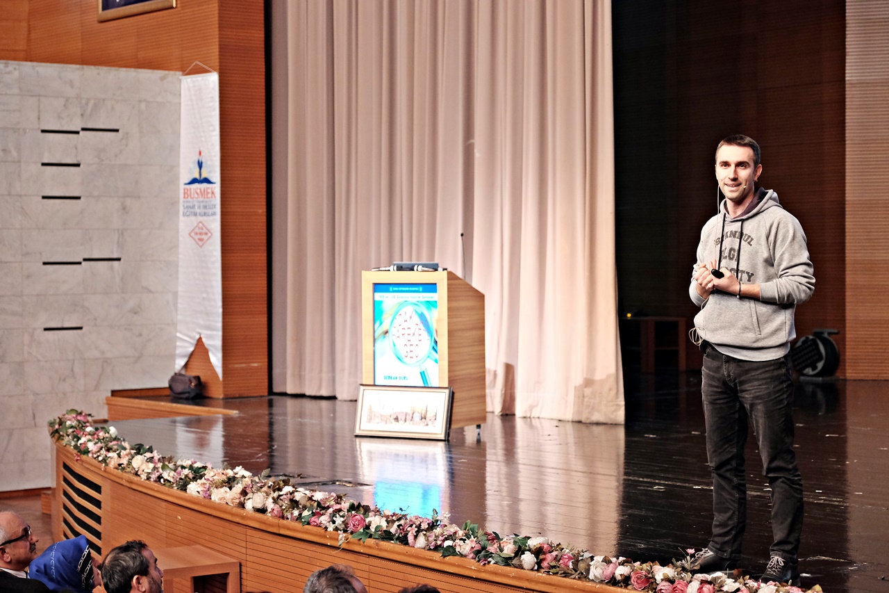 Bursa Büyükşehir Belediyesi Sanat ve Meslek Eğitim Kursları (BUSMEK) organizasyonuyla, Merinos AKKM Orhangazi Salonu’nda gerçekleştirilen sunumda geleceğin meslekleri, inovasyon ve girişimciliğin önemi, farklı meslek gruplarından başarılı insanların hayatları ve başarı yolculukları, Z kuşağının motivasyonu gibi konulardan bahsedildi. Ayrıca başarıya giden yolda hayal etmenin önemi ve istemenin yanı sıra çok çalışmak ve emek sarf etmek gerektiği vurgulandı. İnteraktif geçen keyifli programda, odaklanma ve sınav süreci, tercih yaparken dikkat edilecek konular, motivasyon yönetimi, üniversite mezuniyetinin kariyere katkısı konularına da değinildi.