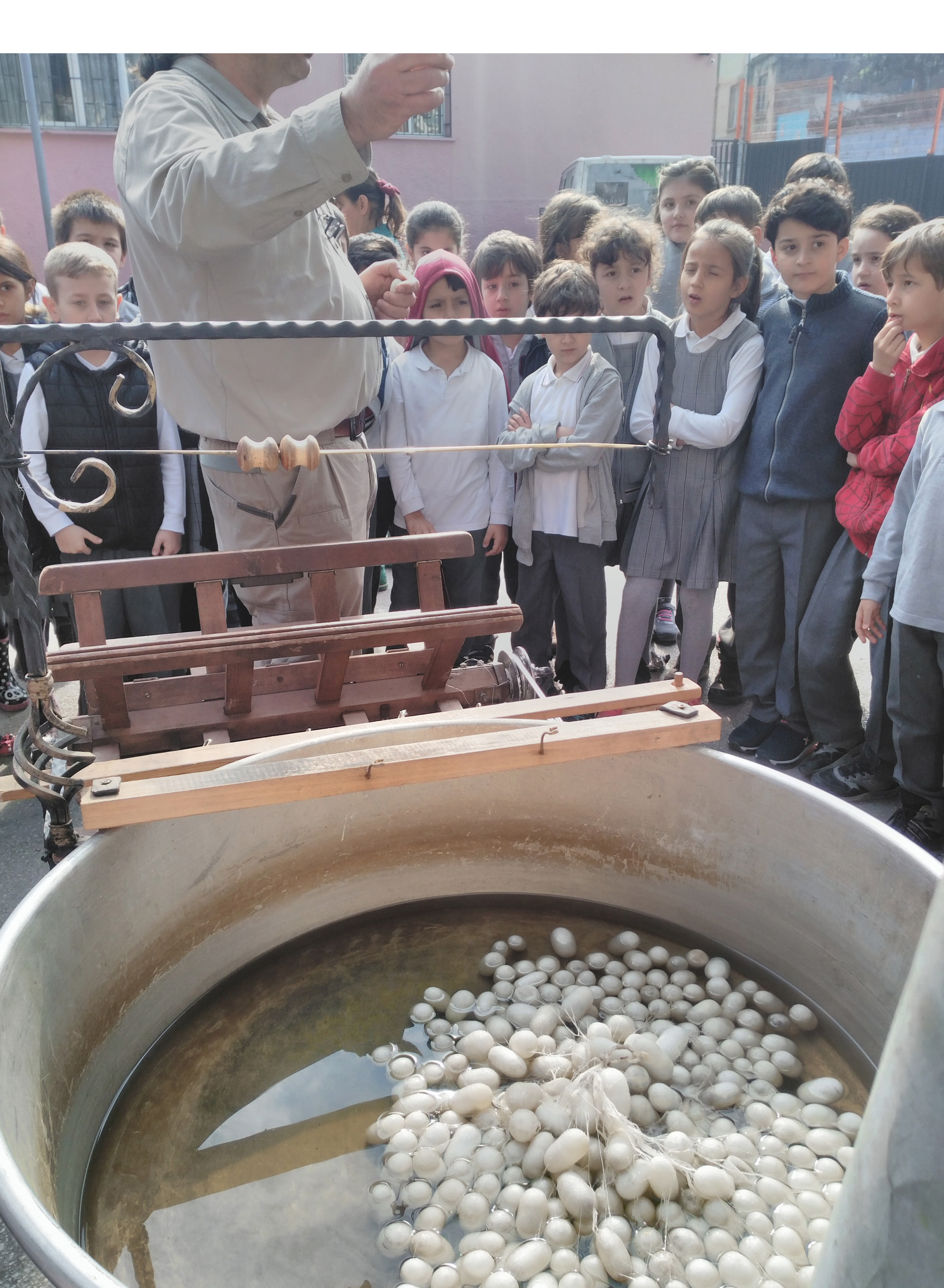 Umurbey İpek Üretim ve Tasarım Merkezi ve Muradiye İpek Fabrikası ile Orhaneli, Keles, Harmancık, Büyükorhan ve İnegöl ilçelerinde açılan ipek triko, ipek kumaş ve ipek halı dokuma atölyelerini kente kazandıran Büyükşehir Belediyesi, Bursa İpeği’nin kent belleğindeki yerini korumak amacıyla öğrencilere ipeğin oluşum süreci hakkında bilgiler veriyor. Devam eden proje kapsamında Namazgah İhsan Dikmen İlkokulu’nu ziyaret eden uzmanlar, tepme mancınık ve devdah (geleneksel ipek büküm makinası) ile kozayı ipek ipliğe dönüştürürken aynı zamanda da ürüne haline getirilmesi için gerekli büküm işlemini yaptı. Tarihi İpek Yolu, Bursa’nın İpek Yolu’ndaki önemi, koza ticareti, Koza Han ve Bursa’daki ipek fabrikaları hakkında da bilgiler veren uzmanlar, öğrencilerin sorularını da cevapladı.