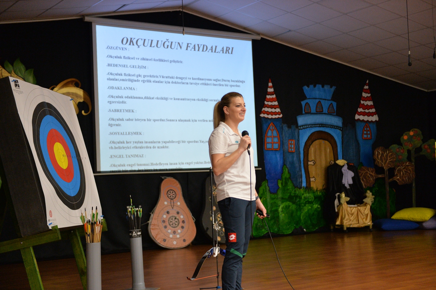 Okulun konferans salonunda yapılan etkinlikte Büyükşehir Belediyespor Kulübü Yönetim Kurulu Üyesi Ömer Cihat Bay, Antrenör Tülay Temel ve okçuluk sporcuları öğrencilere okçuluk sporunun önemli özelliklerini aktardı.