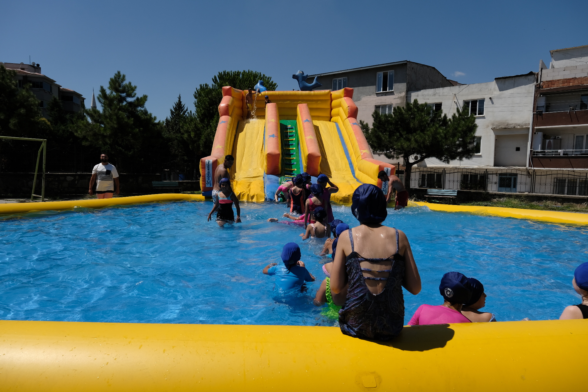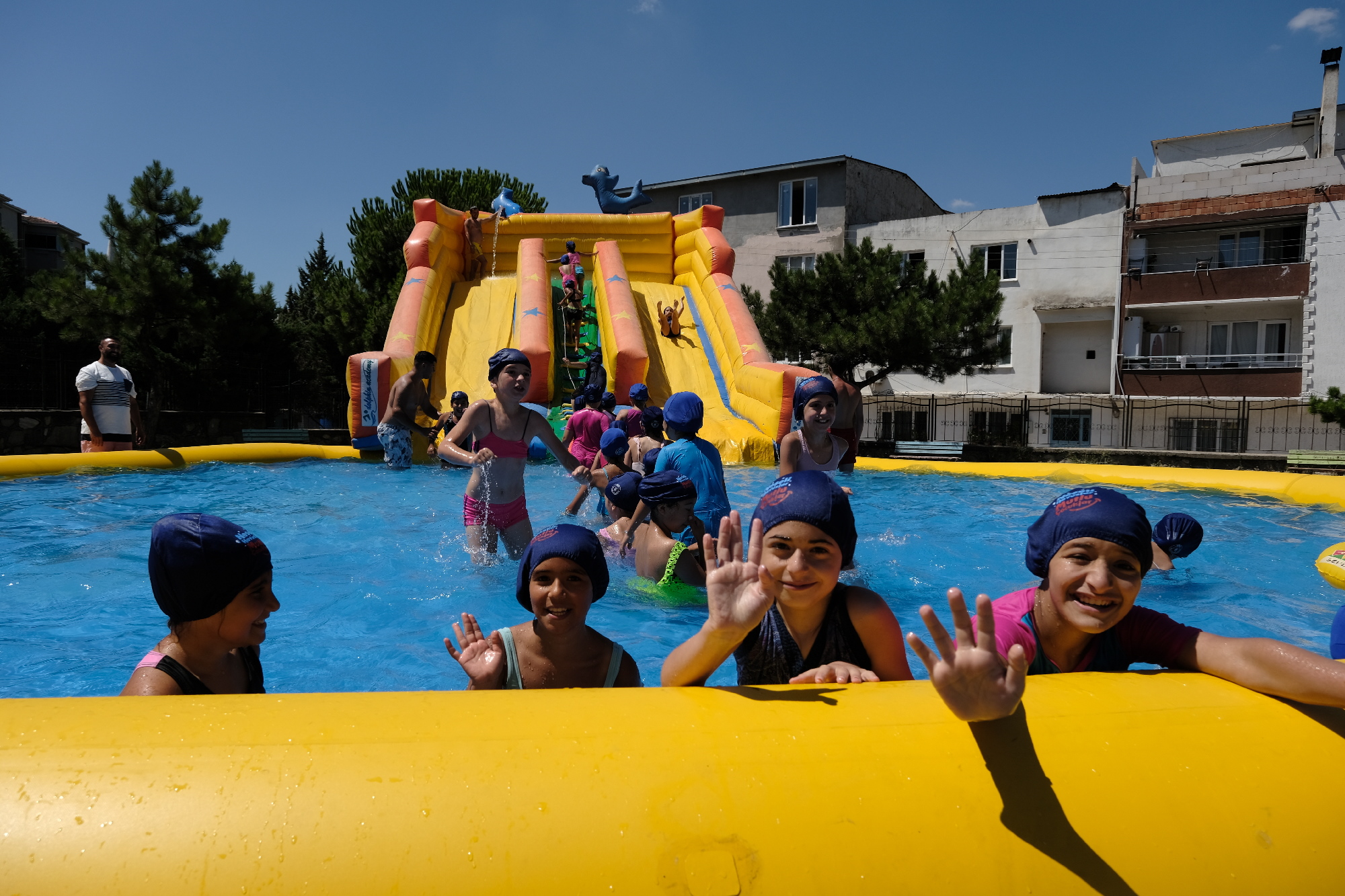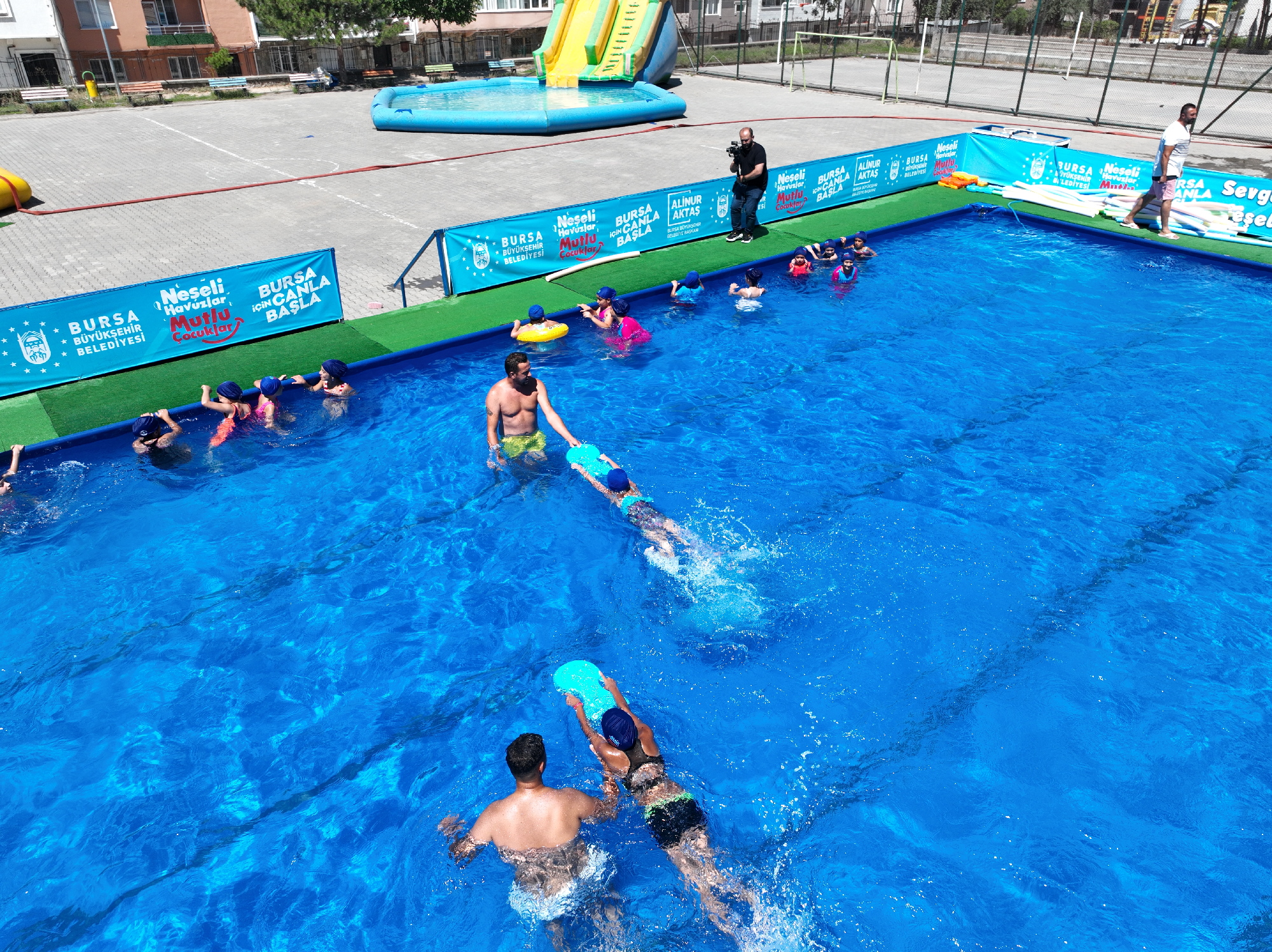 Proje kapsamında yaklaşık 5 bin çocuğun yüzme sporuyla buluşması hedeflenirken, Osmangazi ilçesindeki Şehit Jandarma Uzman Çavuş İlyas Genel İlkokulu bahçesi ise tam bir aquaparkı andırıyor. Yüzme eğitiminin yanında çocuklar, kaydıraklı havuzlarda gönüllerince eğleniyor. Eğitim dönemi boyunca zaman zaman isteksiz geldikleri okullarına bu kez büyük bir istek ve heyecanla koşan çocuklar, okul bahçesinde tatilin tadını çıkarıyor.