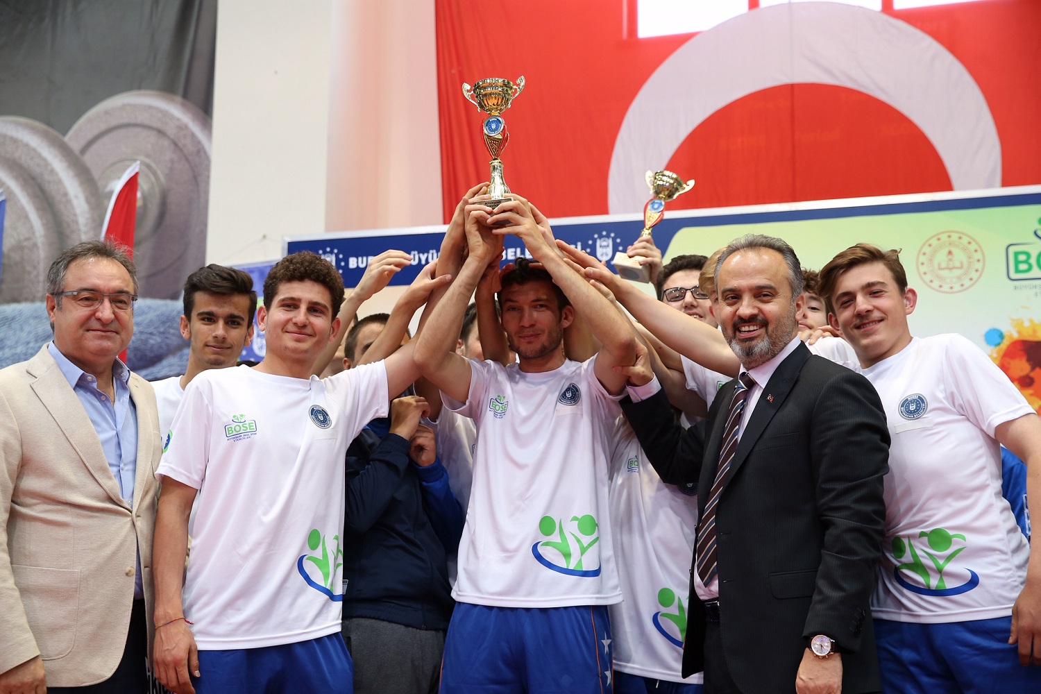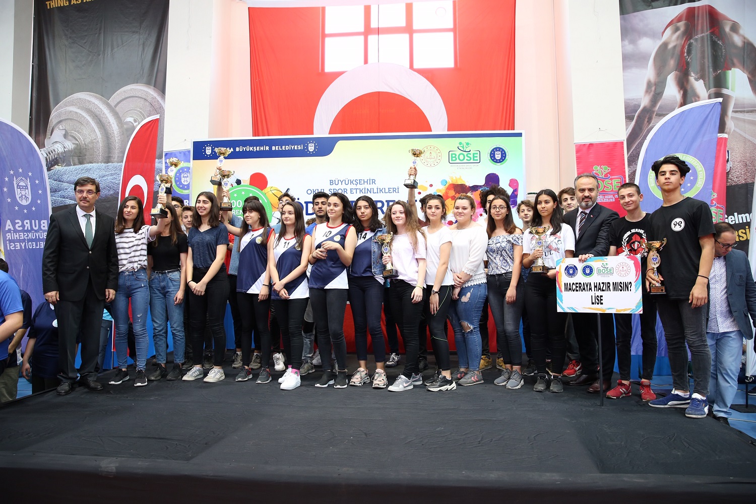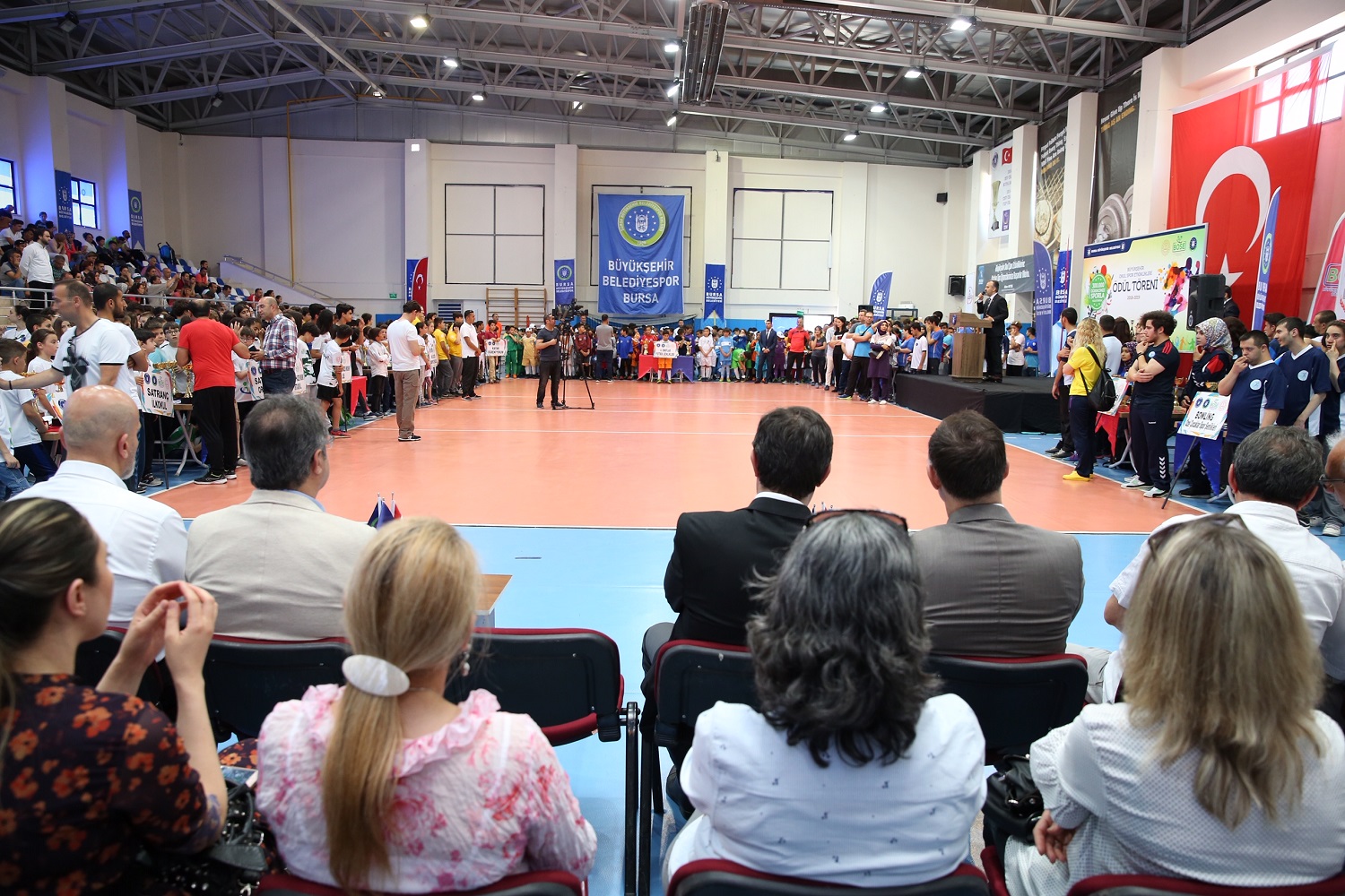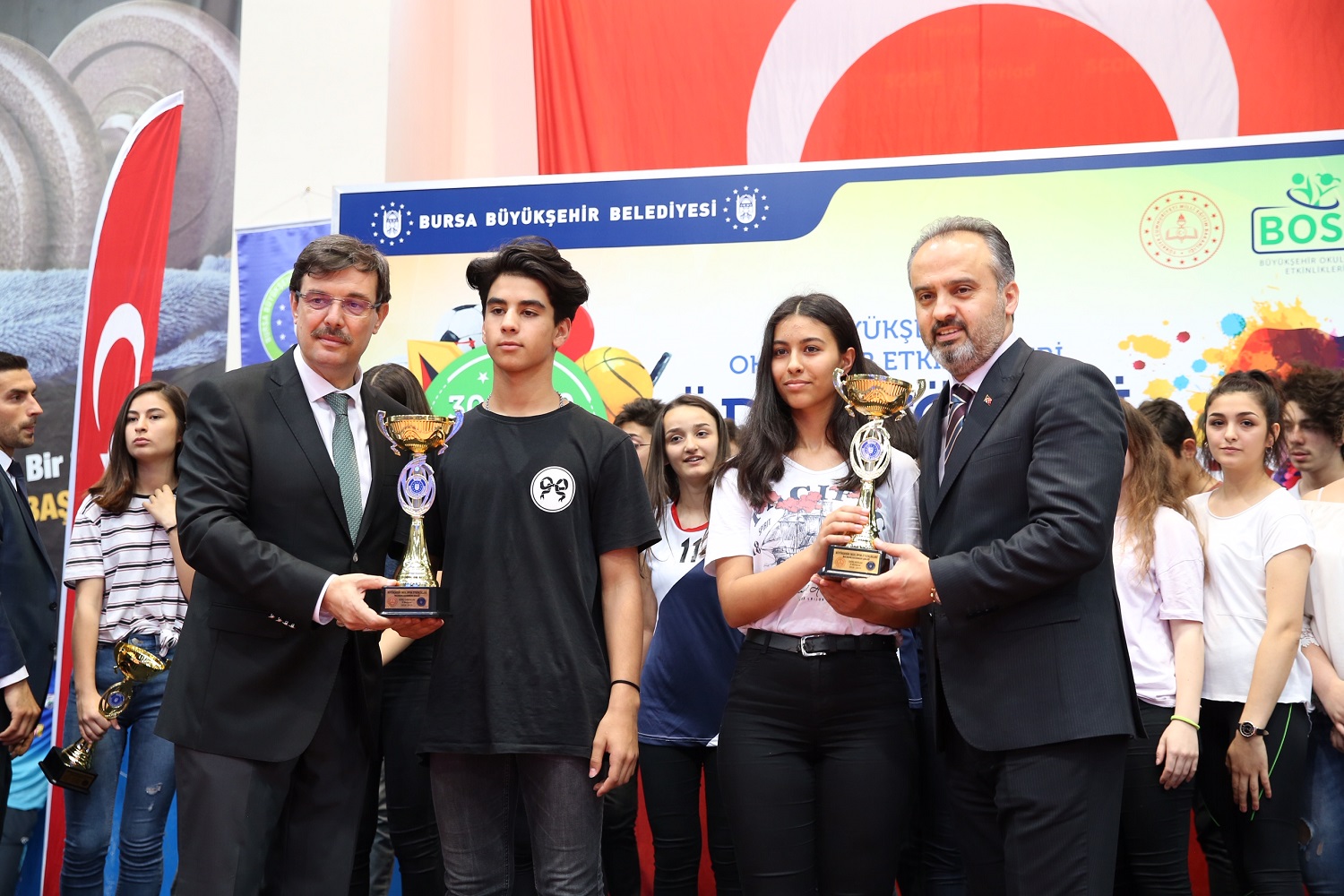 Sağlıklı şehir Bursa’da çocukları sporla buluşturan ‘Büyükşehir Okul Spor Etkinlikleri (BOSE)’ ödül ve kapanış töreni, coşkuyla gerçekleştirildi. Fethiye Spor Tesisleri’nde düzenlenen törene, sporcu öğrencilerin ödül heyecanı damgasını vurdu. Büyükşehir Belediye Başkanı Alinur Aktaş, İl Milli Eğitim Müdürü Sabahattin Dülger ve AK Parti Nilüfer İlçe Başkanı Ufuk Ay da bu heyecanlı günlerinde minikleri yalnız bırakmadı. Ödüllerin verildiği salonda branşlarına göre takım düzeni oluşturan öğrenciler, birincilik-ikincilik ve üçüncülük kupalarını Başkan Aktaş, İl Milli Eğitim Müdürü Dülger ve AK Parti Nilüfer İlçe Başkanı Ufuk Ay’ın elinden aldı.