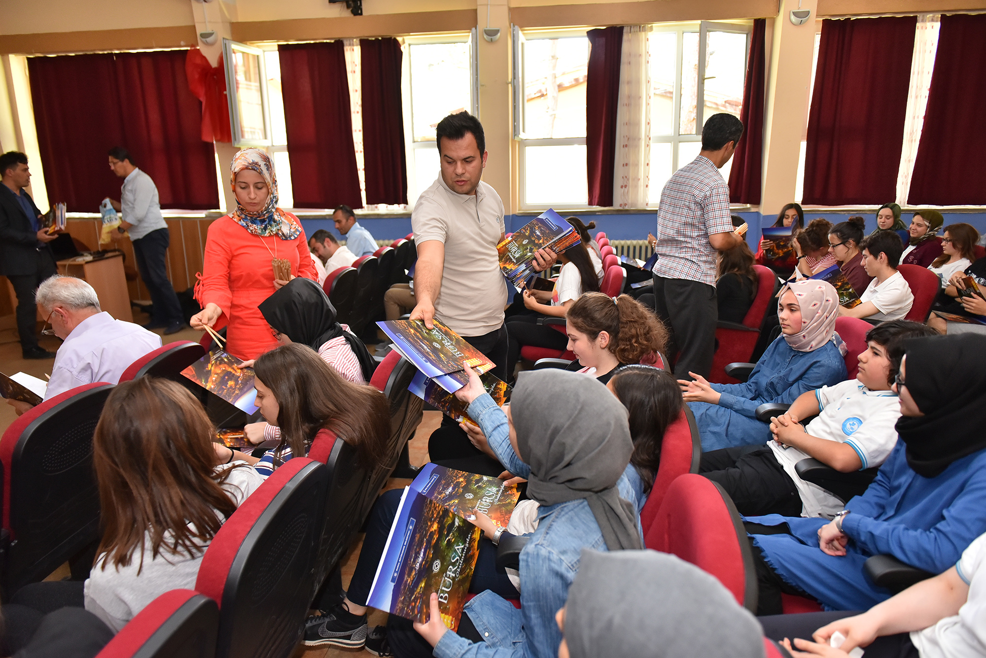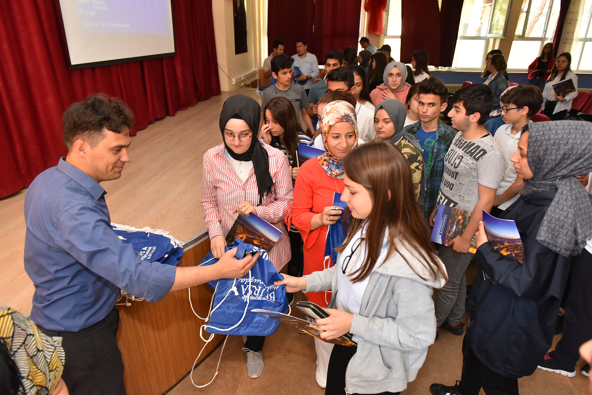 Sunum sonrasında öğrencilere Büyükşehir Belediyesi tarafından hazırlanan klasör, kalem, çanta gibi hediyeler verildi.